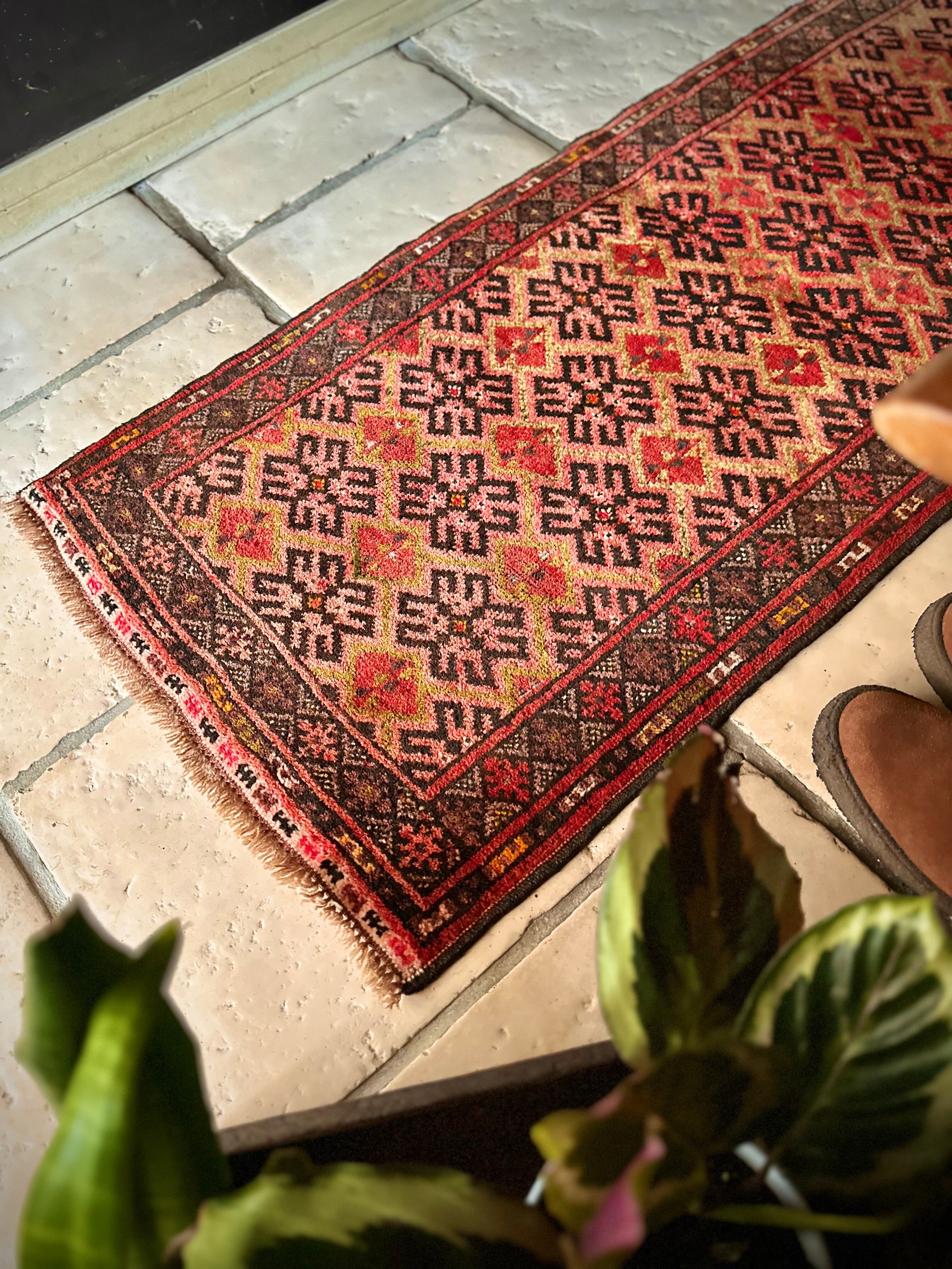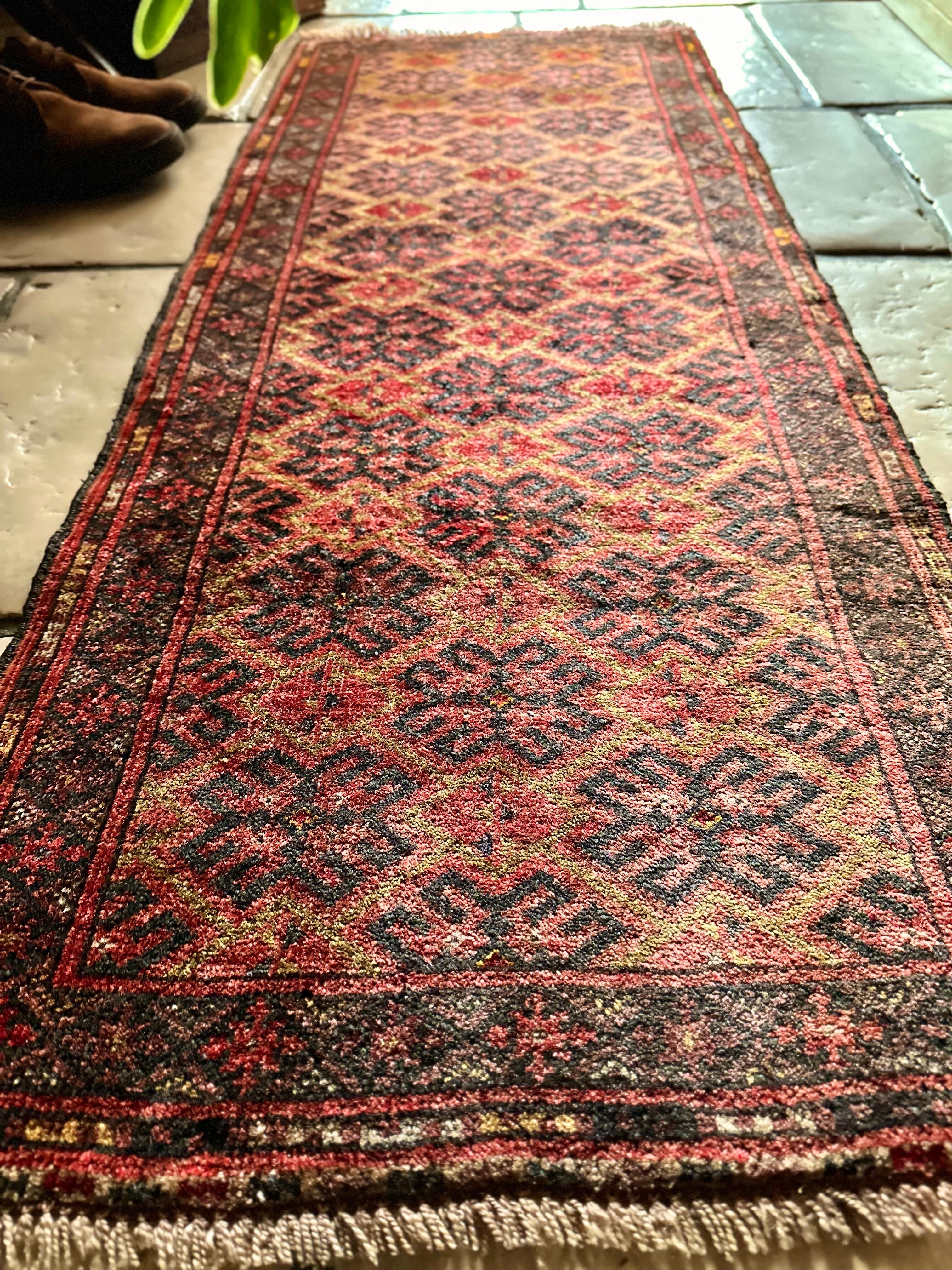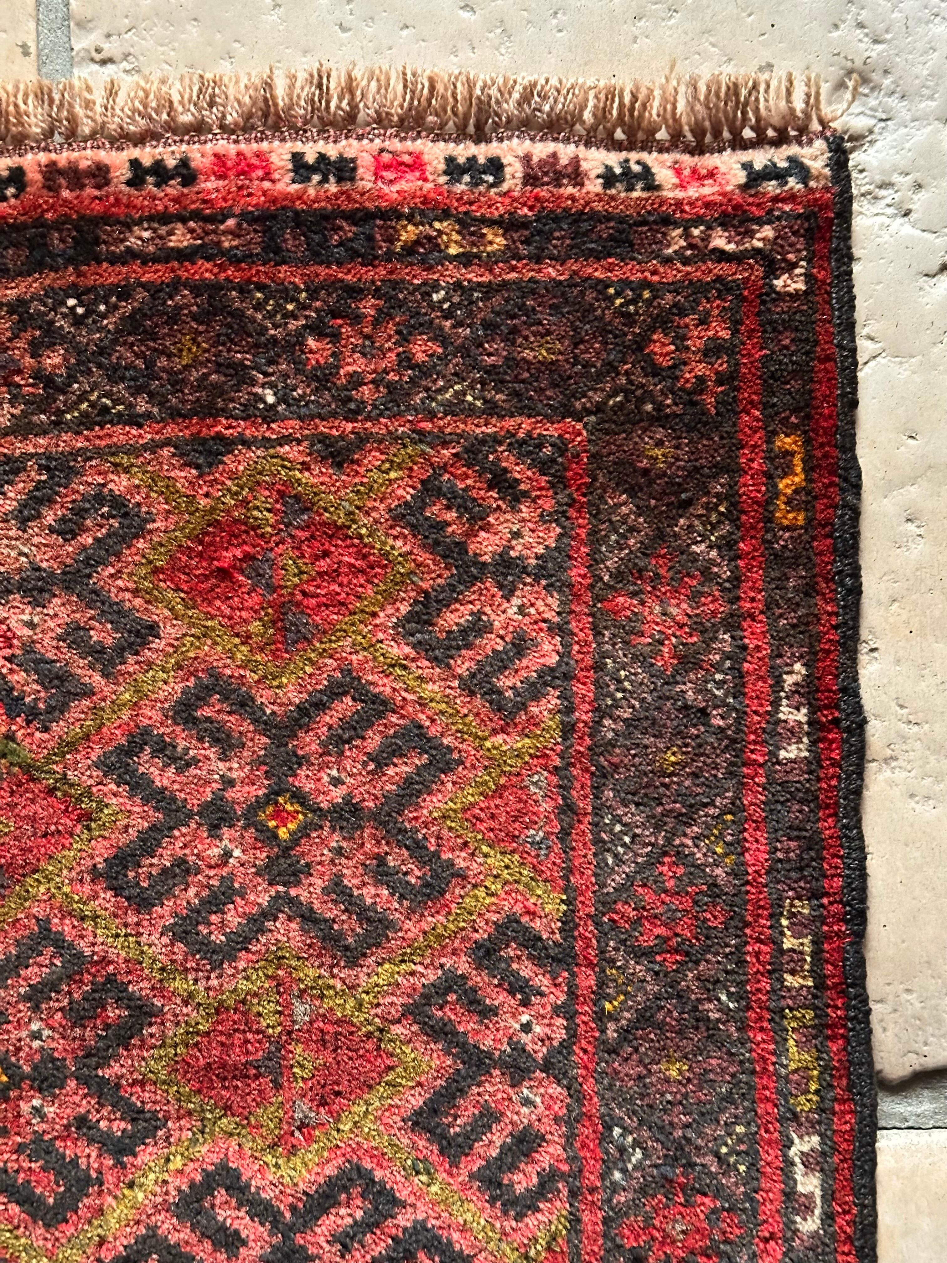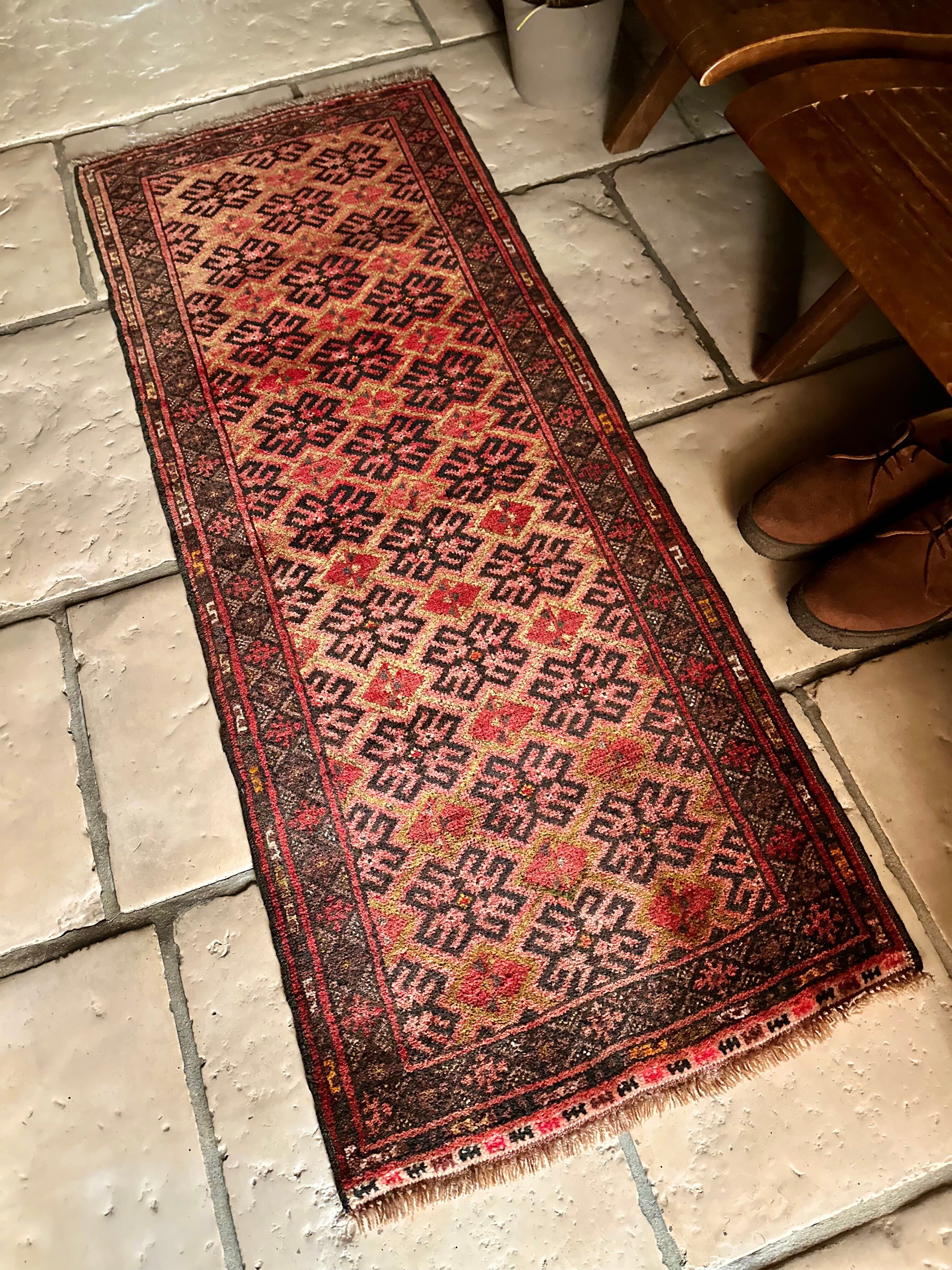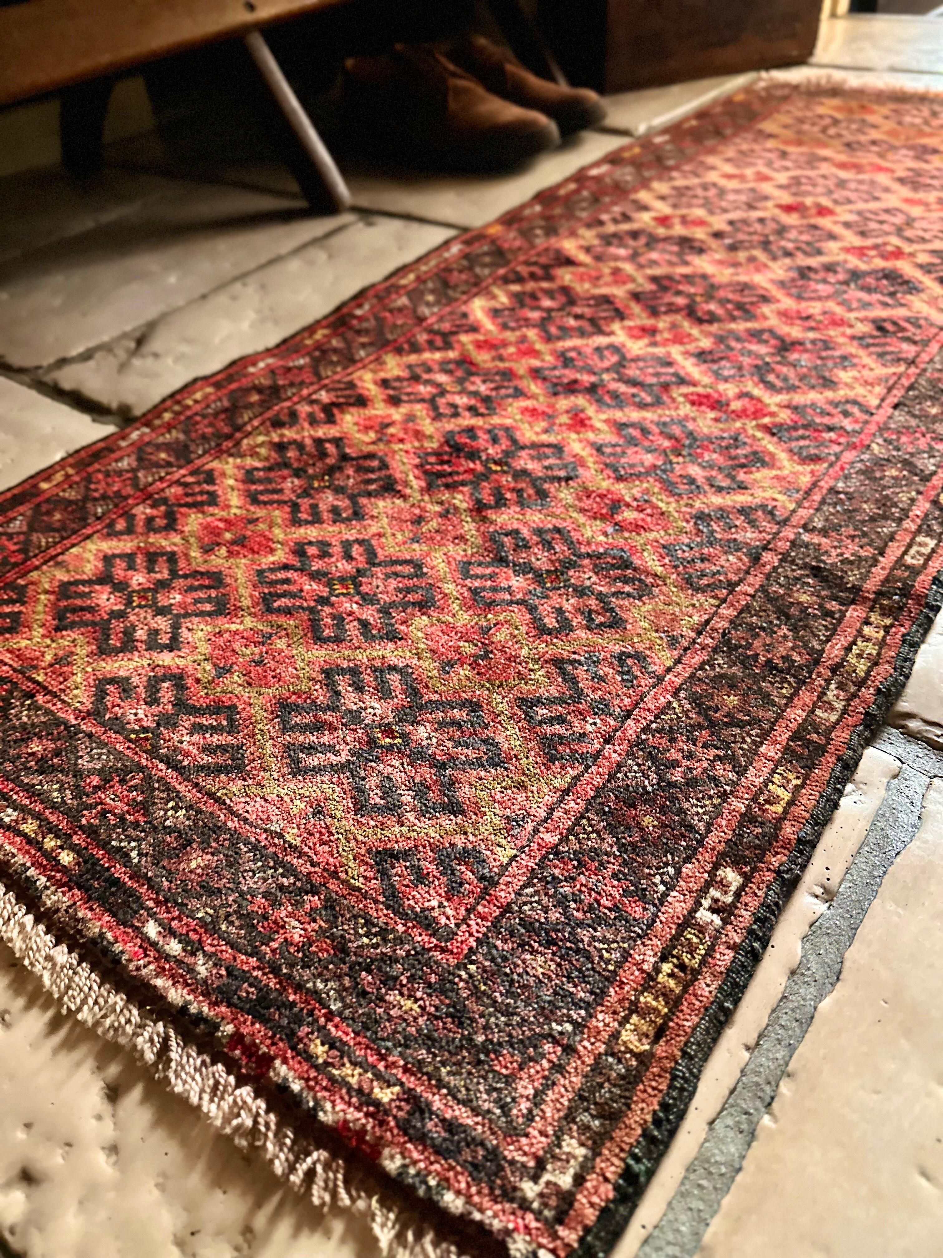見た目にもシンプルかつプリミティブな印象が伺える小さなランナーサイズで、アフガニスタン北部のマイマナ近隣にあるDawlat Abadという村で織られたヴィレッジラグになります。