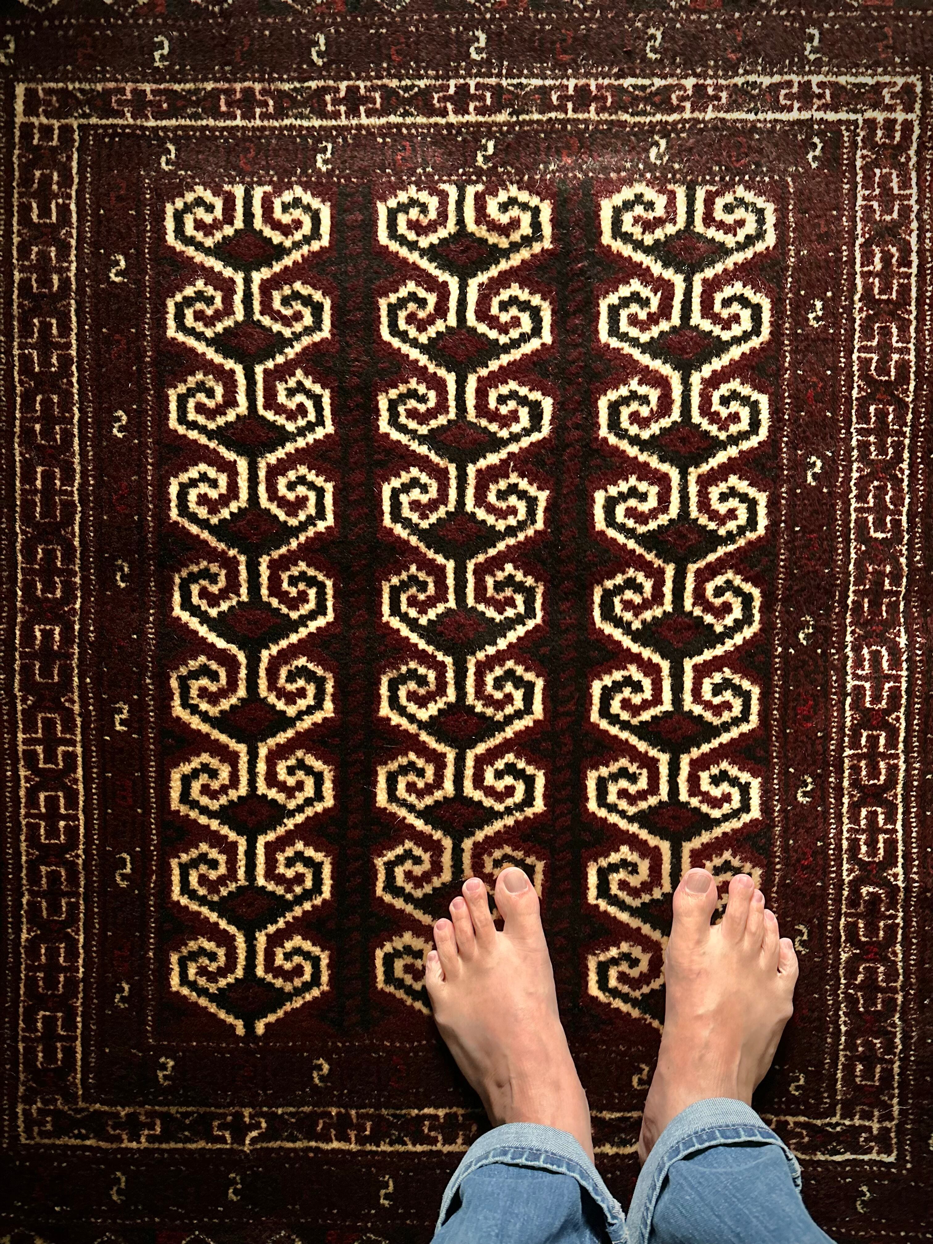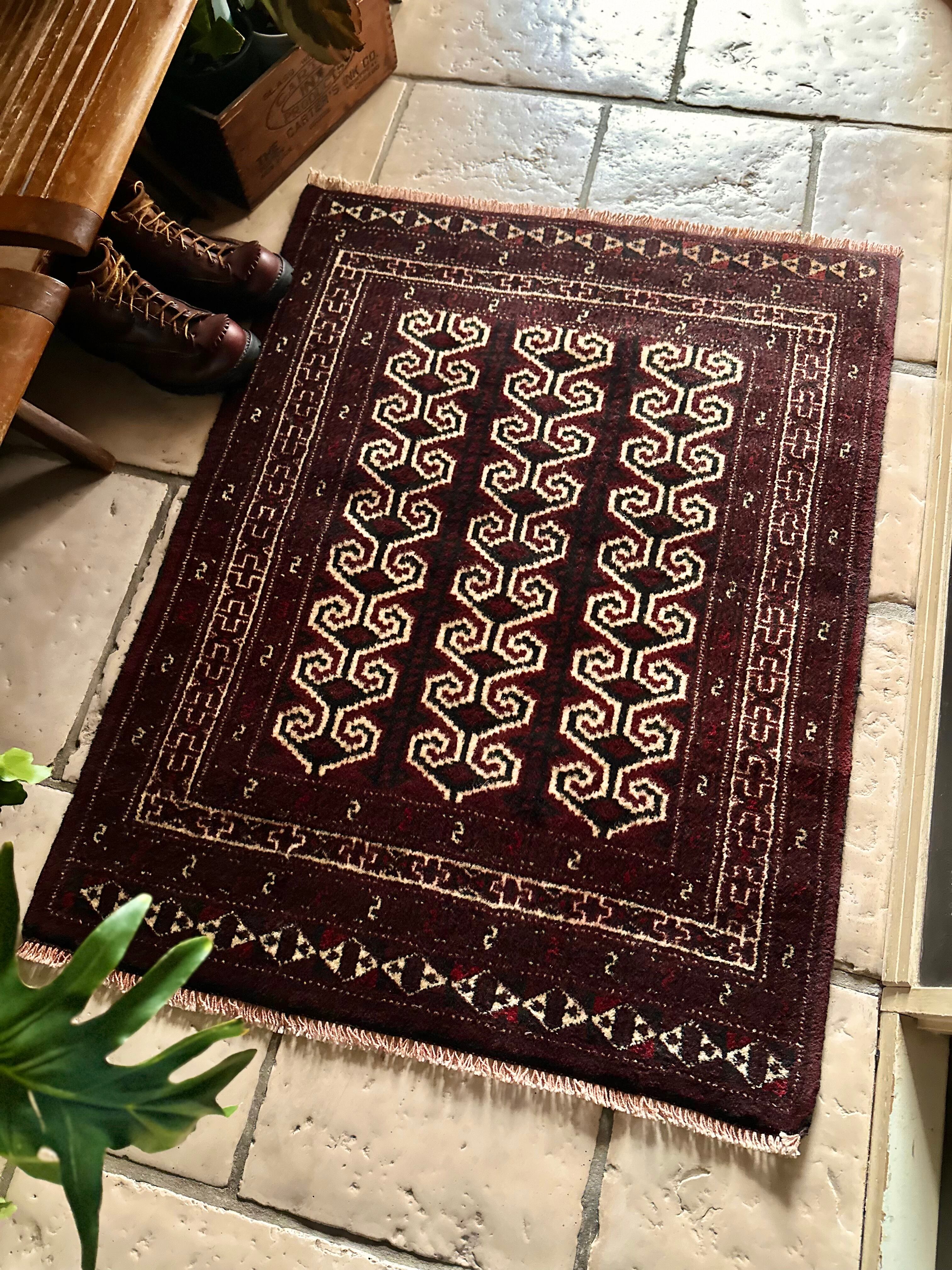 個人的に好きなタイプの絨毯としては、肉厚でしっかりとした織りにパイルはフサフサという条件がありますが、こちらはまさにその全てをクリアした最高な質感で、大きさ的にも敷く場所を選ばない玄関マットサイズがこれまた良いっす。