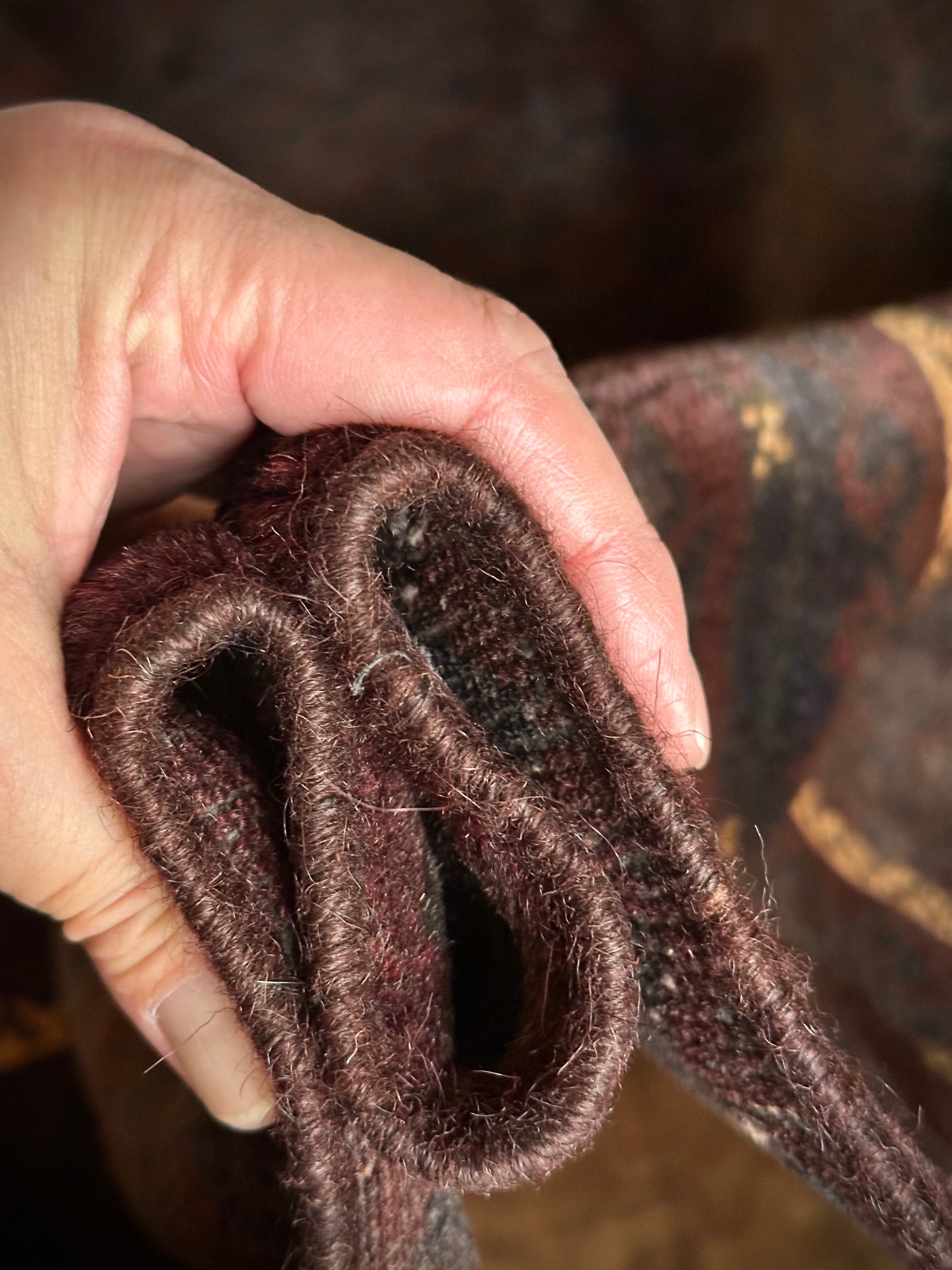 最後にラグそのものに関しては羊毛特有の匂いがあり、採寸は中央付近で計測していますが、手織りならではの歪みによる誤差や水洗いクリーニングによる縮み、また草木染めによる経年劣化の色ムラなどがありますが、それもまたヴィンテージラグの魅力かとご理解ください。