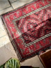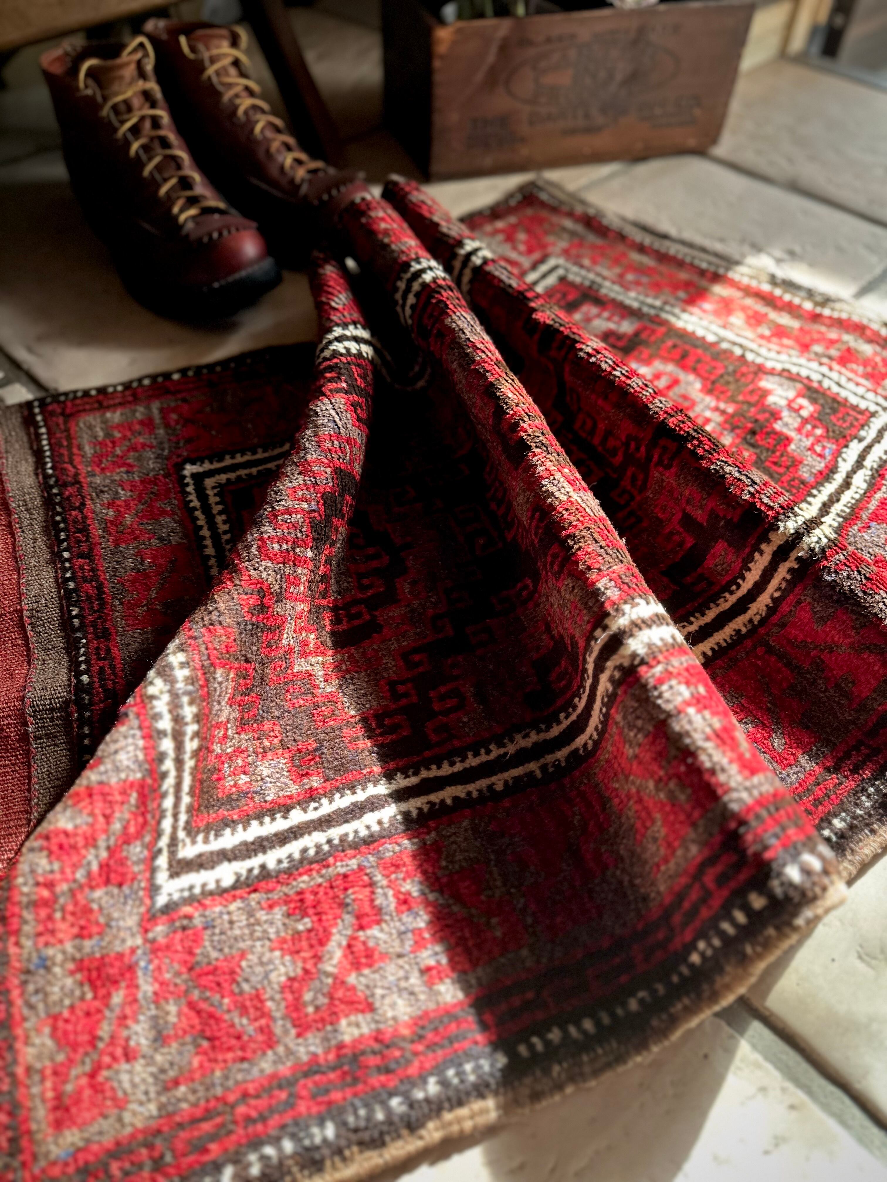 経年としては年のヴィンテージラグらしく、それなりの使用感に元々のざっくりとした織りの荒さはありますが、気になる汚れにダメージは見当たらないグッドなコンディションで、パイル自体も程よい長さにサラッとした肌触りが心地よいです。