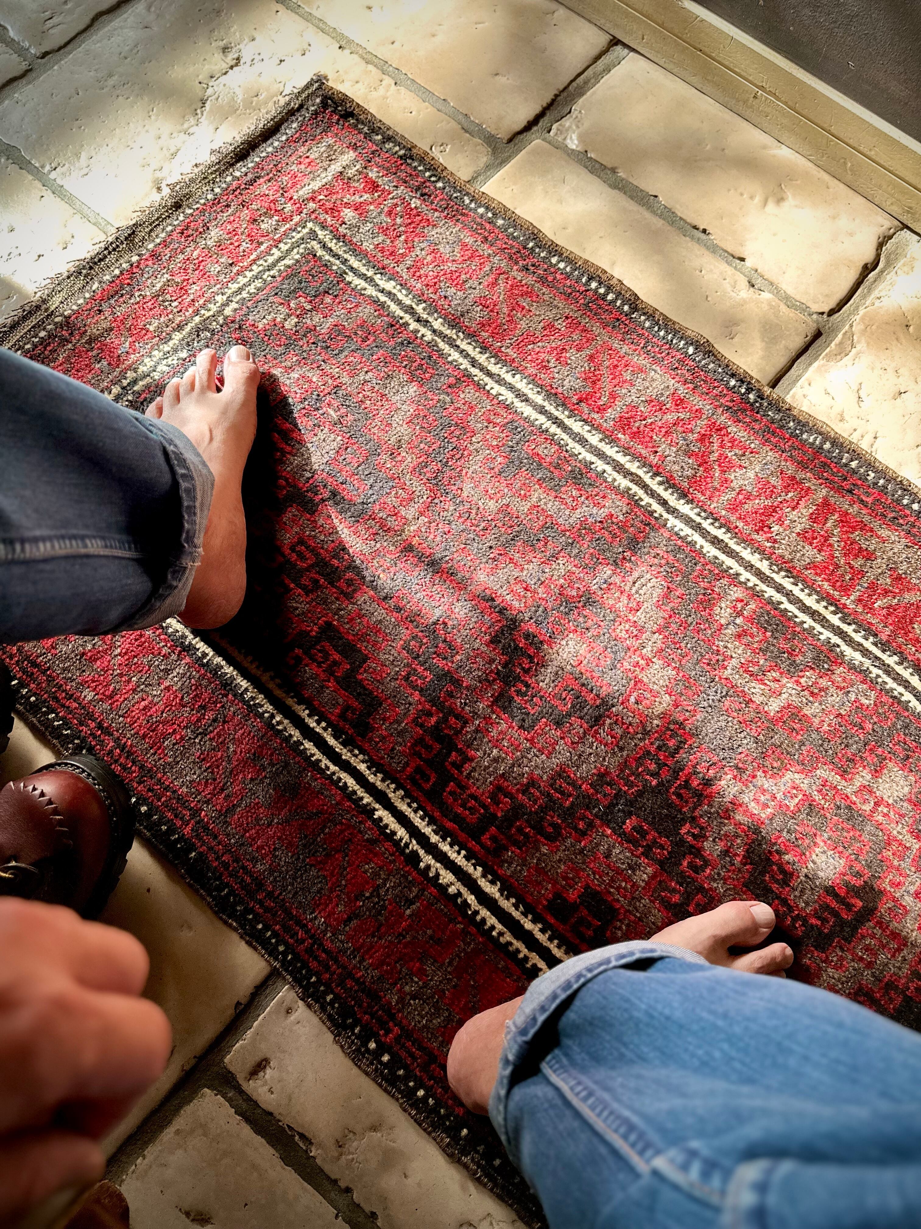 最後にラグそのものに関しては羊毛特有の匂いがあり、採寸は中央付近で計測していますが、手織りならではの歪みによる誤差や水洗いクリーニングによる縮み、また草木染めによる経年劣化の色ムラなどがありますが、それもまたヴィンテージラグの魅力かとご理解ください。