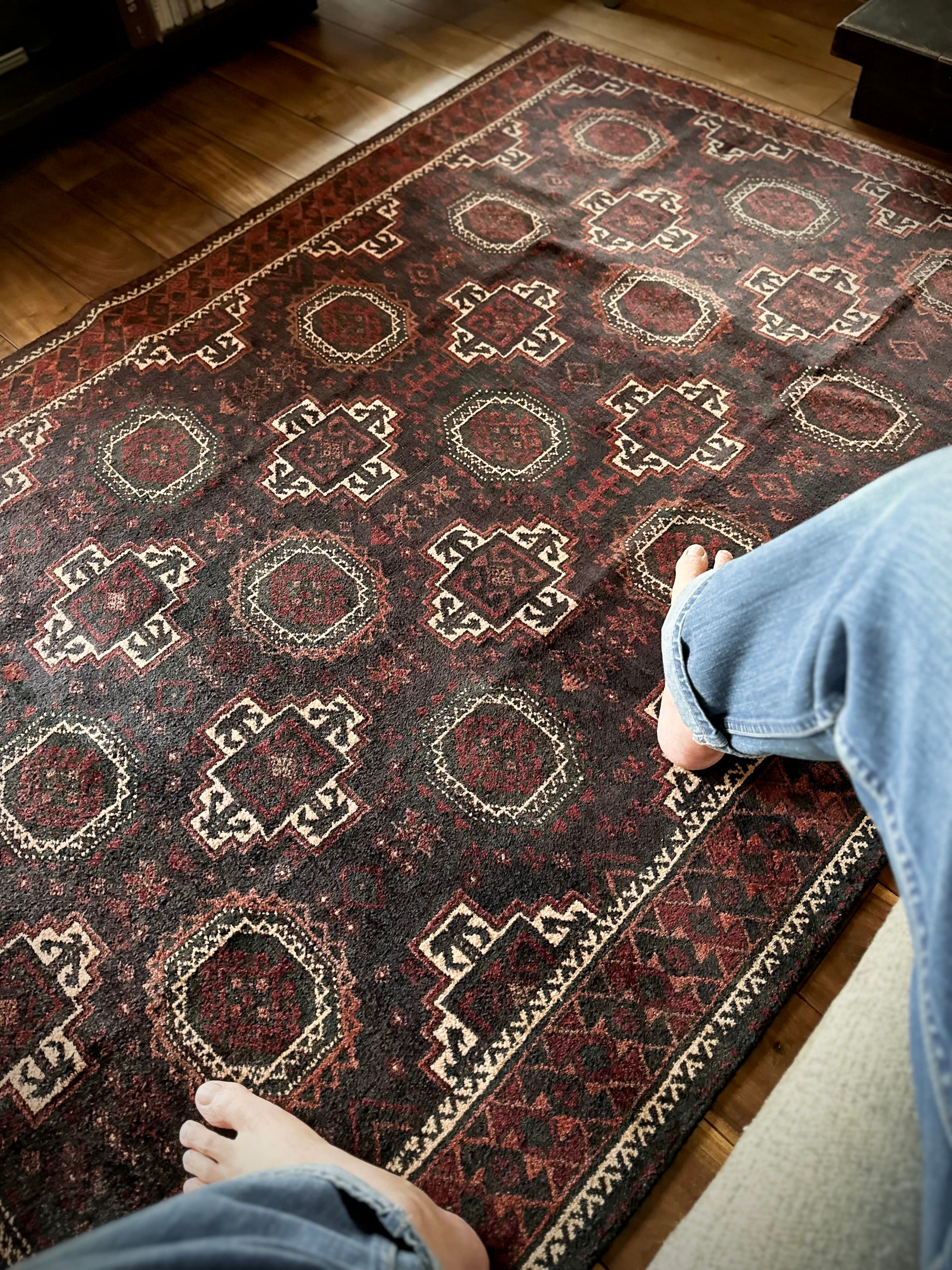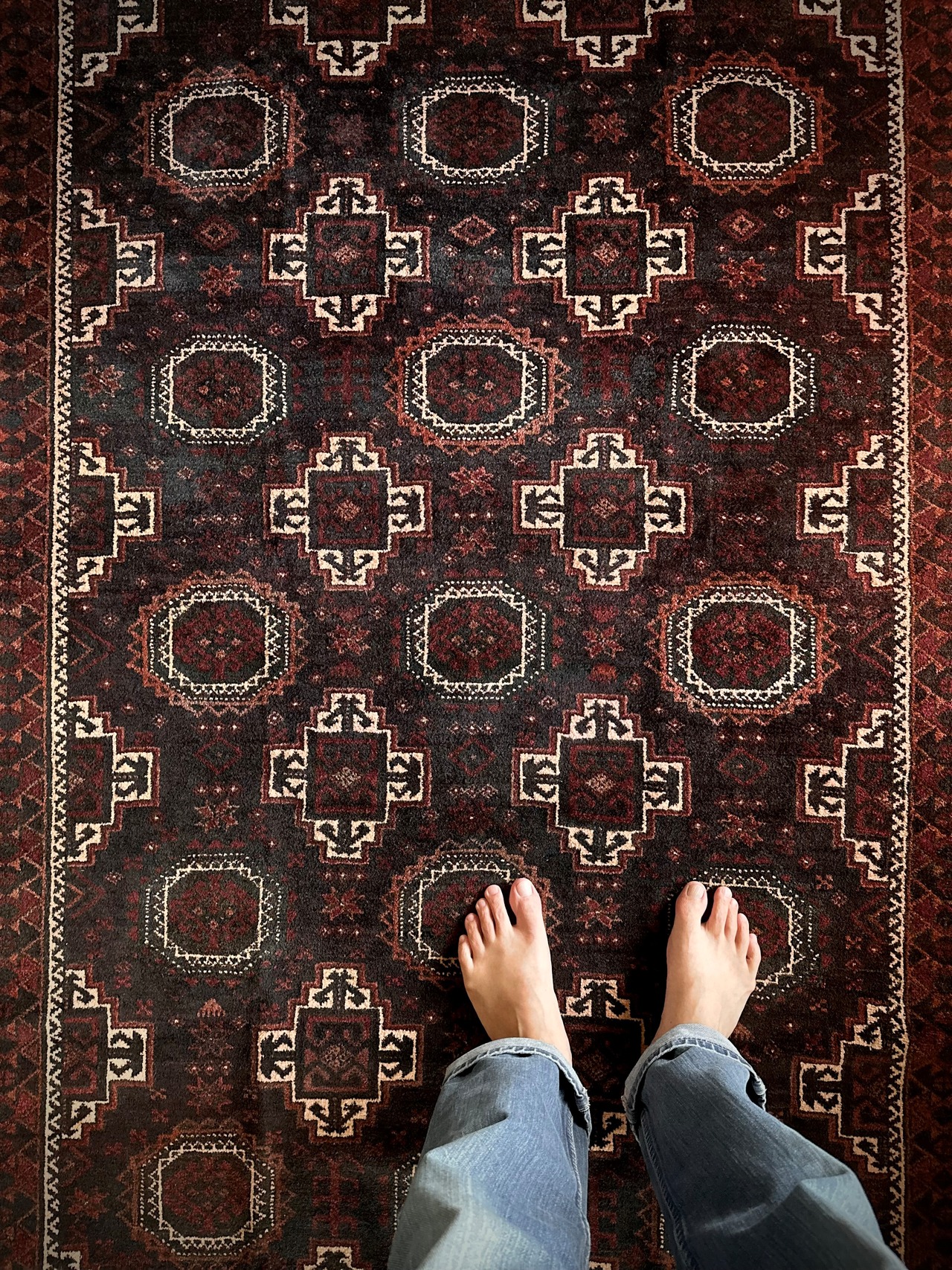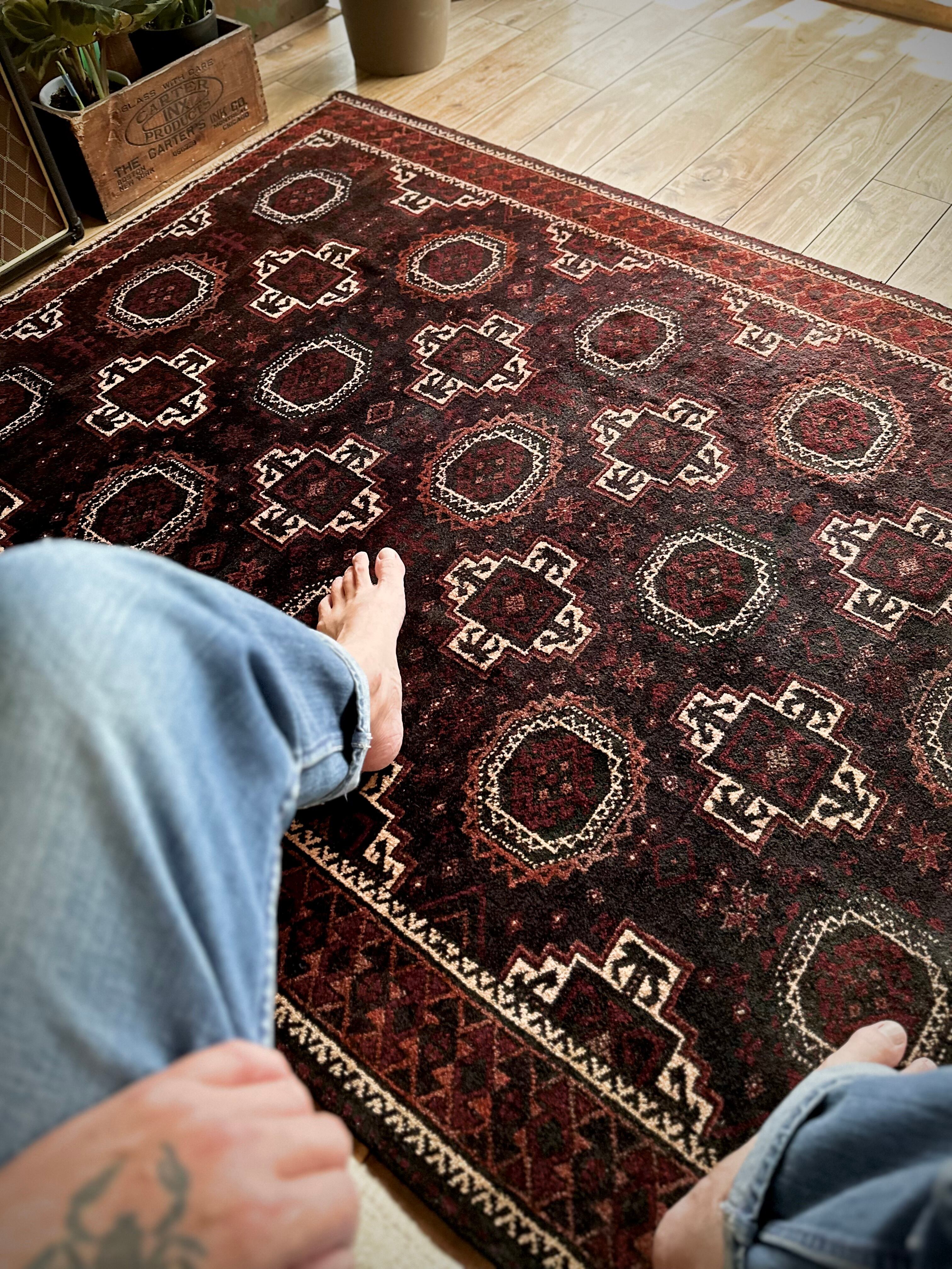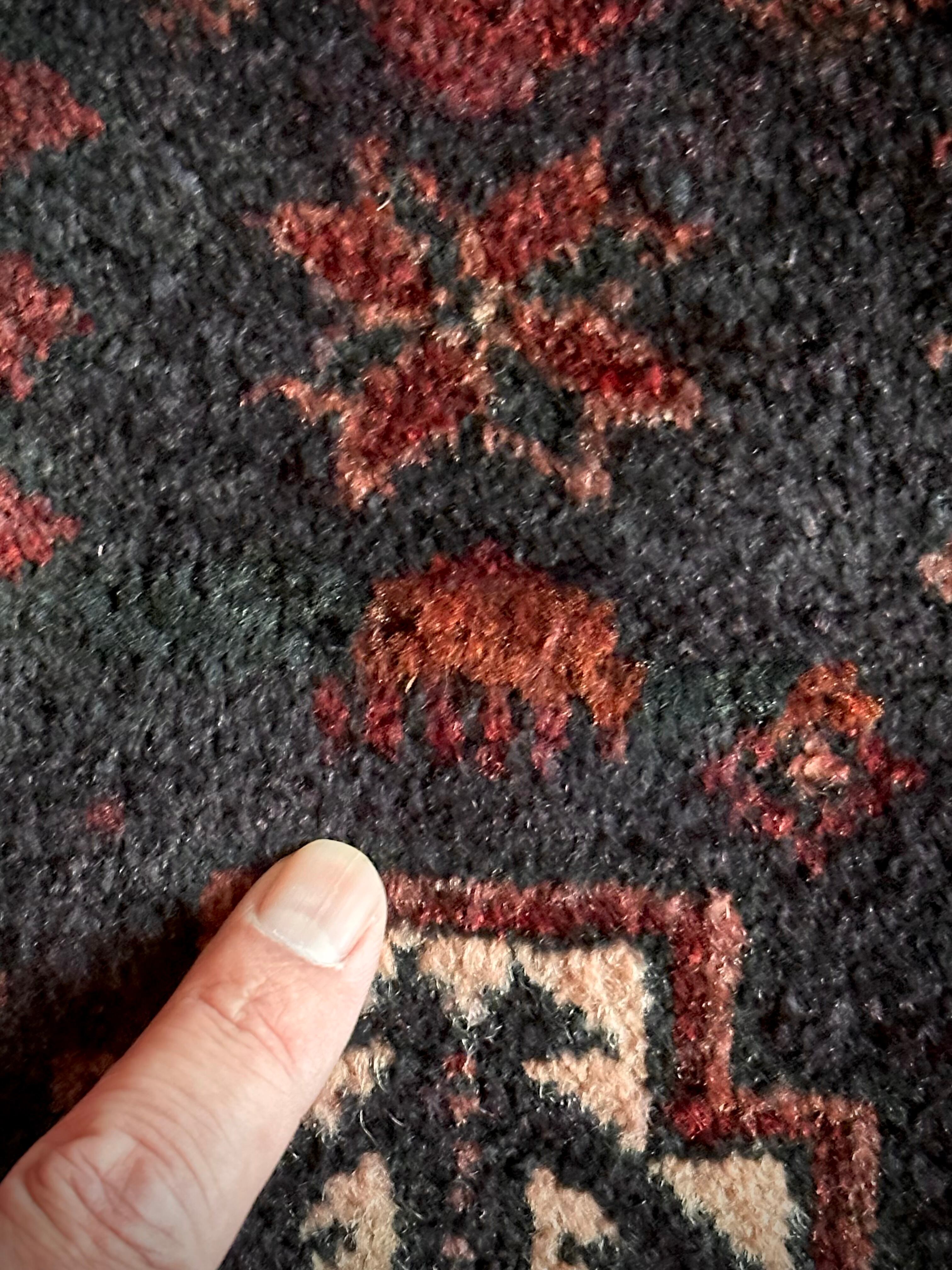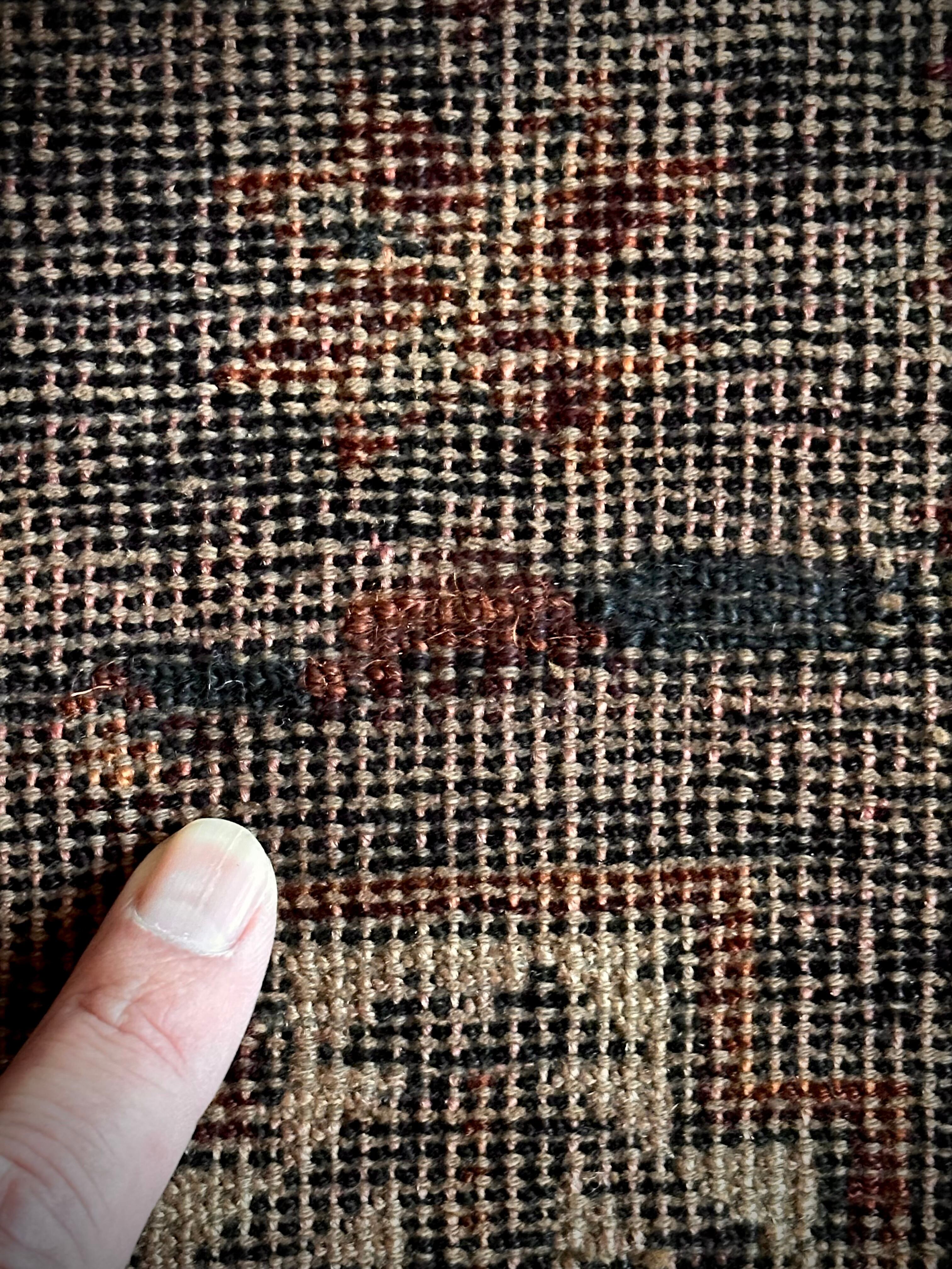 最後にラグそのものに関しては羊毛特有の匂いがあり、採寸は中央付近で計測していますが、手織りならではの歪みによる誤差や水洗いクリーニングによる縮み、また草木染めによる経年劣化の色ムラなどがありますが、それもまたヴィンテージラグの魅力かとご理解ください。
