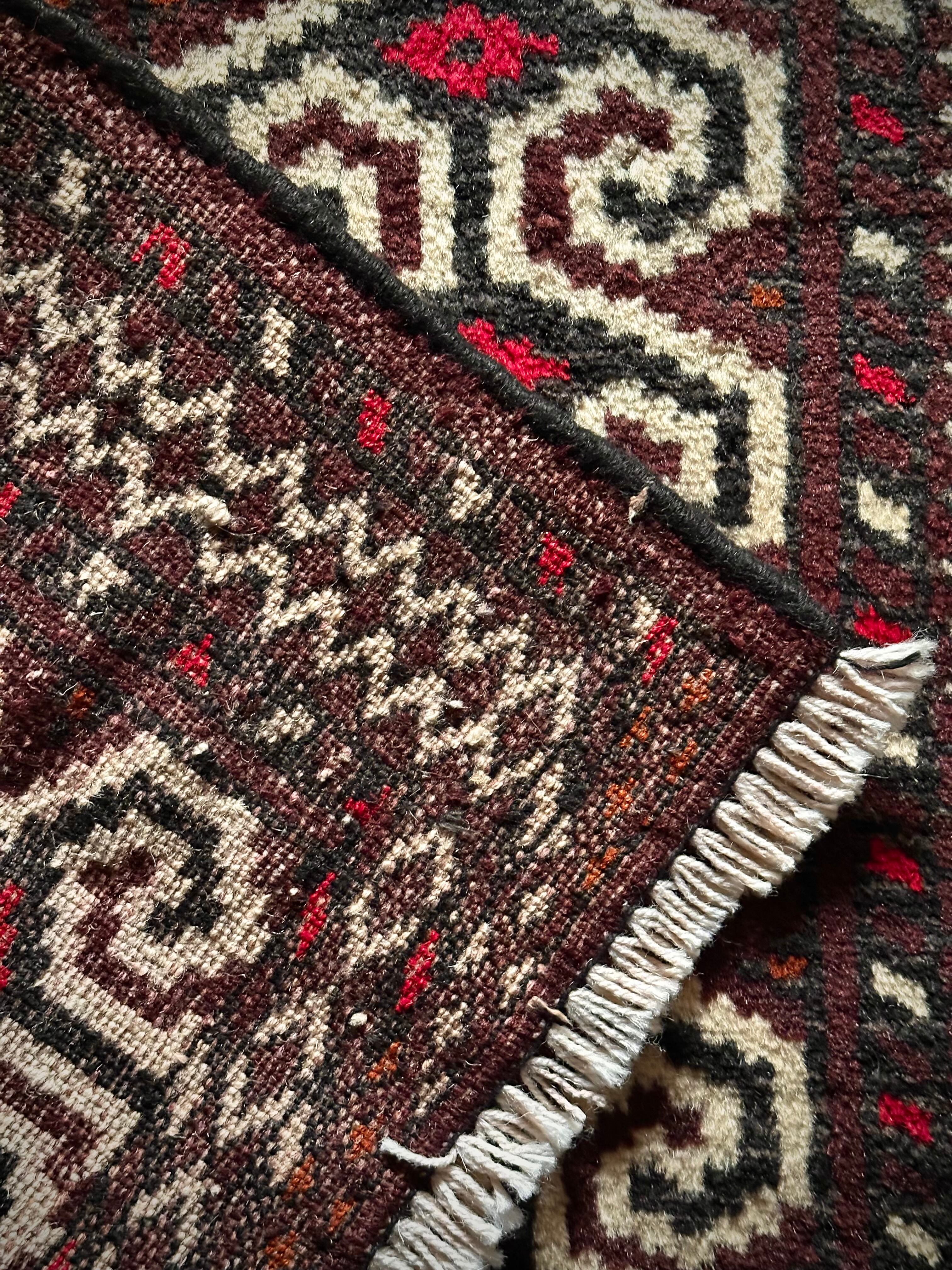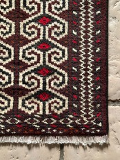 見るからにワイルドな面構えで個人的にも好きな紋様のこちらは、イラン北東部に居住するトルクメン族のトライバルラグで、過去にも数枚ピックアップしていますが、いろんなバリエーションがあって面白いシリーズです。