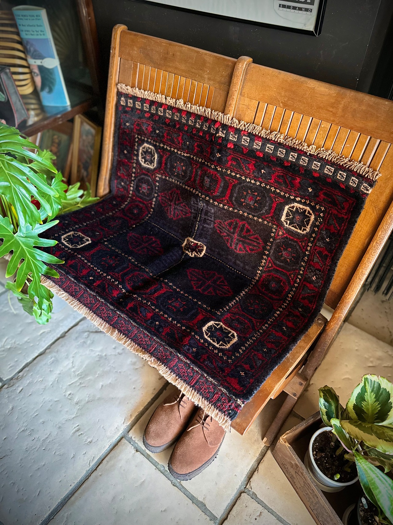 通常のバッグフェイスよりも大きなサイズ感になりますので床に敷いても充分な存在感があり、かなりの厚手にみっちりと織られていて、長めのパイル毛足もしっとりとした肌触りで踏み心地に満足していただけますが、個人的には壁掛けにしてもかっこいいかと思います。