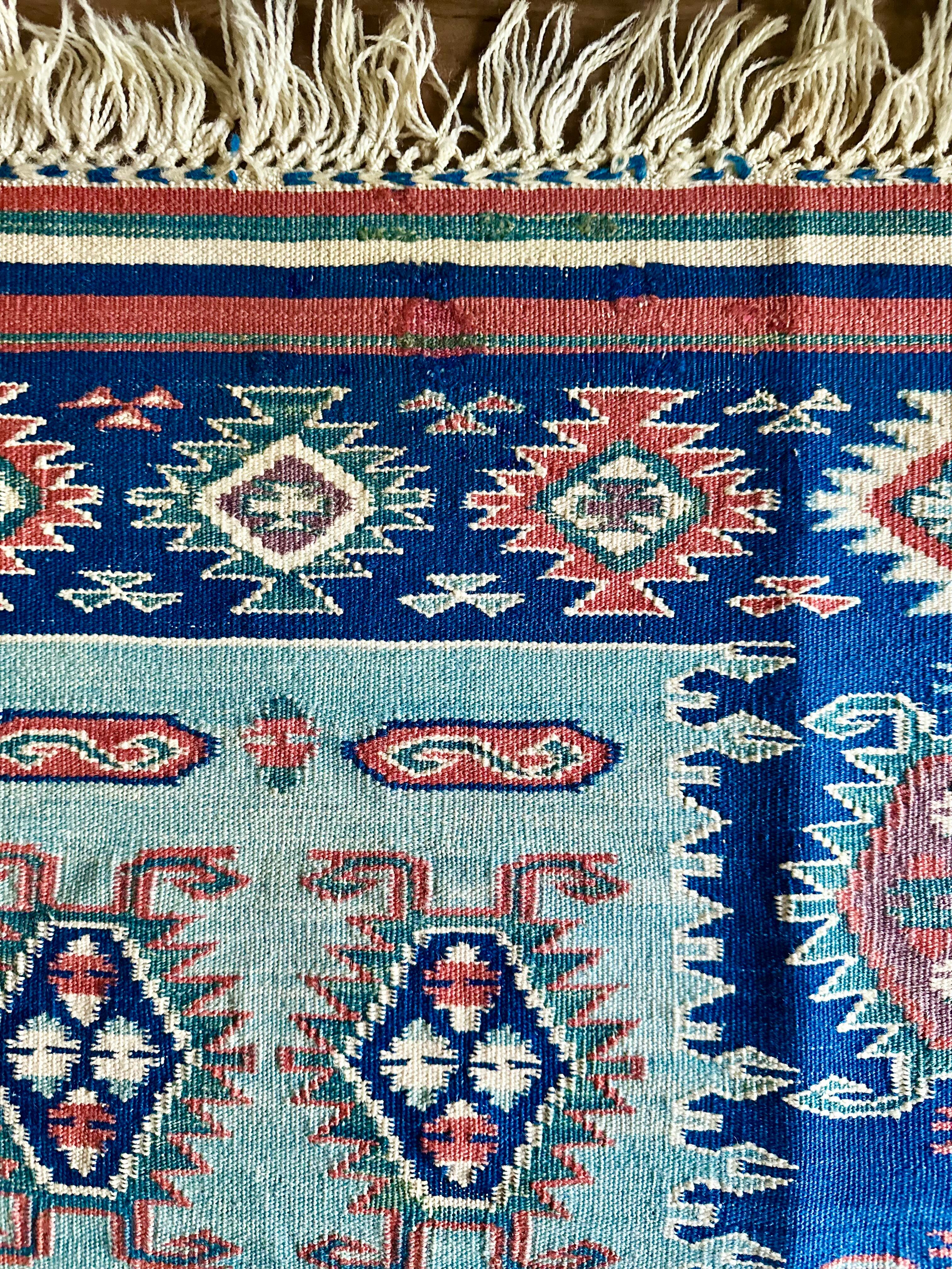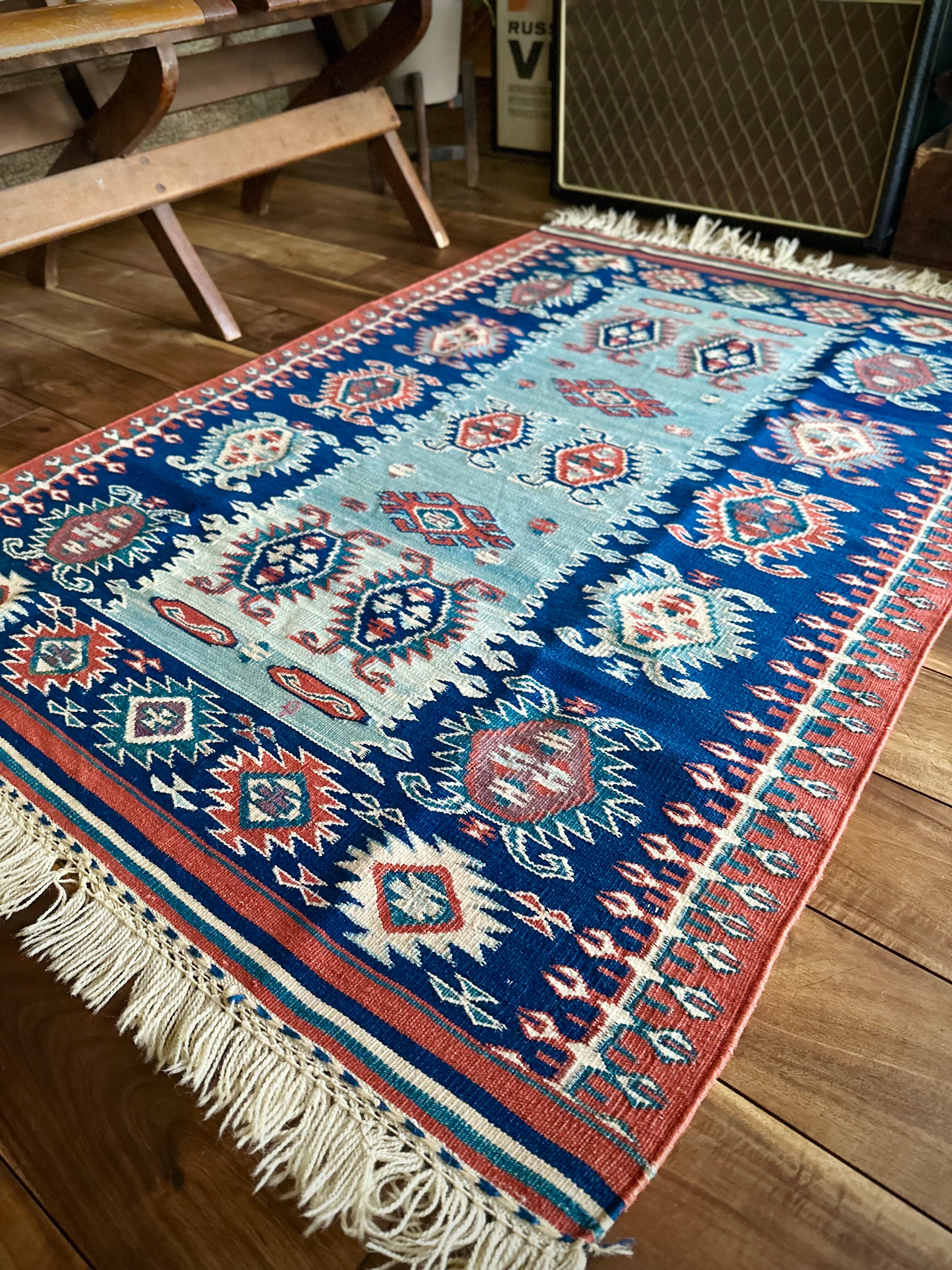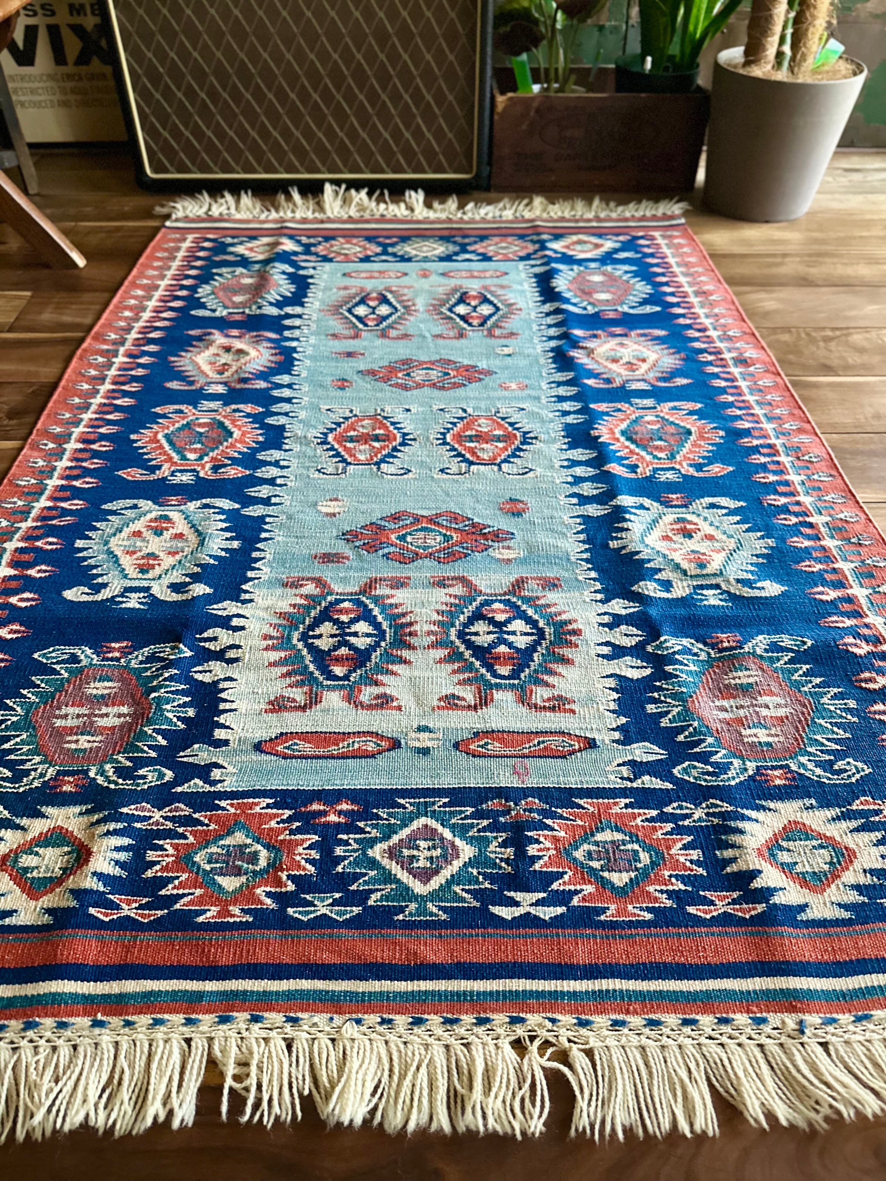 経年としてはかなり古い60年のヴィンテージラグとして、それなりの使用感にエンド部分の小さなほつれなどはありますが、全体的にオールドキリムとしては良いコンディションかと思われ雰囲気も申し分のない1枚になります。