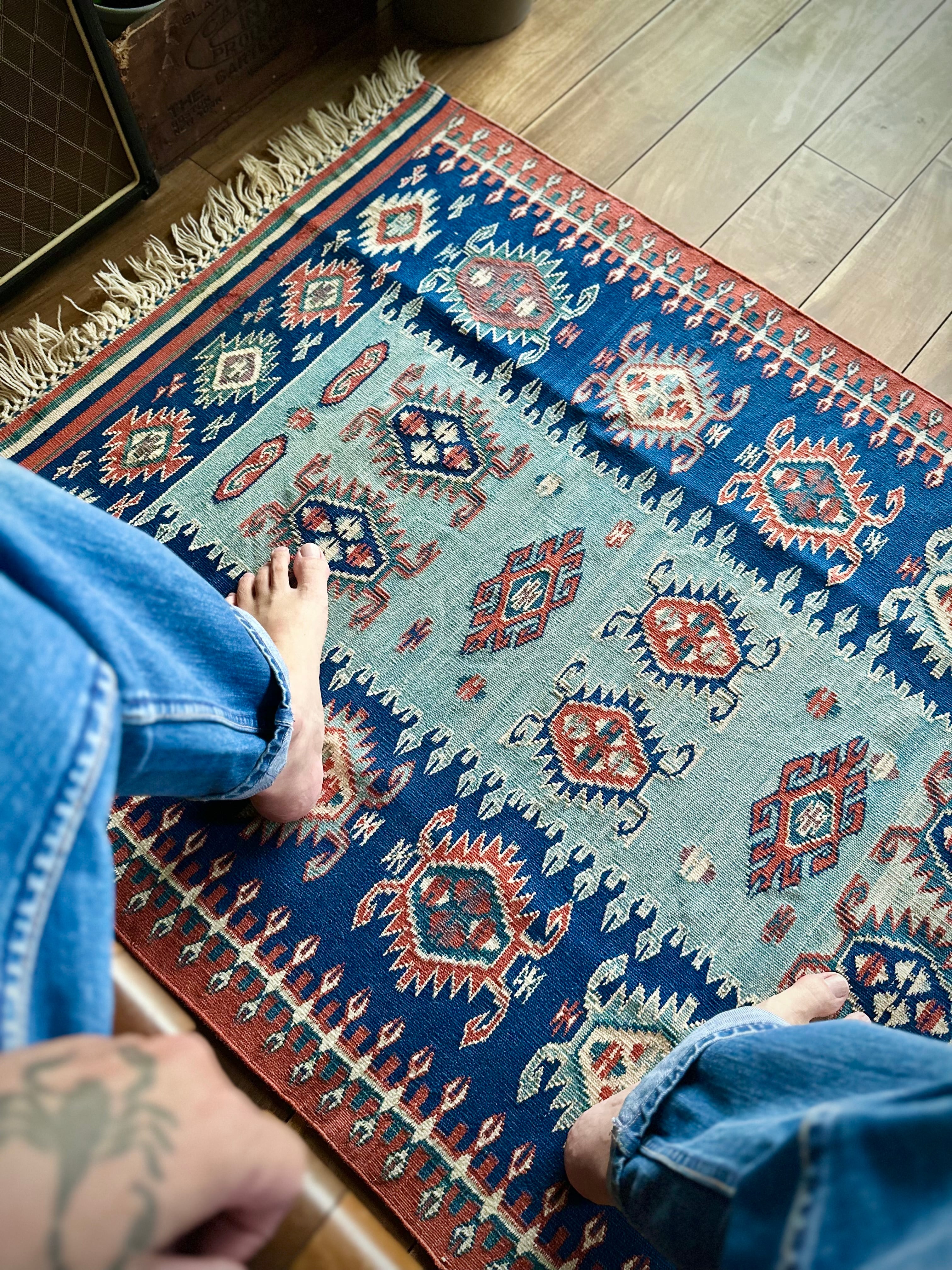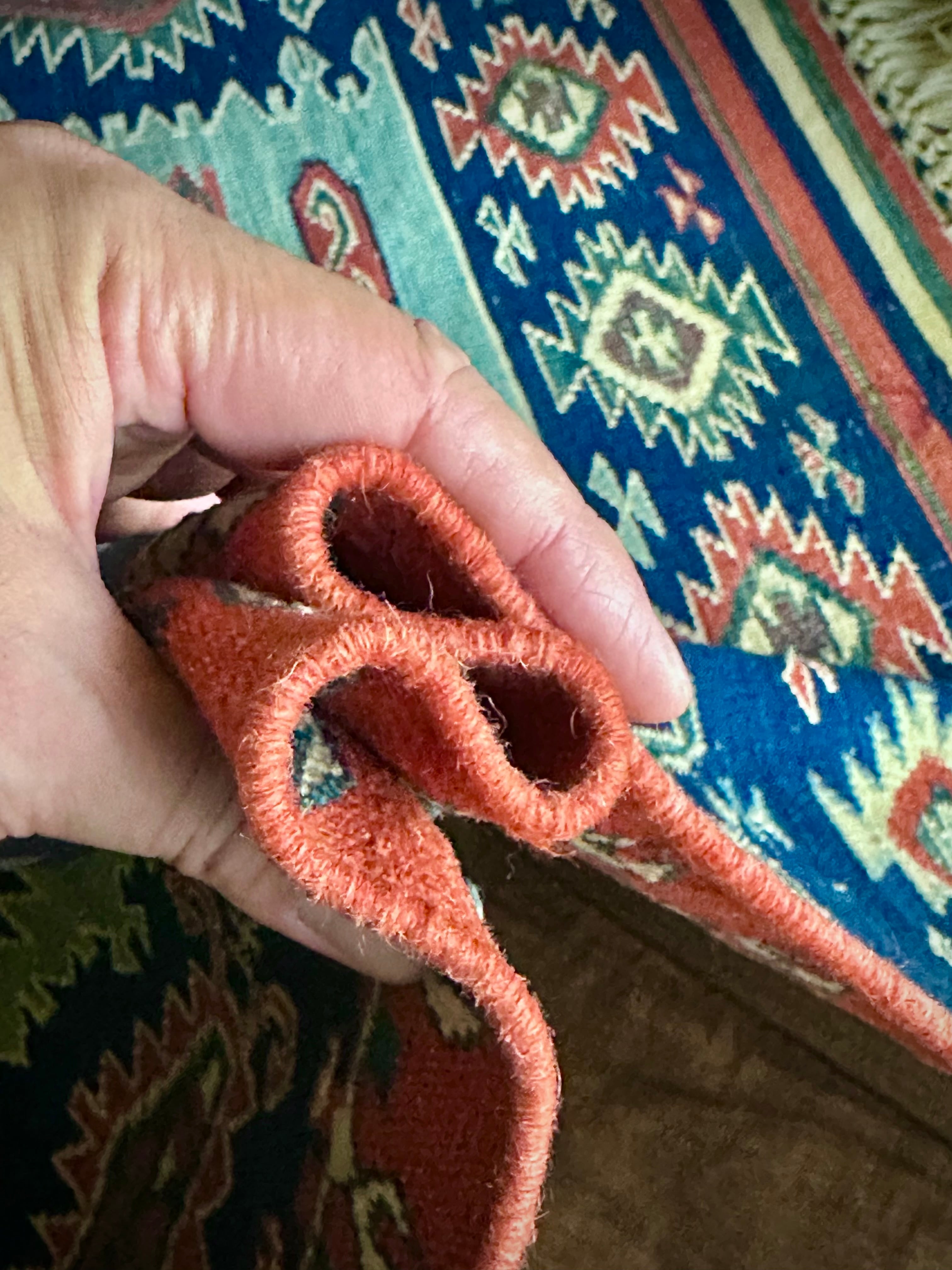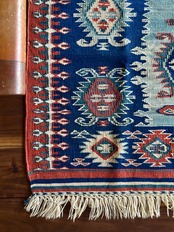 最後にラグそのものに関しては羊毛特有の匂いがあり、採寸は中央付近で計測していますが、手織りならではの歪みによる誤差や水洗いクリーニングによる縮み、また草木染めによる経年劣化の色ムラなどがありますが、それもまたヴィンテージラグの魅力かとご理解ください。