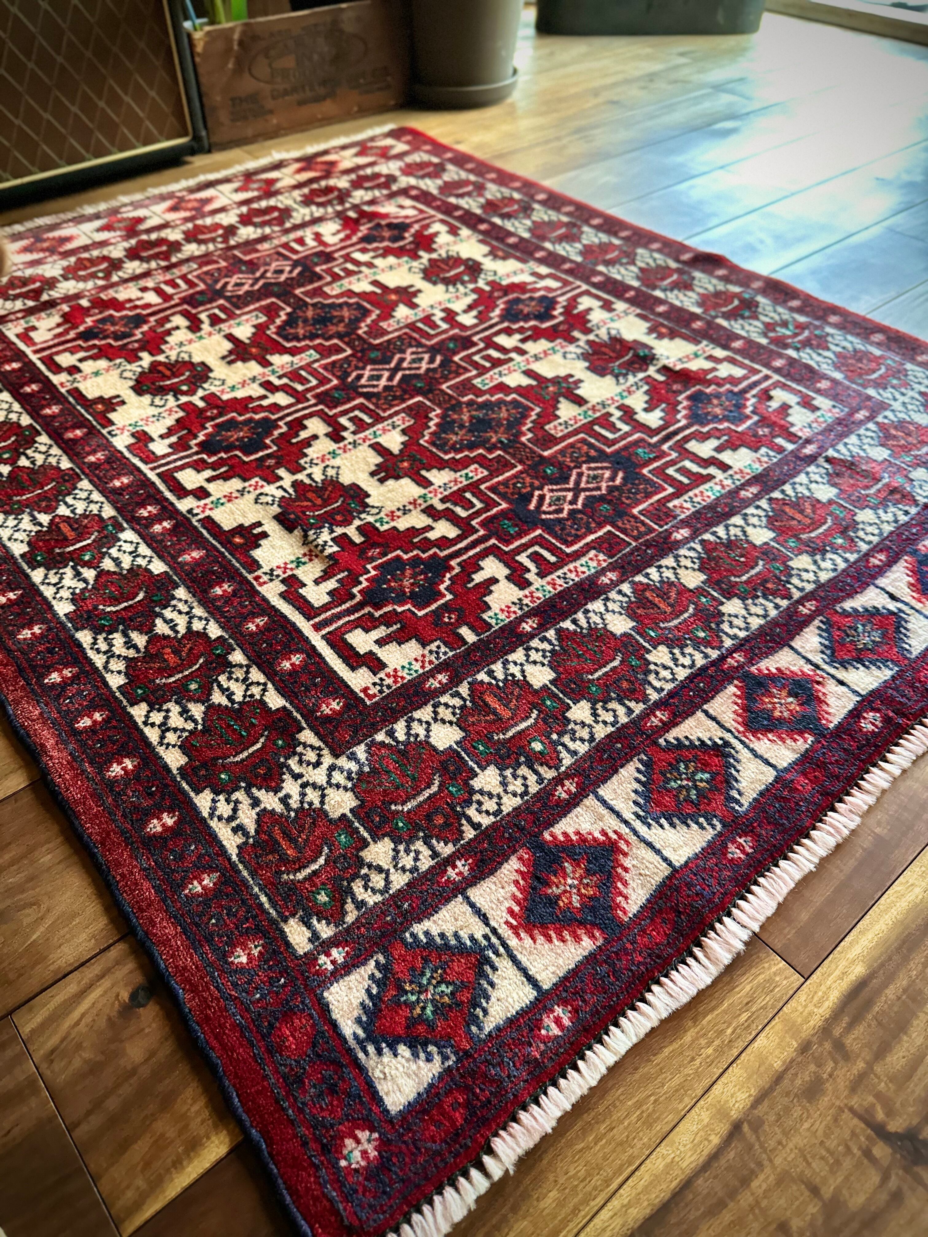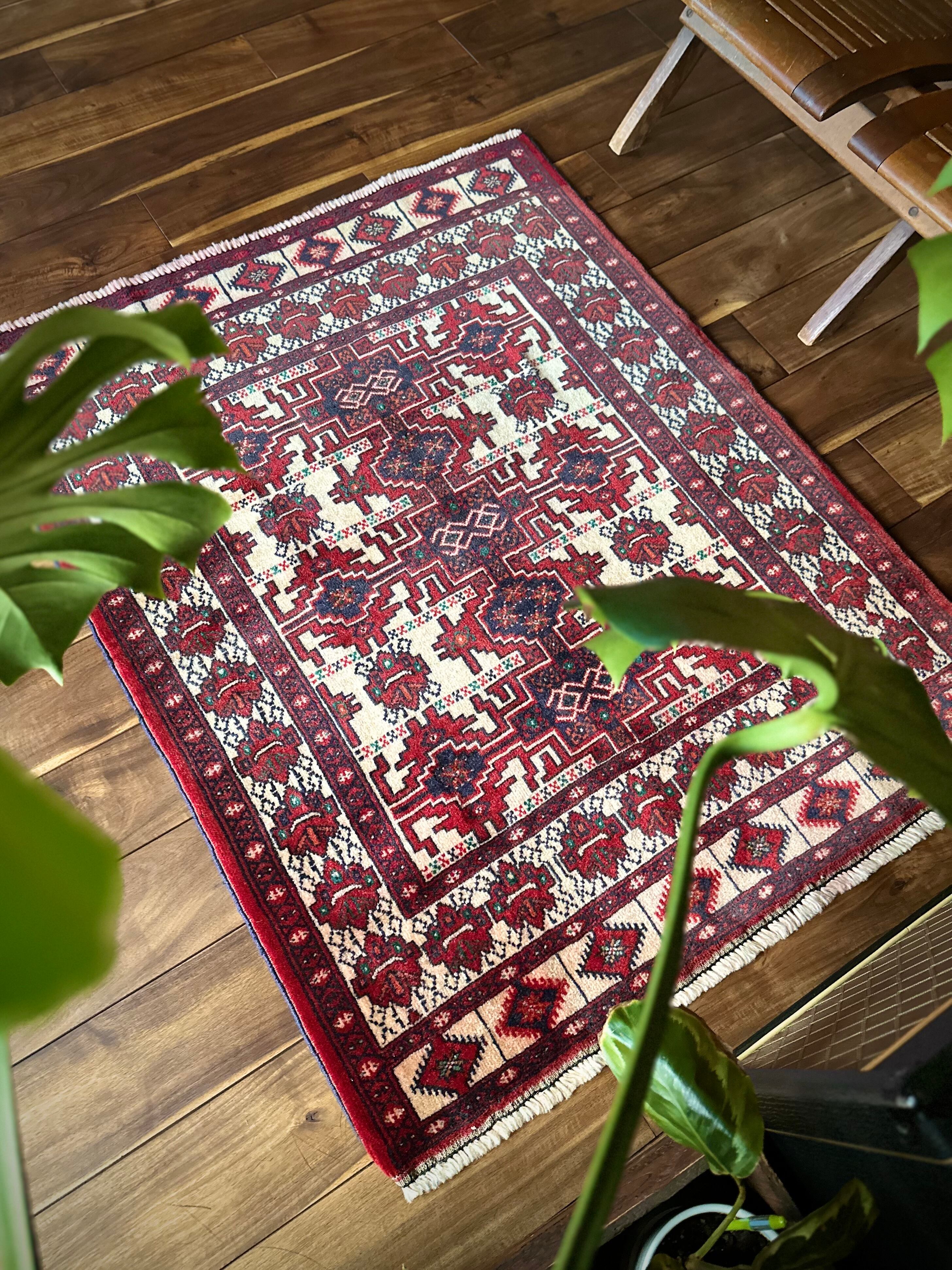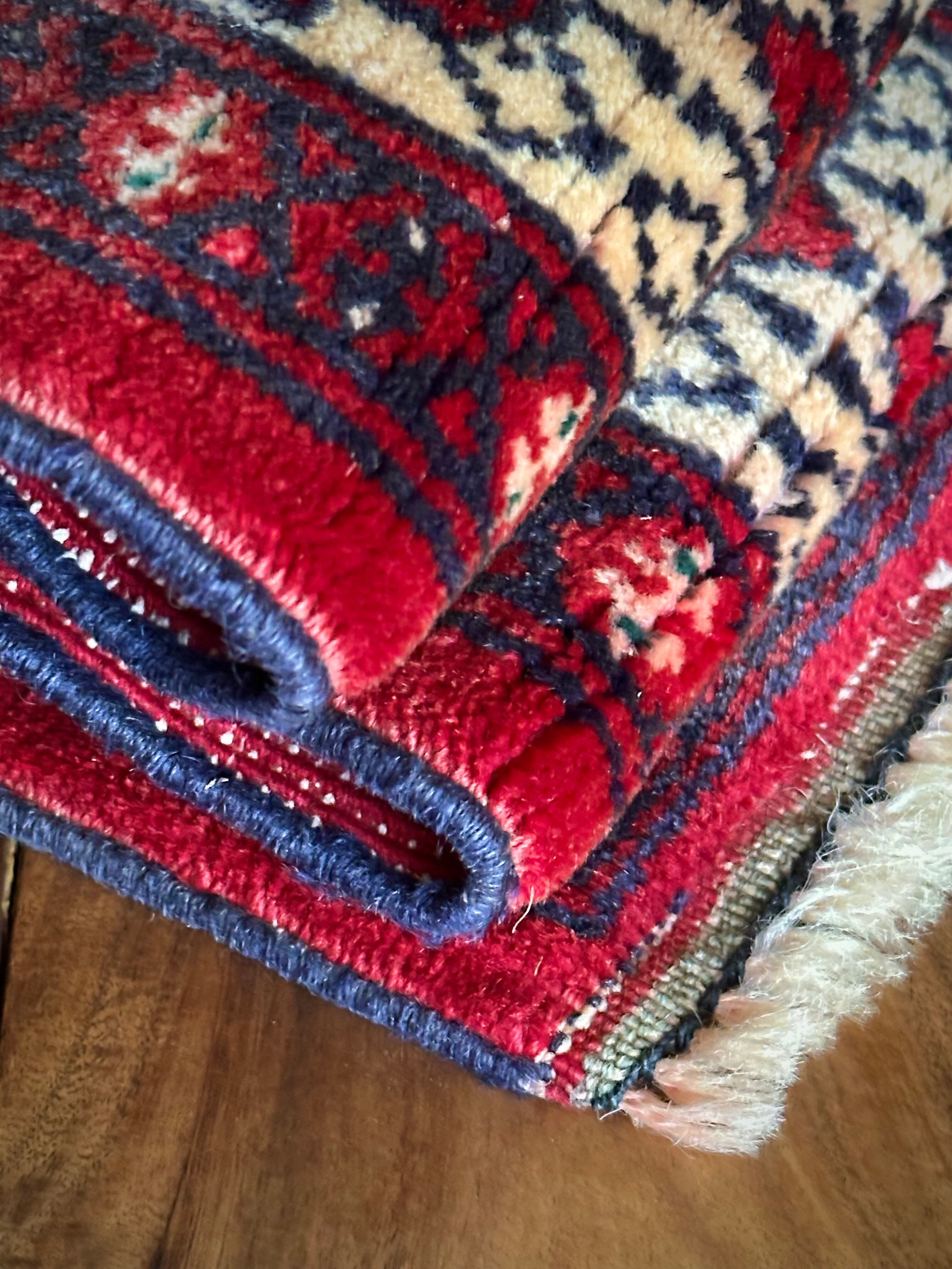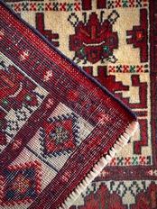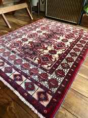 大きさ的には1人掛けカウチ前やリビングの入り口などに最適なサイズ感で、トルクメンらしい密度のある織りにパイル自体は短めのサラッとした肌触りが気持ちいいです。