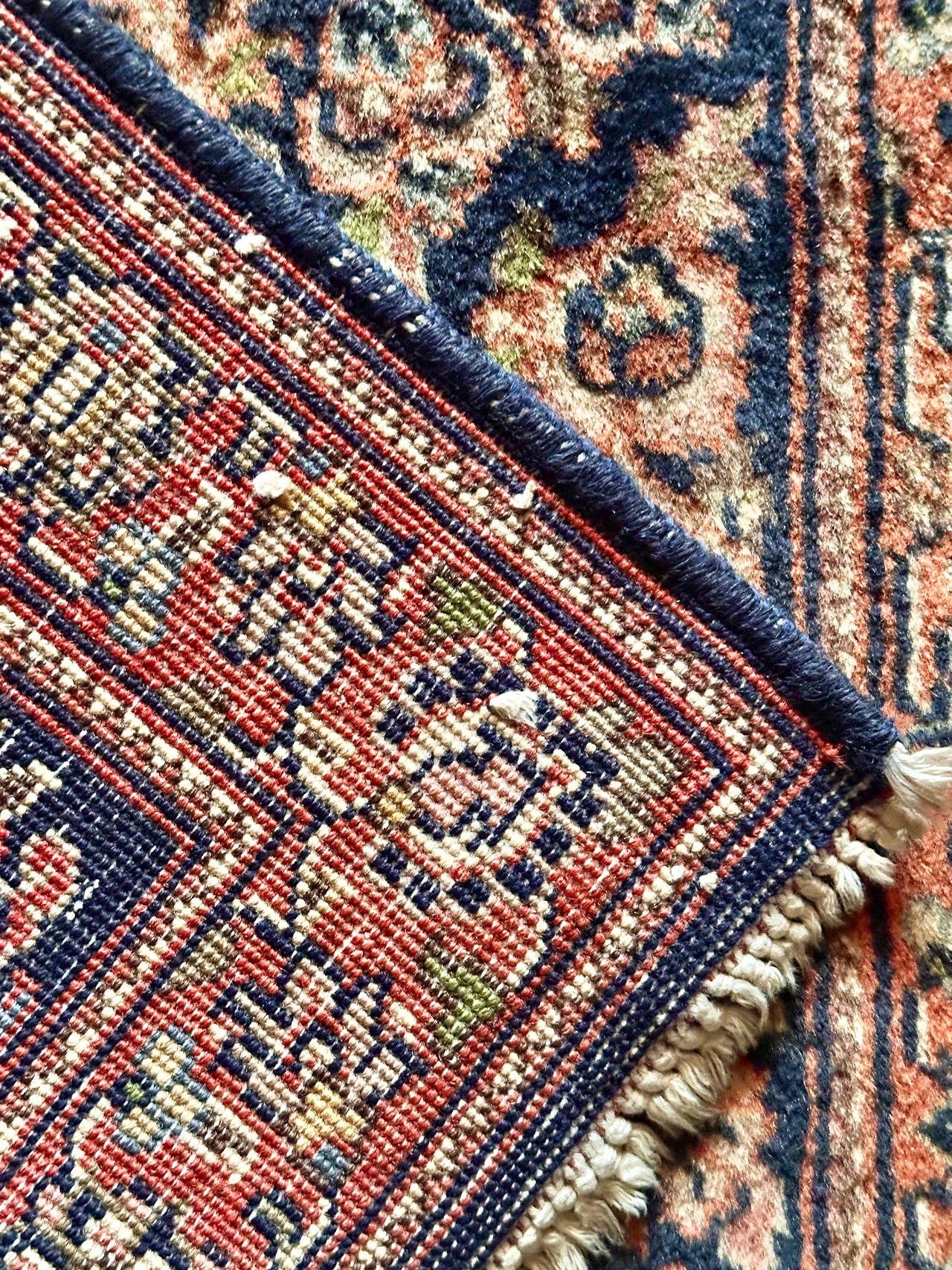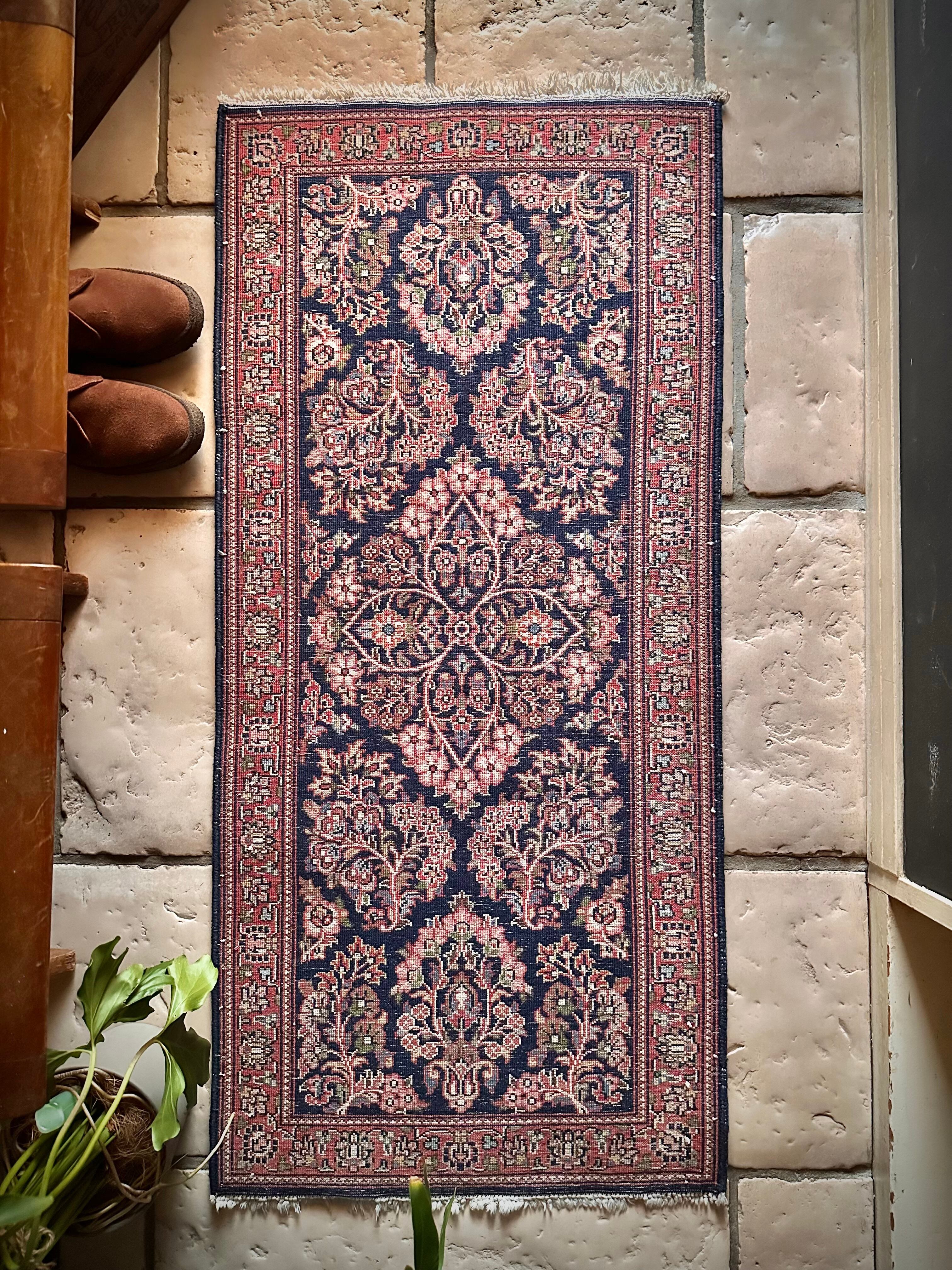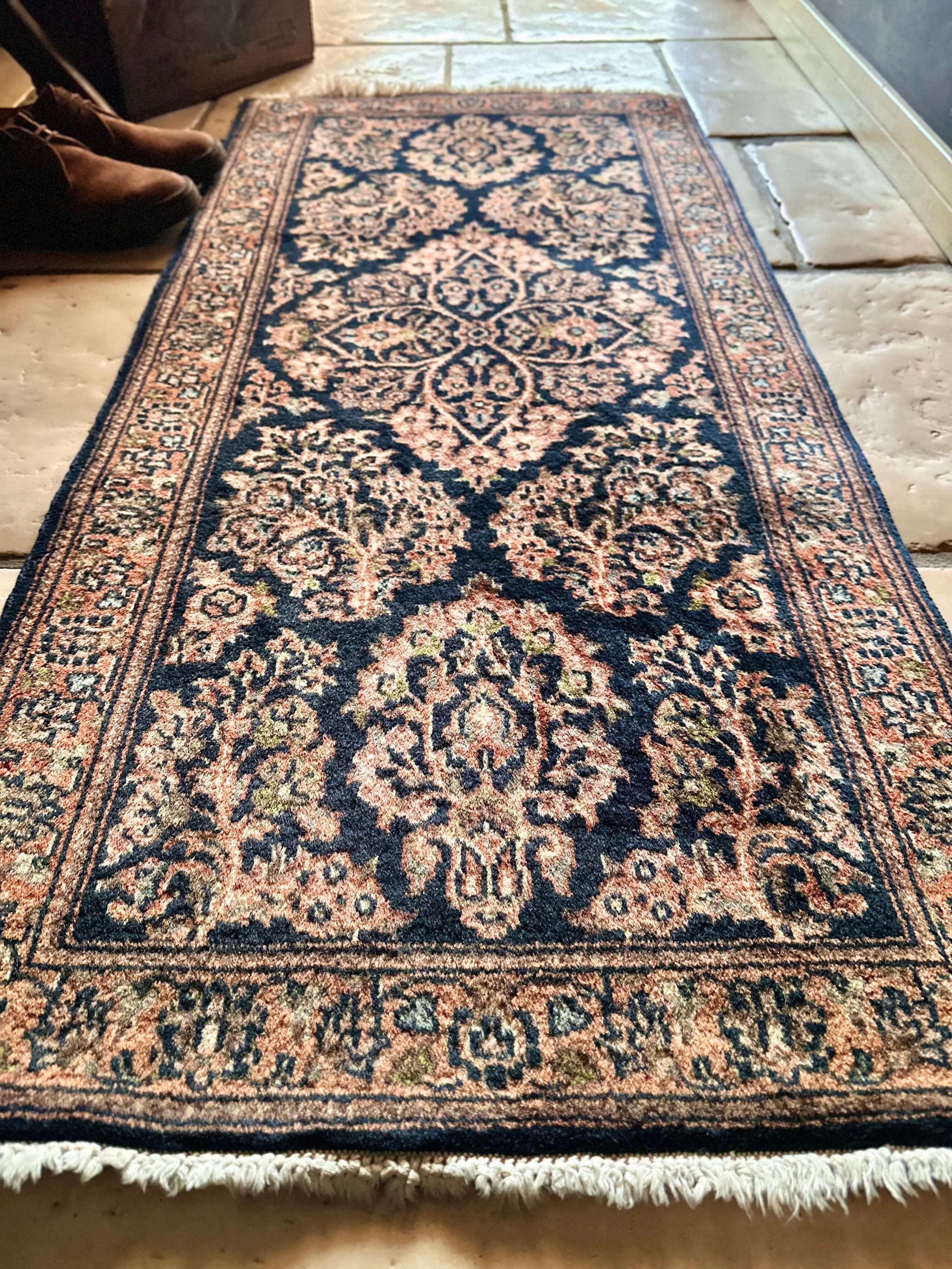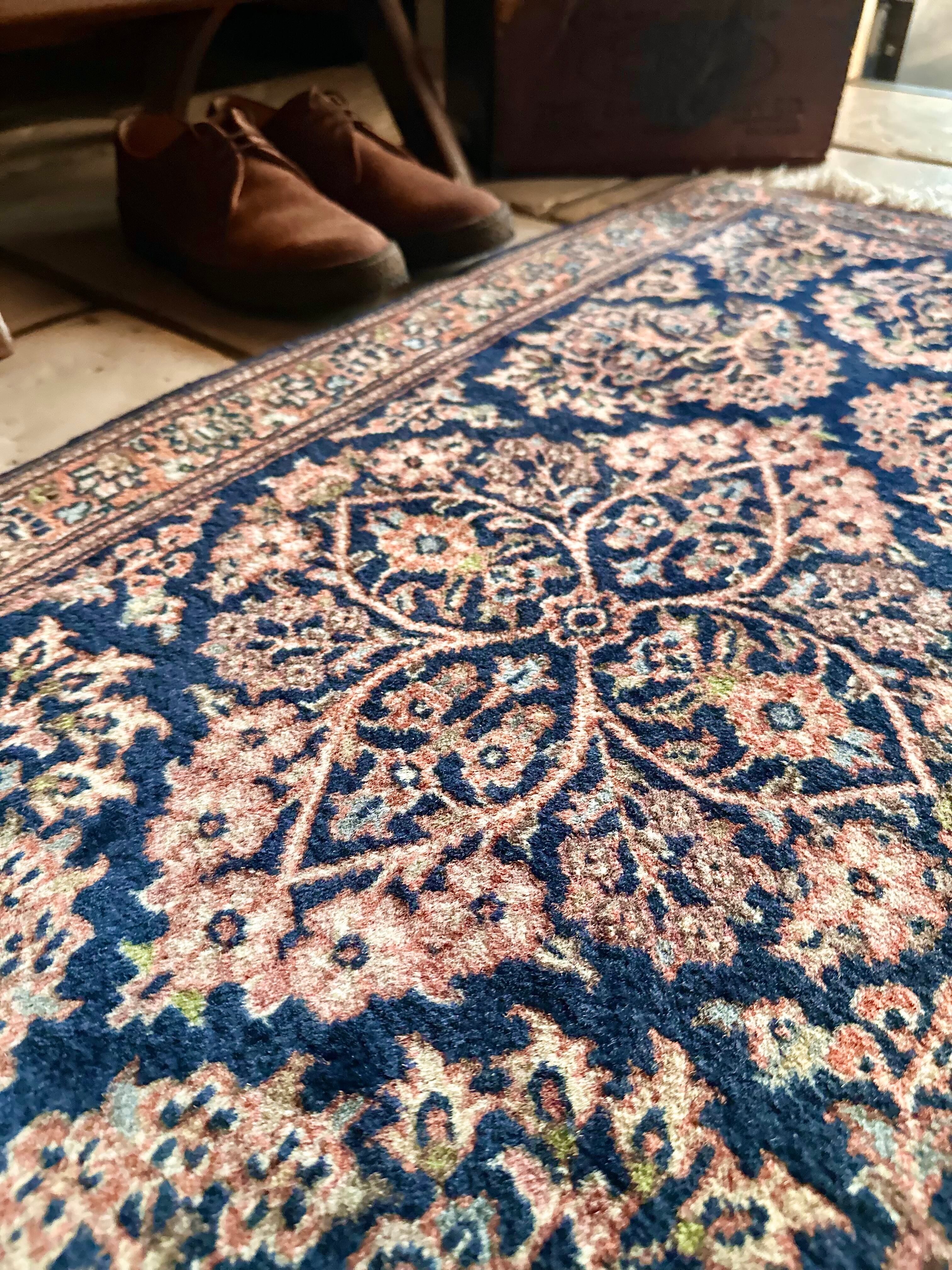 みっちりと厚手に織られたサルーク絨毯は、その丈夫さ故に欧米向けに人気があり、赤を基調としたアメリカン・サルークなる絨毯が作られていましたが、こちらもそんな丈夫な作りで踏み心地もよく、色合い的にはキッチンマットとしても汚れが目立ちにくいでしょうか。