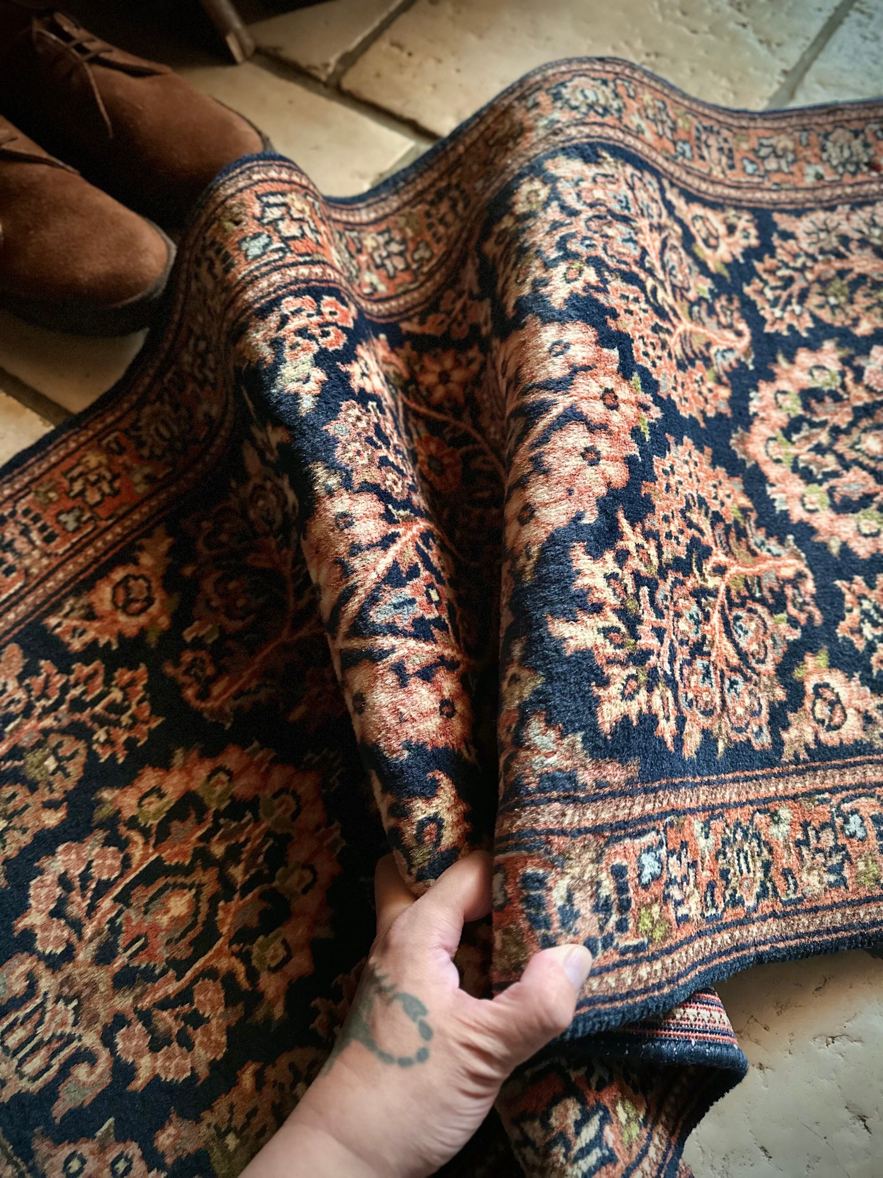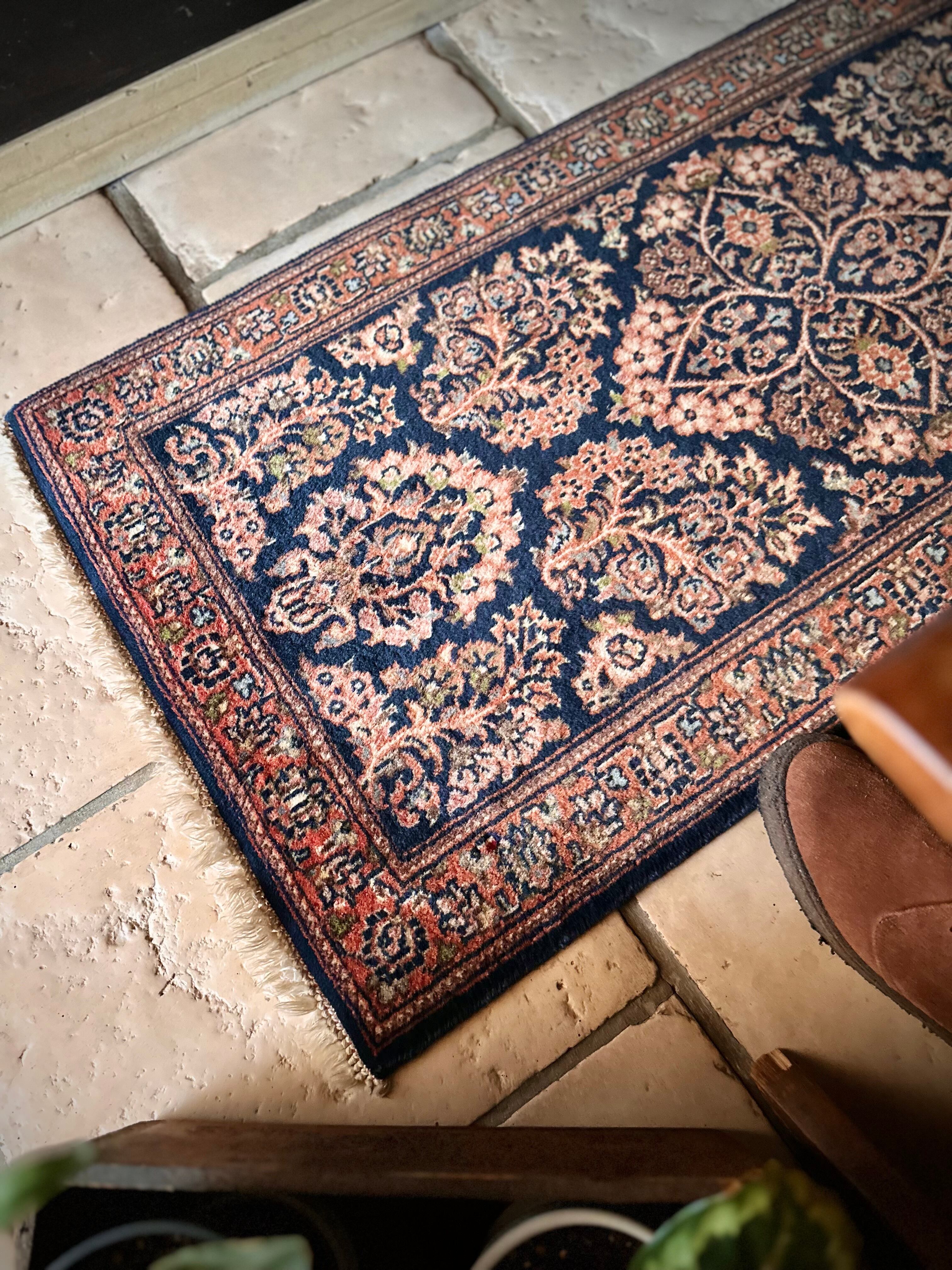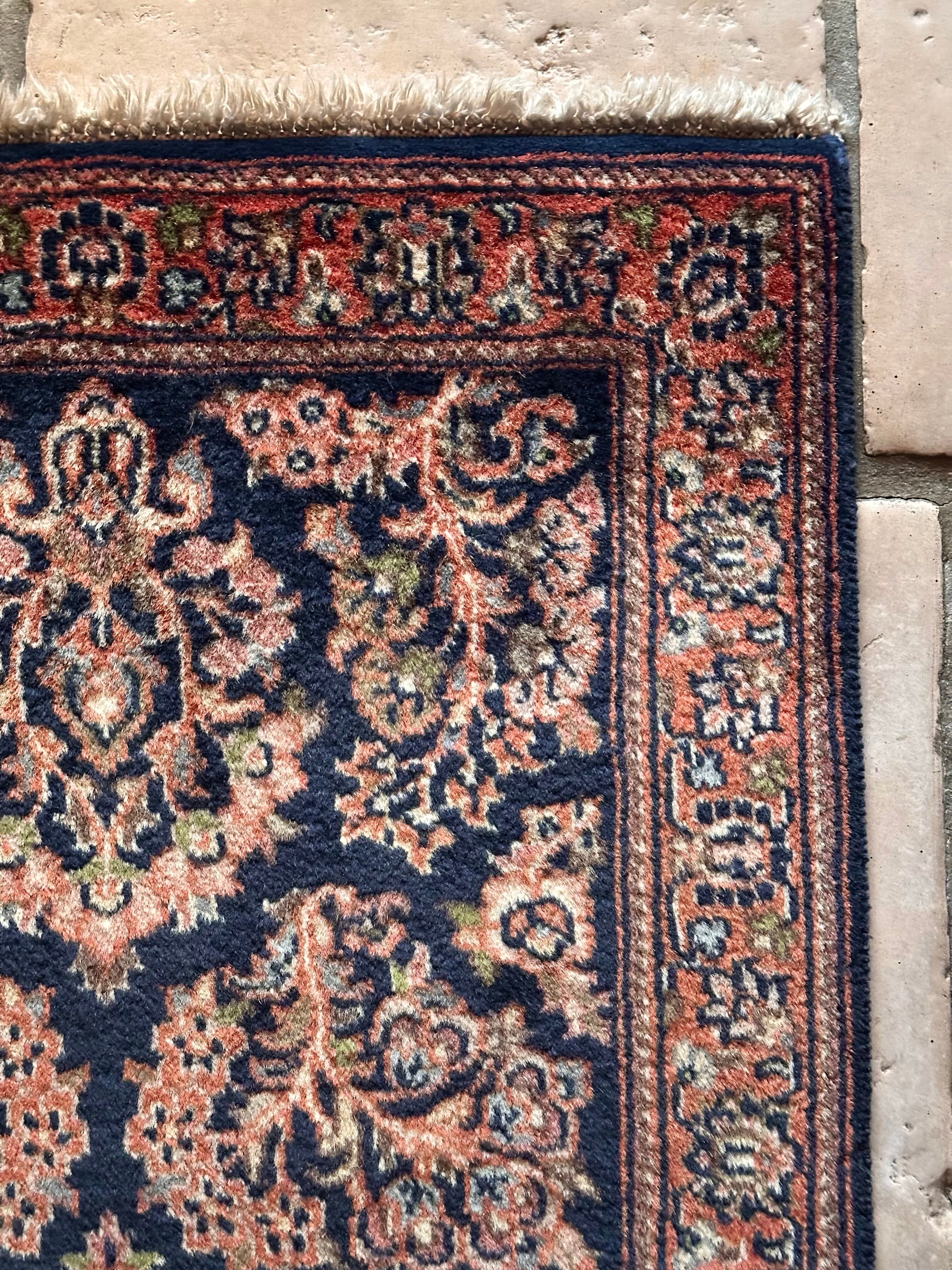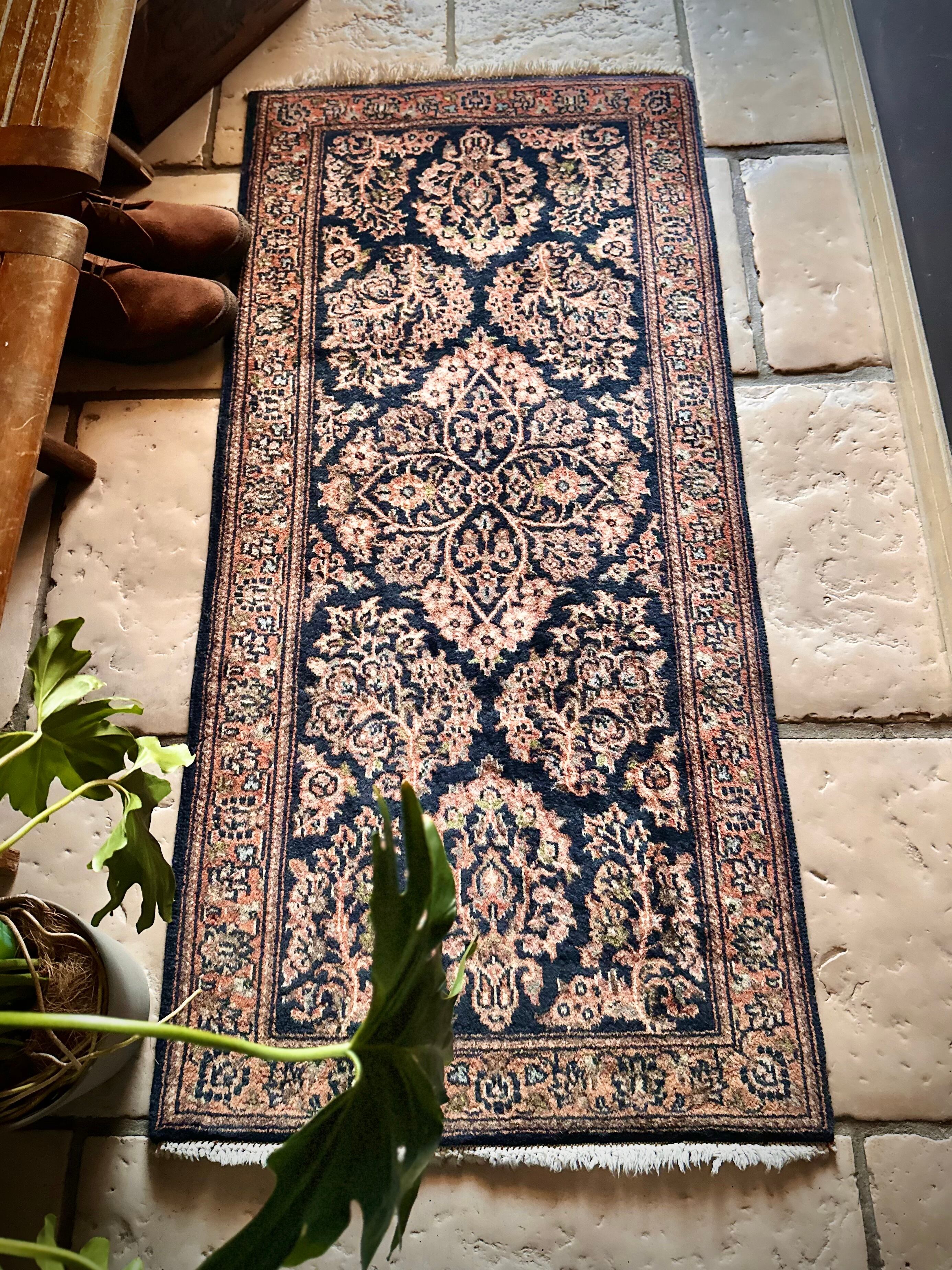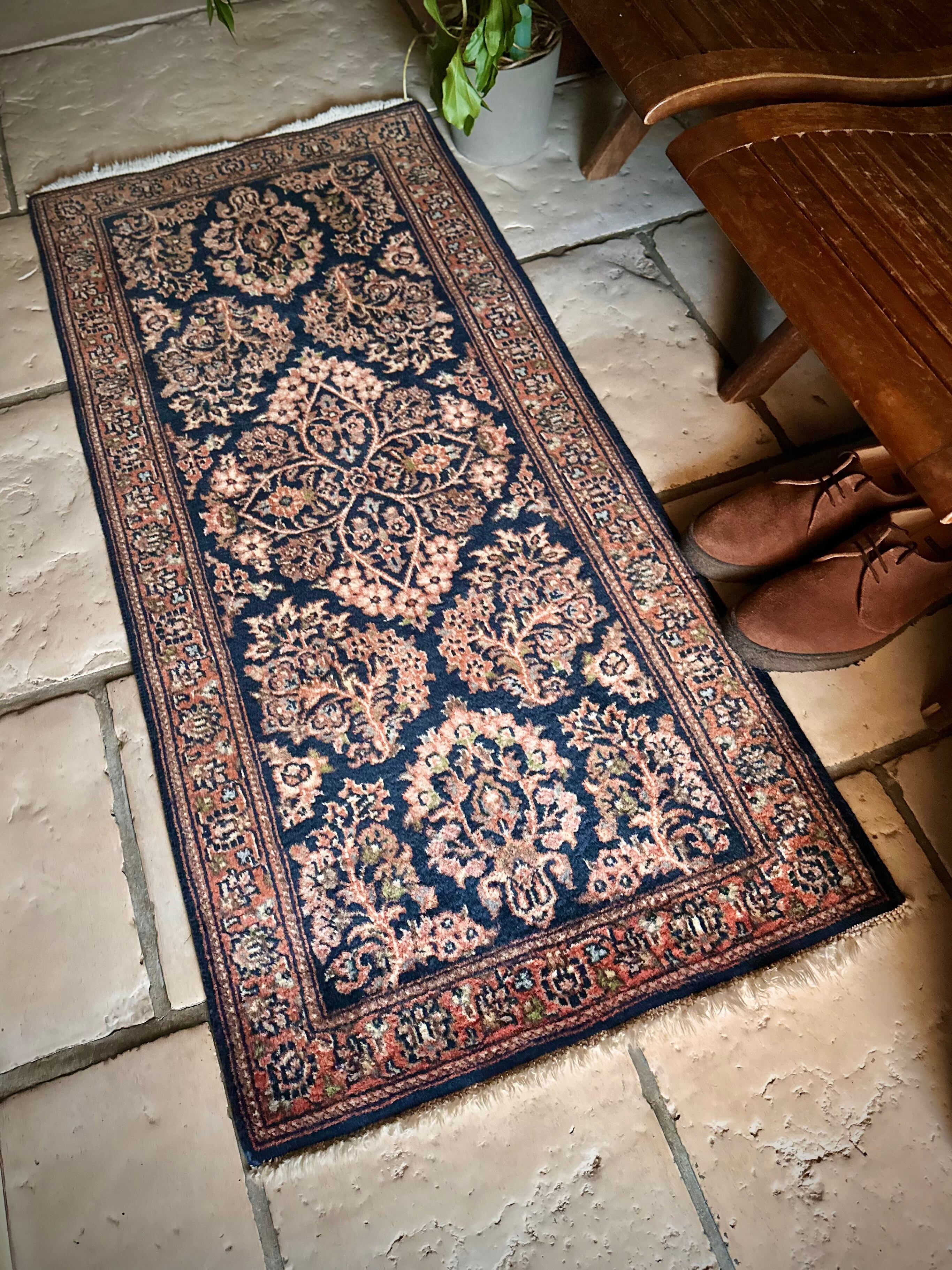 みっちりと厚手に織られたサルーク絨毯は、その丈夫さ故に欧米向けに人気があり、赤を基調としたアメリカン・サルークなる絨毯が作られていましたが、こちらもそんな丈夫な作りで踏み心地もよく、色合い的にはキッチンマットとしても汚れが目立ちにくいでしょうか。