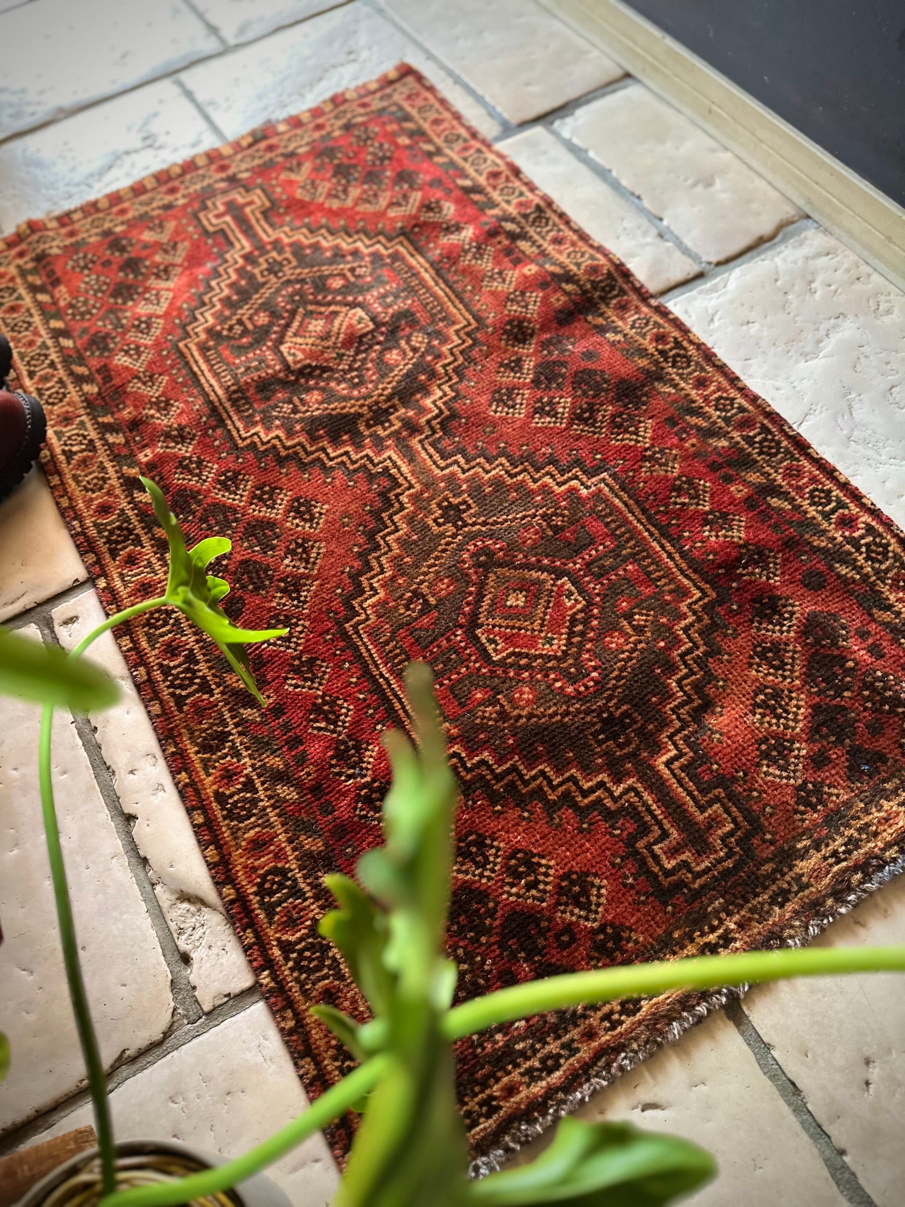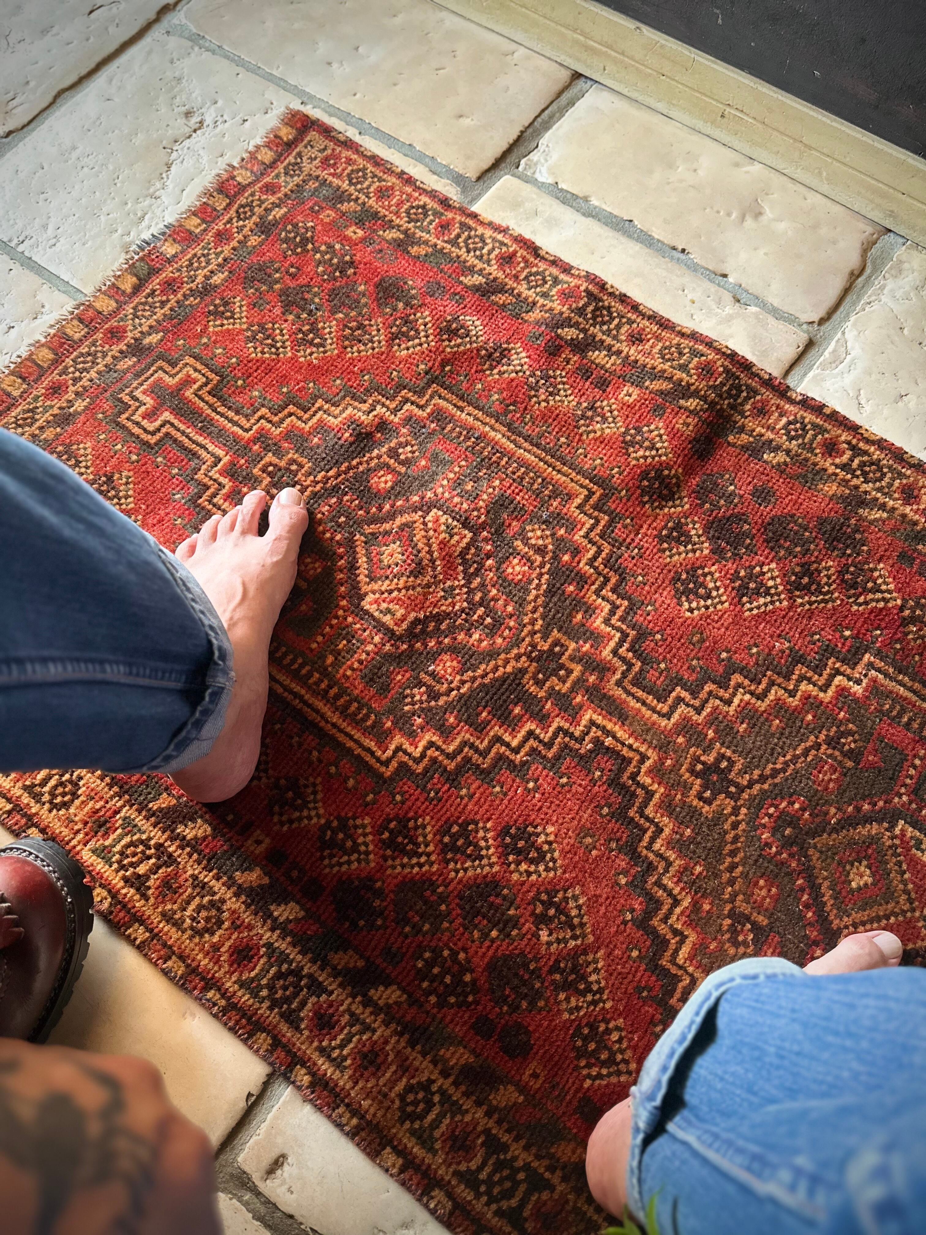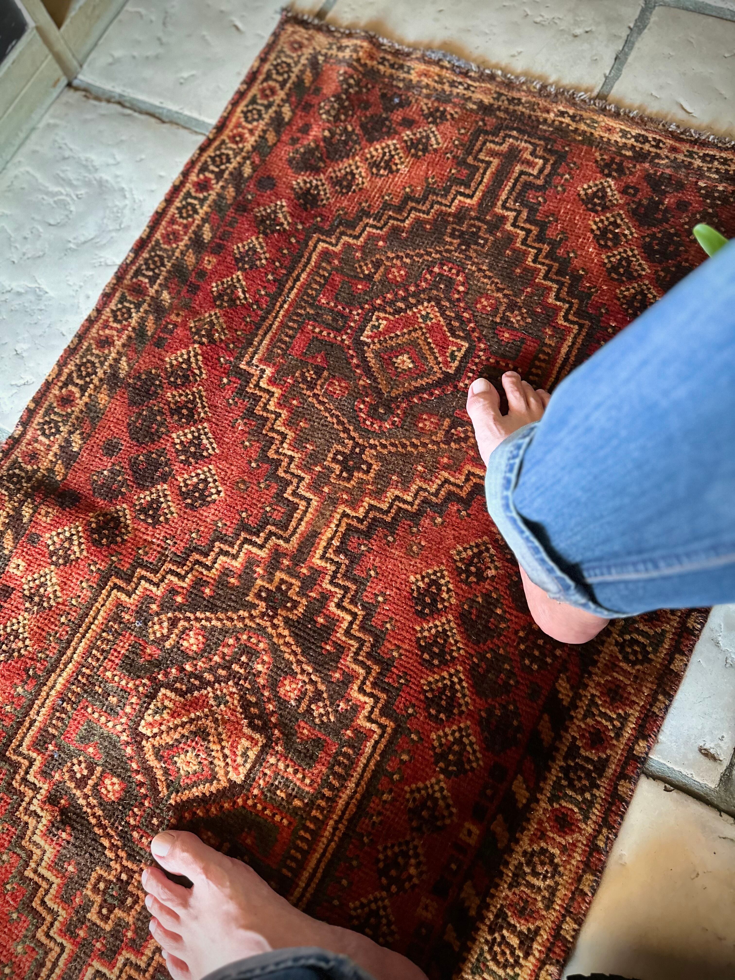 最後にラグそのものに関しては羊毛特有の匂いがあり、採寸は中央付近で計測していますが、手織りならではの歪みによる誤差や水洗いクリーニングによる縮み、また草木染めによる経年劣化の色ムラなどがありますが、それもまたヴィンテージラグの魅力かとご理解ください。