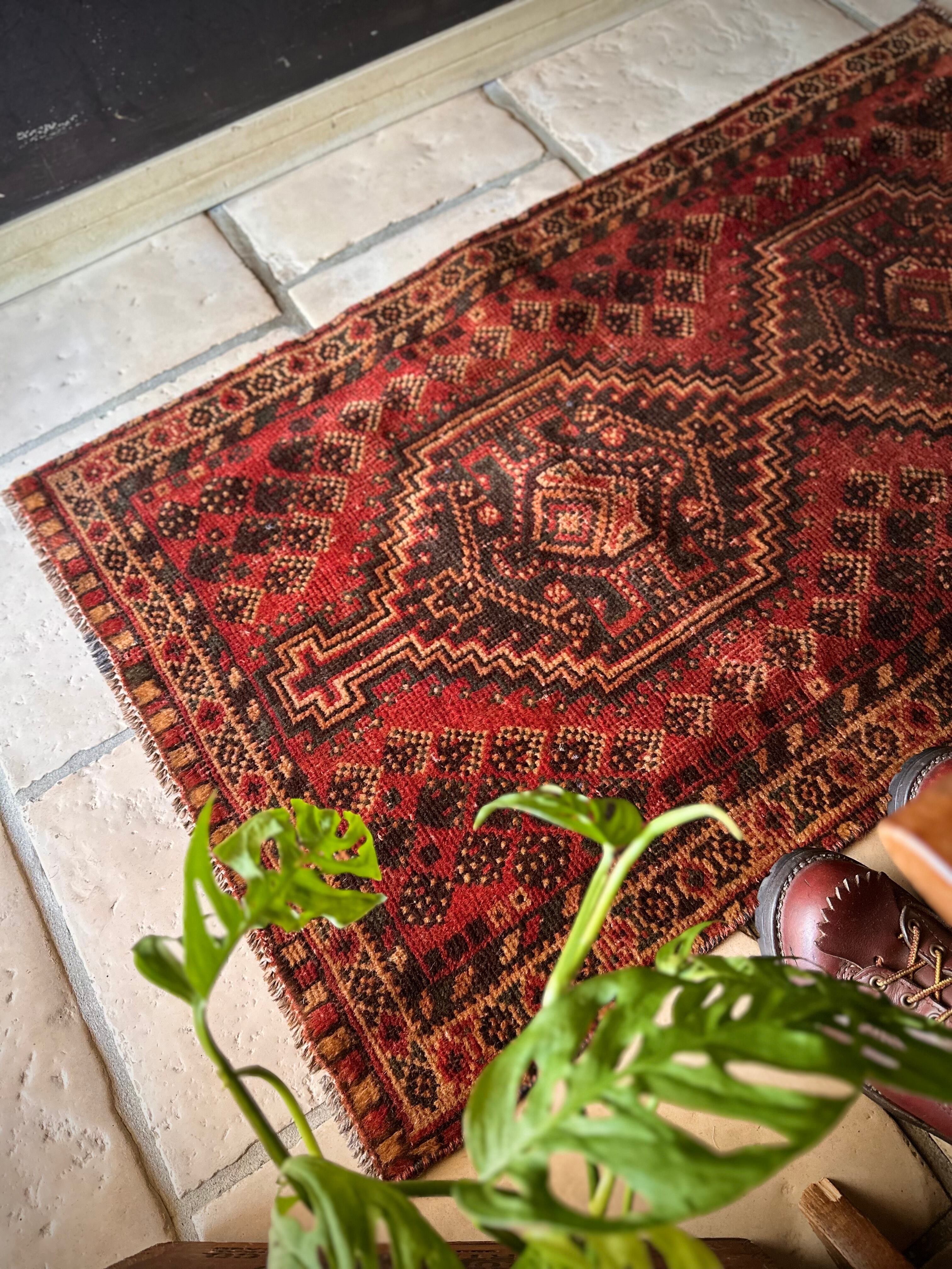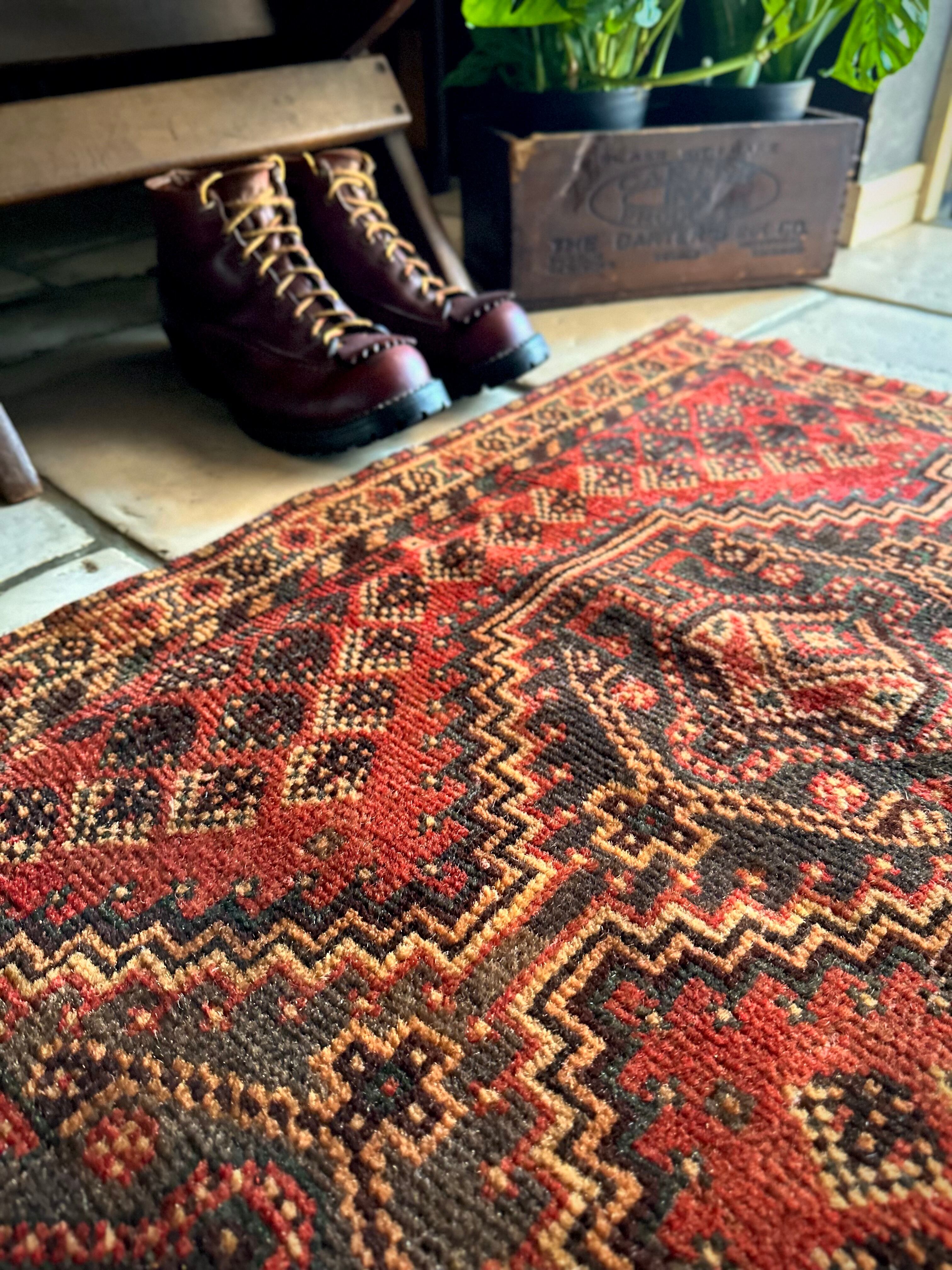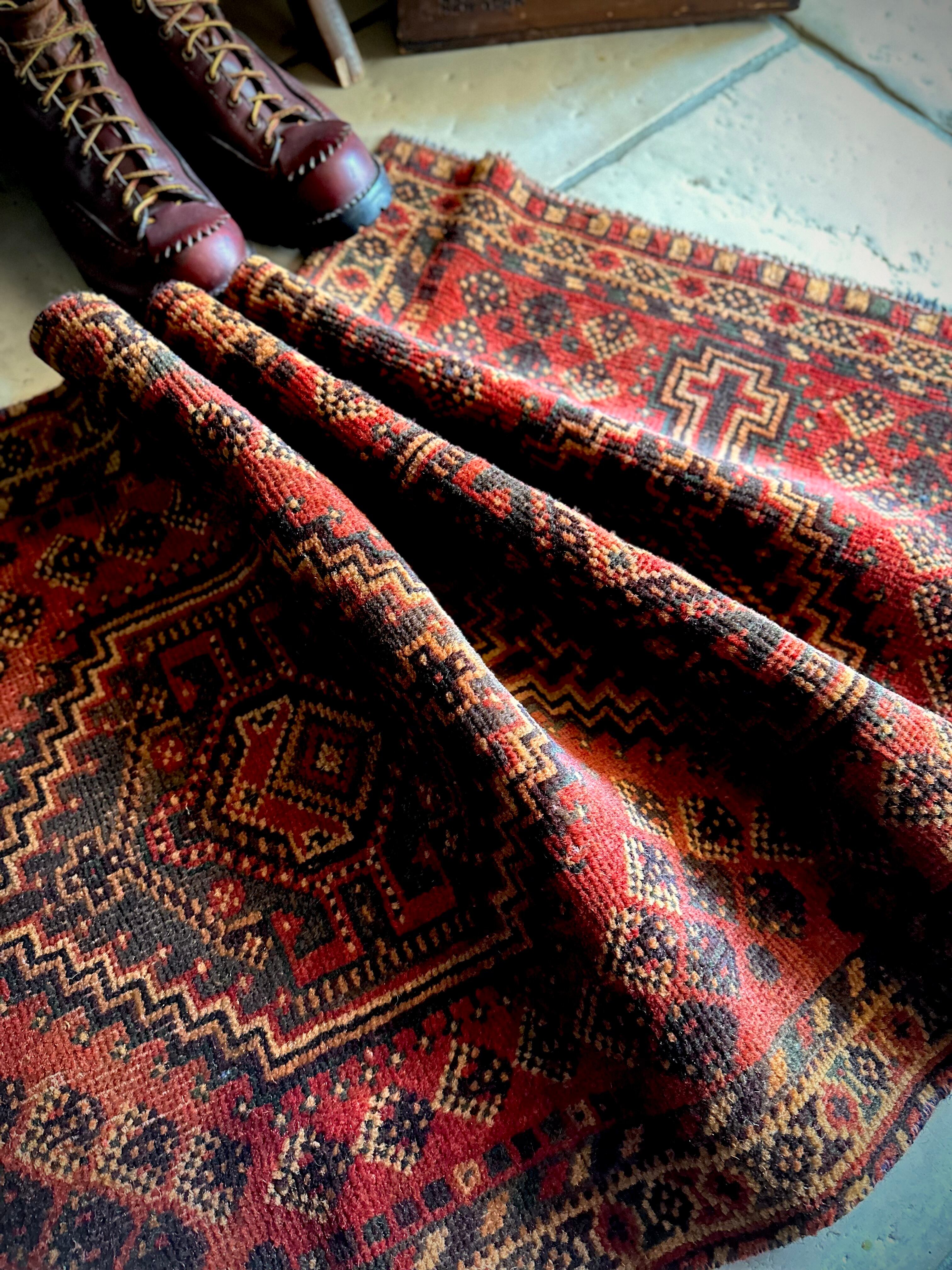 経年としては50年のヴィンテージラグらしいヤレ感はありますが、目立つ汚れやダメージにリペア箇所は見当たらないグッドなコンディションで、カシュガイならではの柔らかな質感がいいですね。