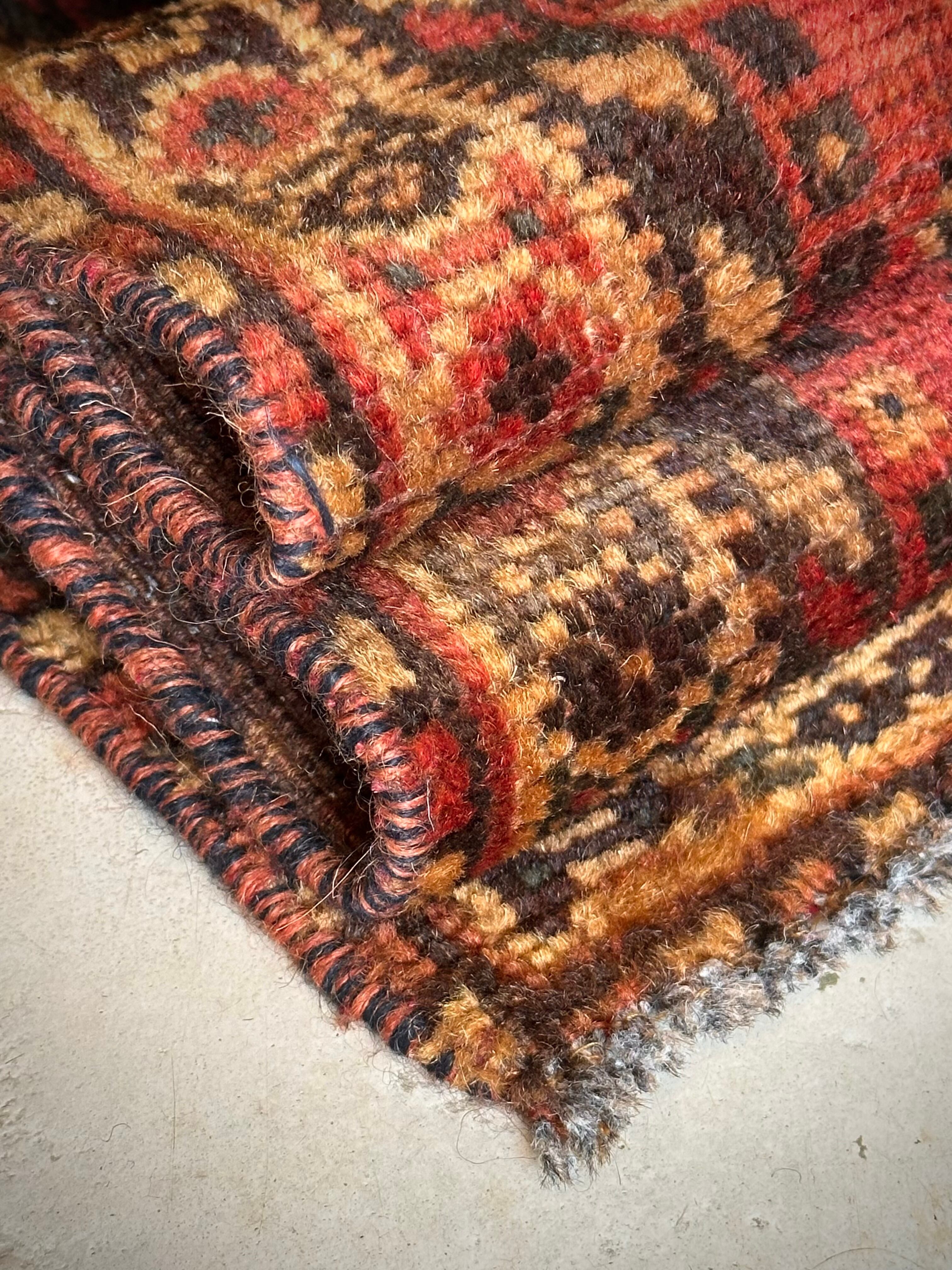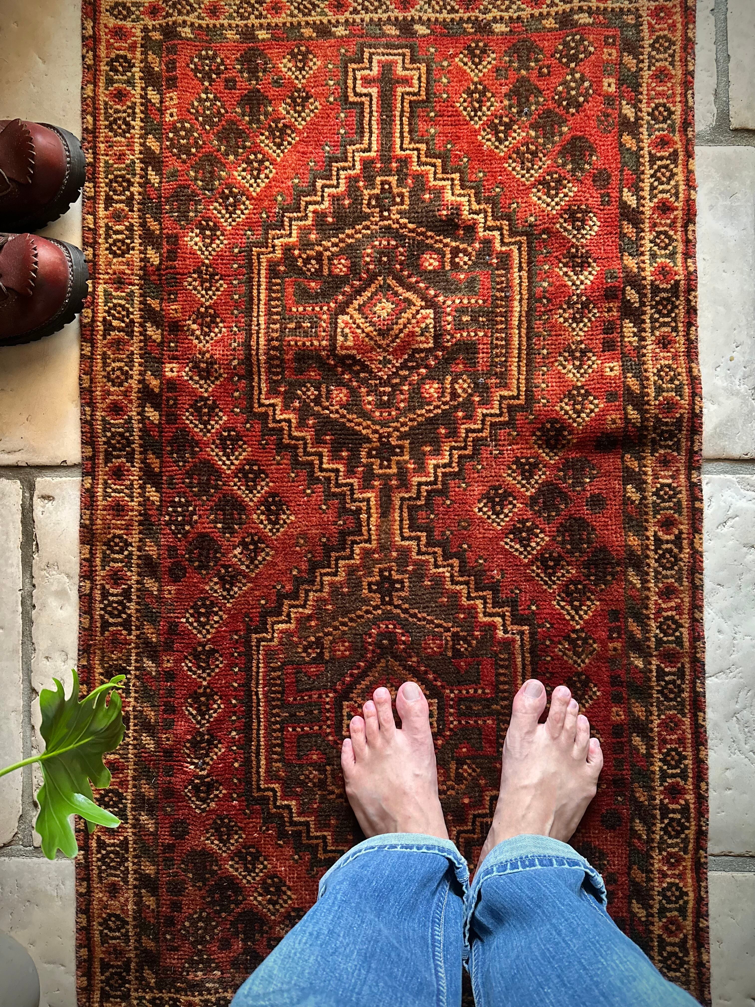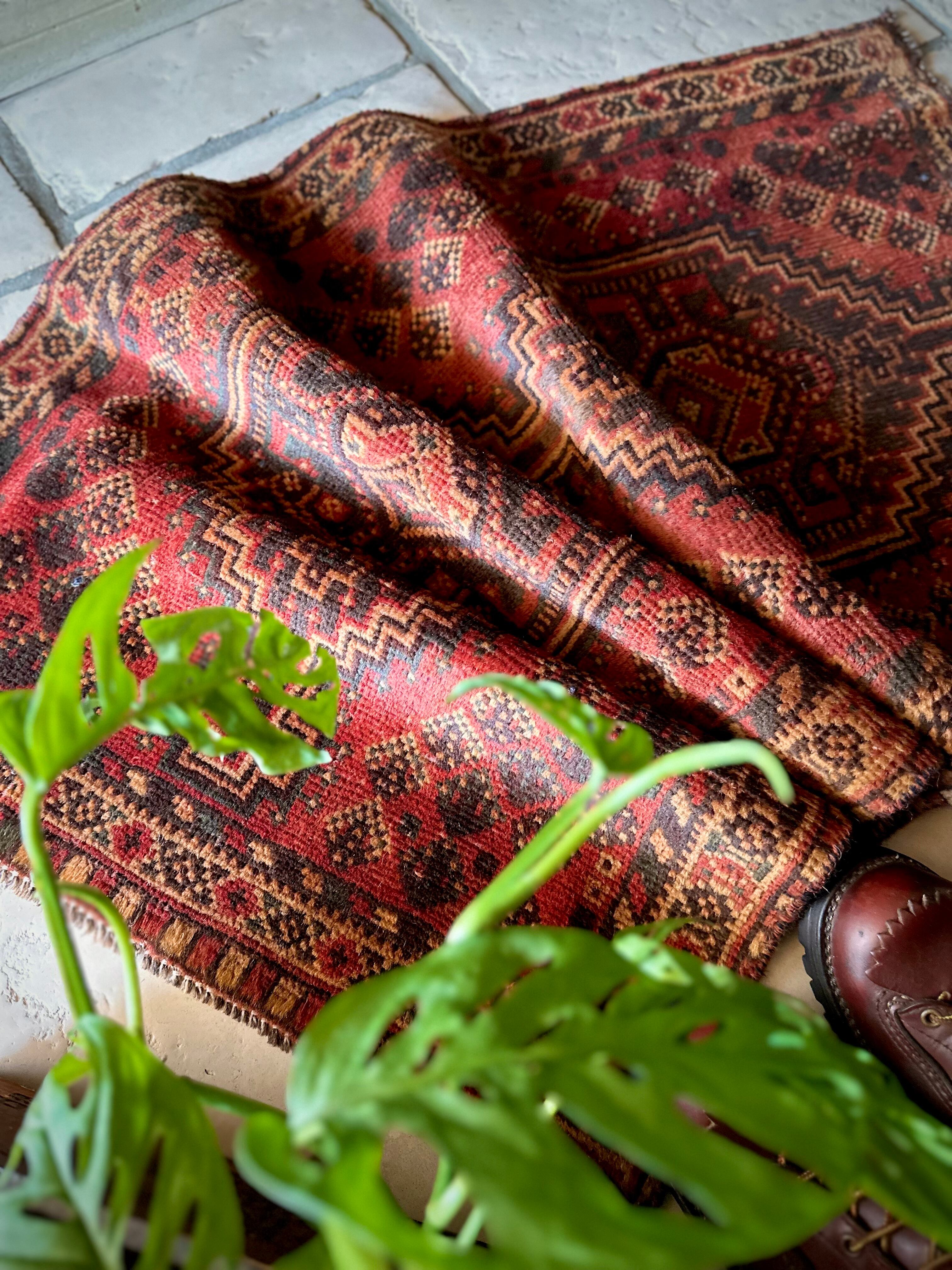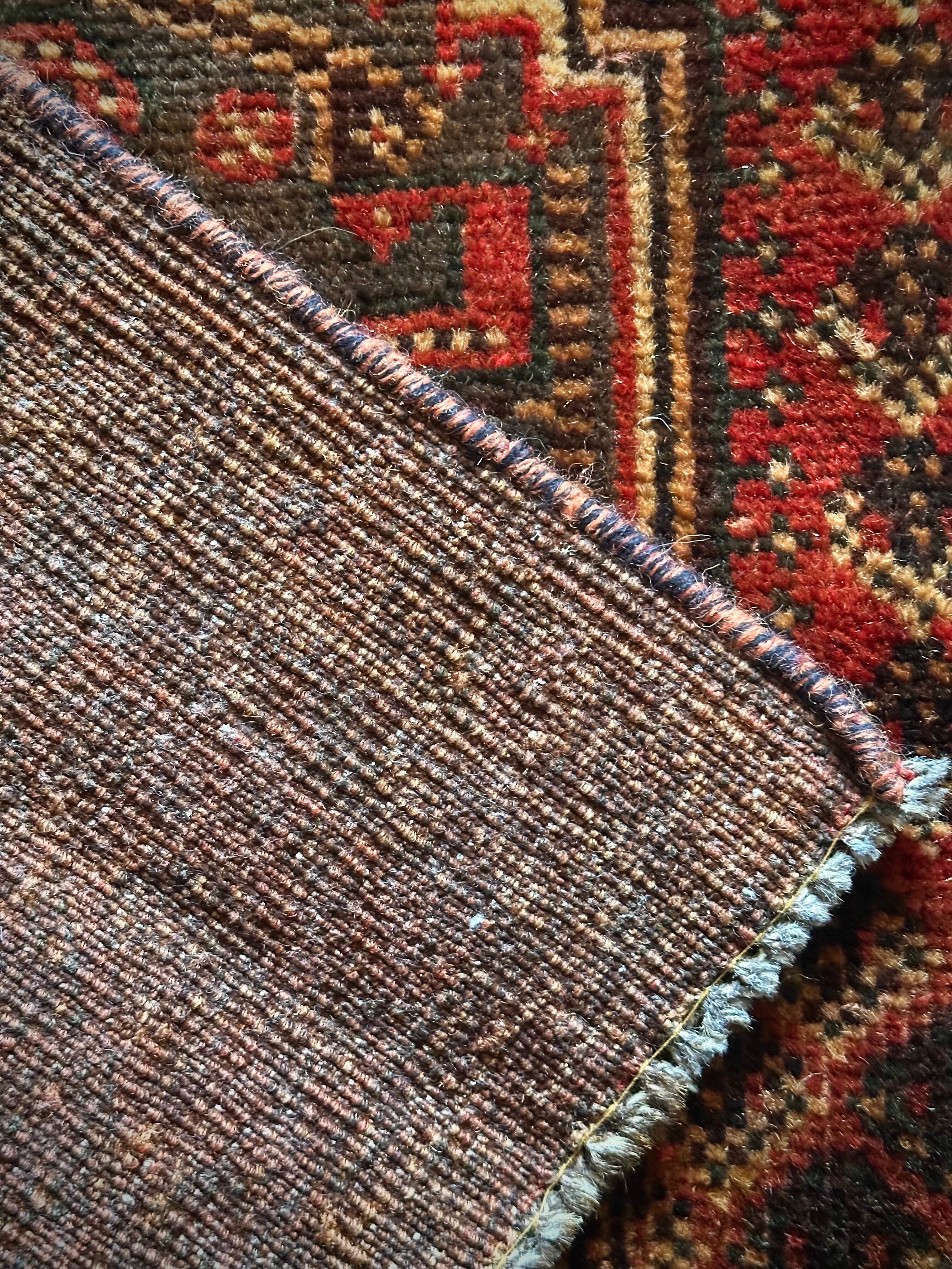 経年としては50年のヴィンテージラグらしいヤレ感はありますが、目立つ汚れやダメージにリペア箇所は見当たらないグッドなコンディションで、カシュガイならではの柔らかな質感がいいですね。