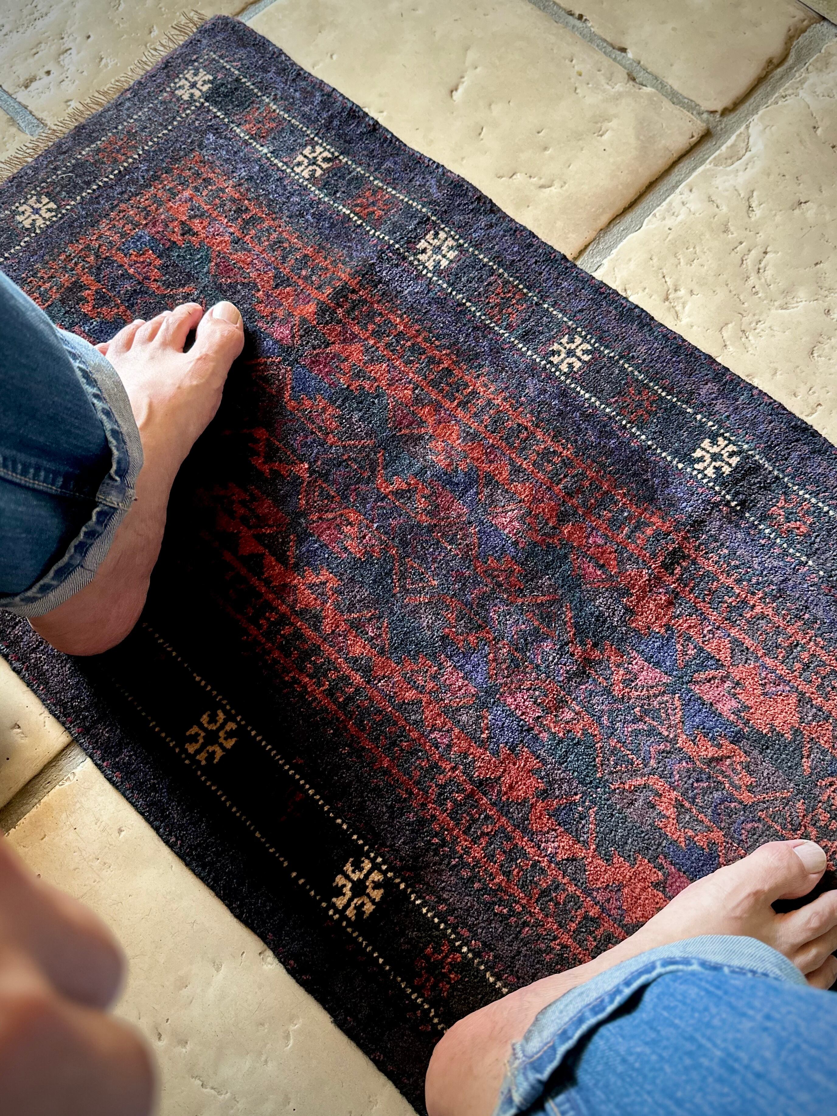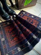 最後にラグそのものに関しては羊毛特有の匂いがあり、採寸は中央付近で計測していますが、手織りならではの歪みによる誤差や水洗いクリーニングによる縮み、また草木染めによる経年劣化の色ムラなどがありますが、それもまたヴィンテージラグの魅力かとご理解ください。