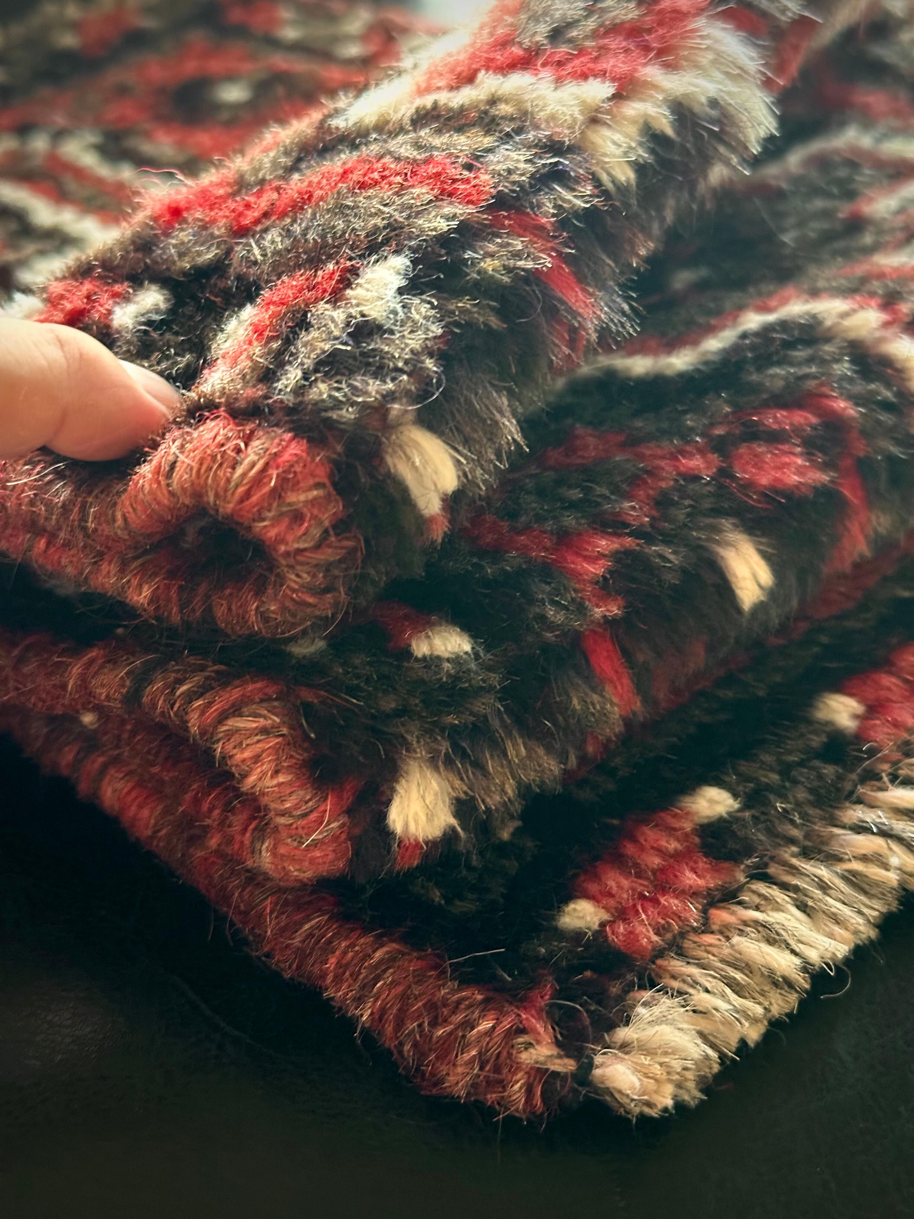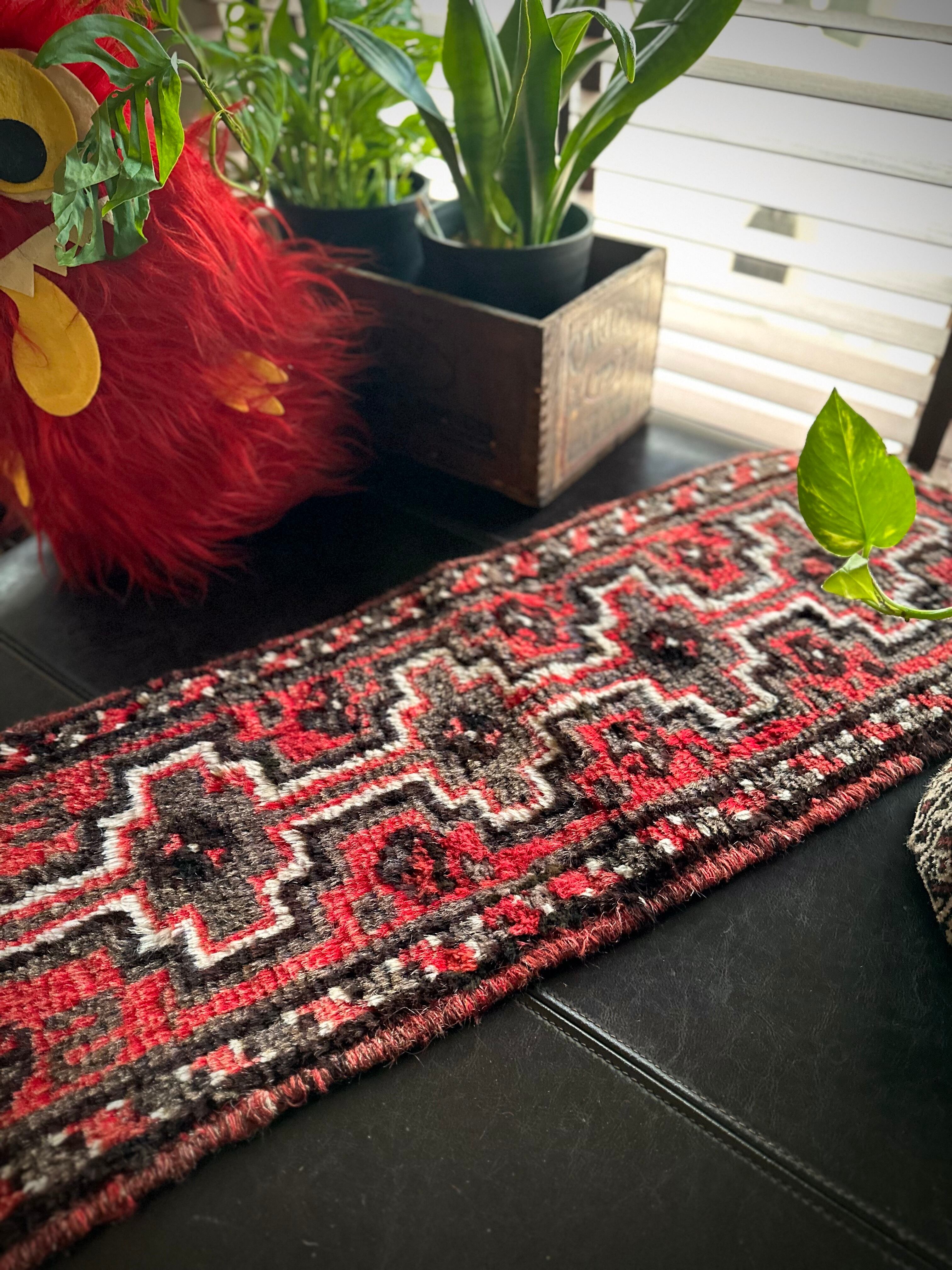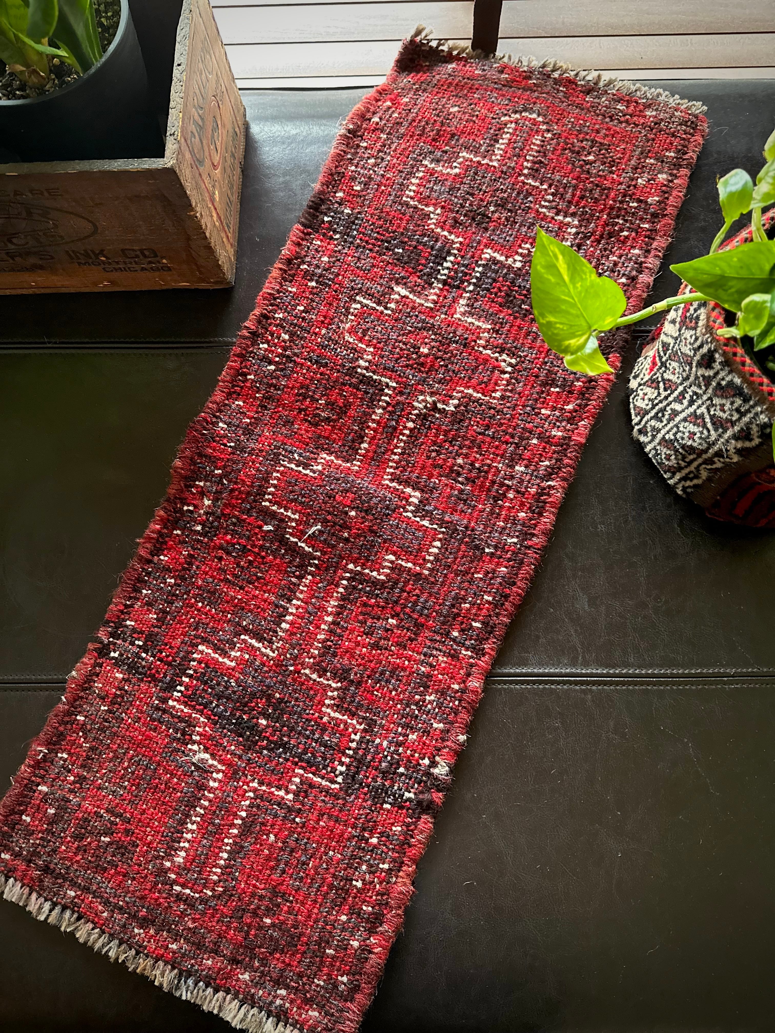 やや大振りなミニランナーとも呼べるサイズ感が珍しく、小さいだけにいろんな使い方が楽しめる1枚で、鉢置きや小物置きとしてもアクセントが効いていて、カシュガイならではの毛足の長いフサフサとしたパイルが心地よく、ちょっとしたプレゼントにも最適でしょうか。