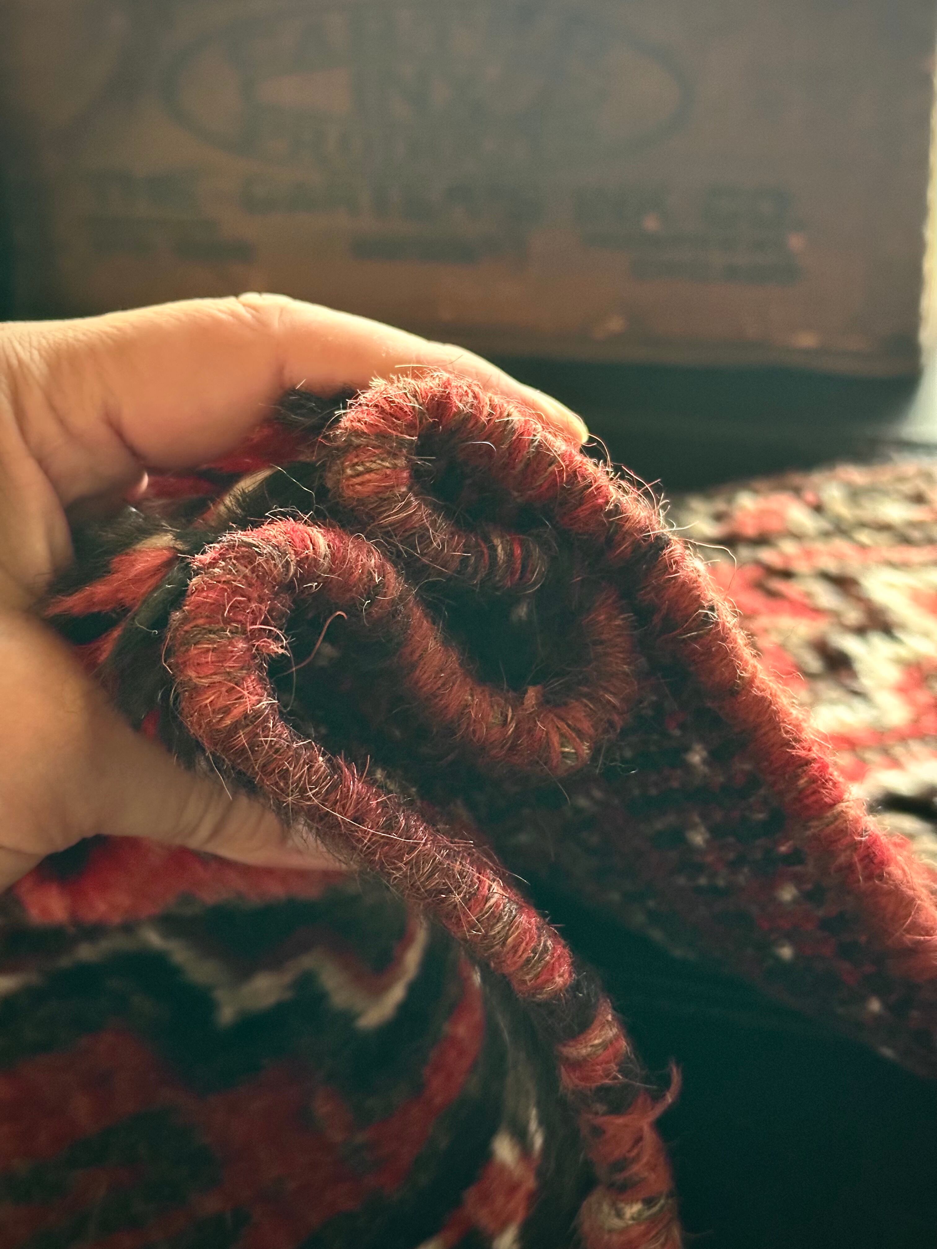 最後にラグそのものに関しては羊毛特有の匂いがあり、採寸は中央付近で計測していますが、手織りならではの歪みによる誤差や水洗いクリーニングによる縮み、また草木染めによる経年劣化の色ムラなどがありますが、それもまたヴィンテージラグの魅力かとご理解ください。