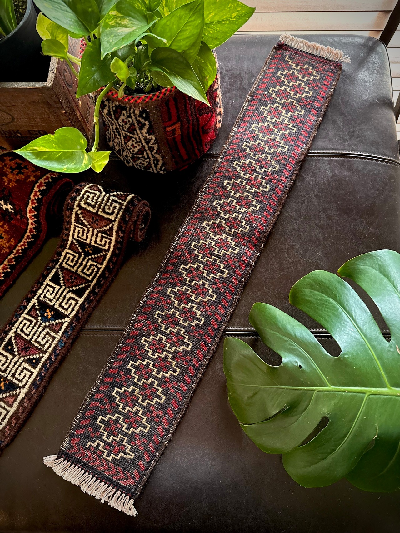 その細長い形状からミニランナーとも呼称されますが、小さいだけにいろんな使い方が楽しめる1枚で、我が家でもテーブルにちょこんと敷いてコースター代わりにしたり、鉢置きや小物置きとしてもアクセントが効いていて、ちょっとしたプレゼントにも最適でしょうか。