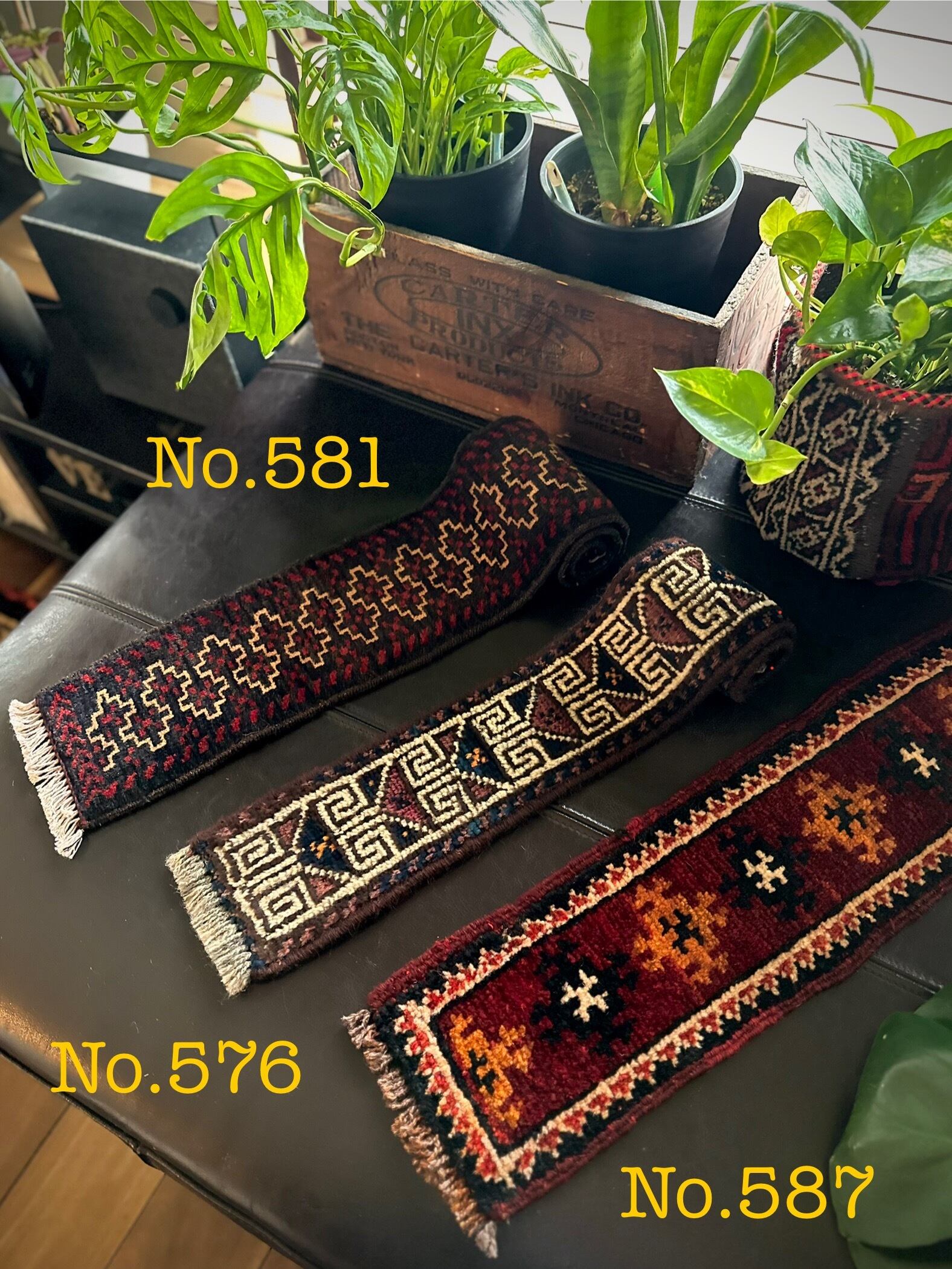 最後にラグそのものに関しては羊毛特有の匂いがあり、採寸は中央付近で計測していますが、手織りならではの歪みによる誤差や水洗いクリーニングによる縮み、また草木染めによる経年劣化の色ムラなどがありますが、それもまたヴィンテージラグの魅力かとご理解ください。