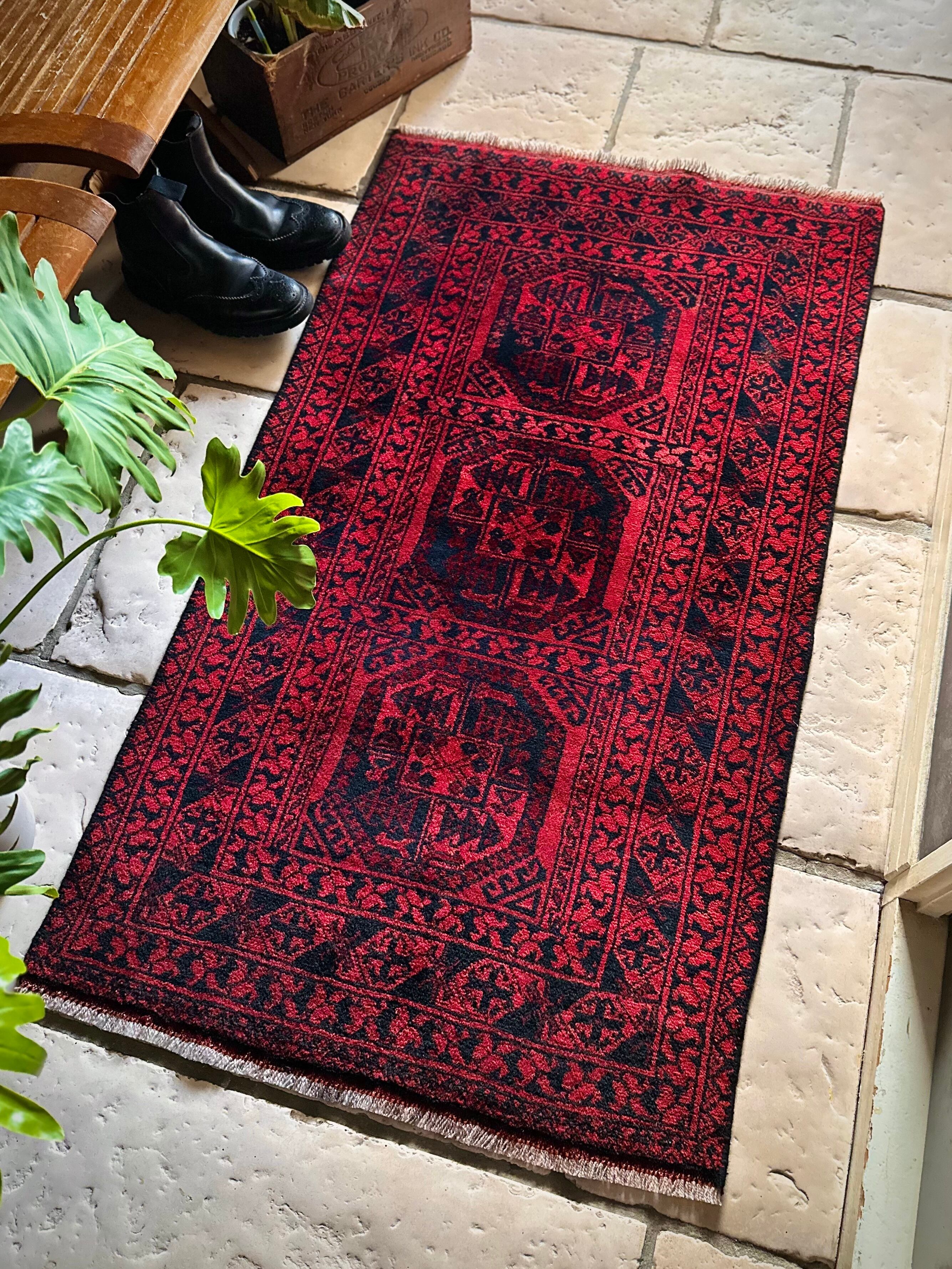 ブラック&レッドのシンプルなカラーリングながらも、どこか力強さを感じるエルサリ独特の紋様ですが、こちら小さな玄関マットサイズになっても貫禄ありますよと、みっちりと分厚く織られた様は手抜かりなく、短めのパイルはサラッとしていて安心感すら覚えます。