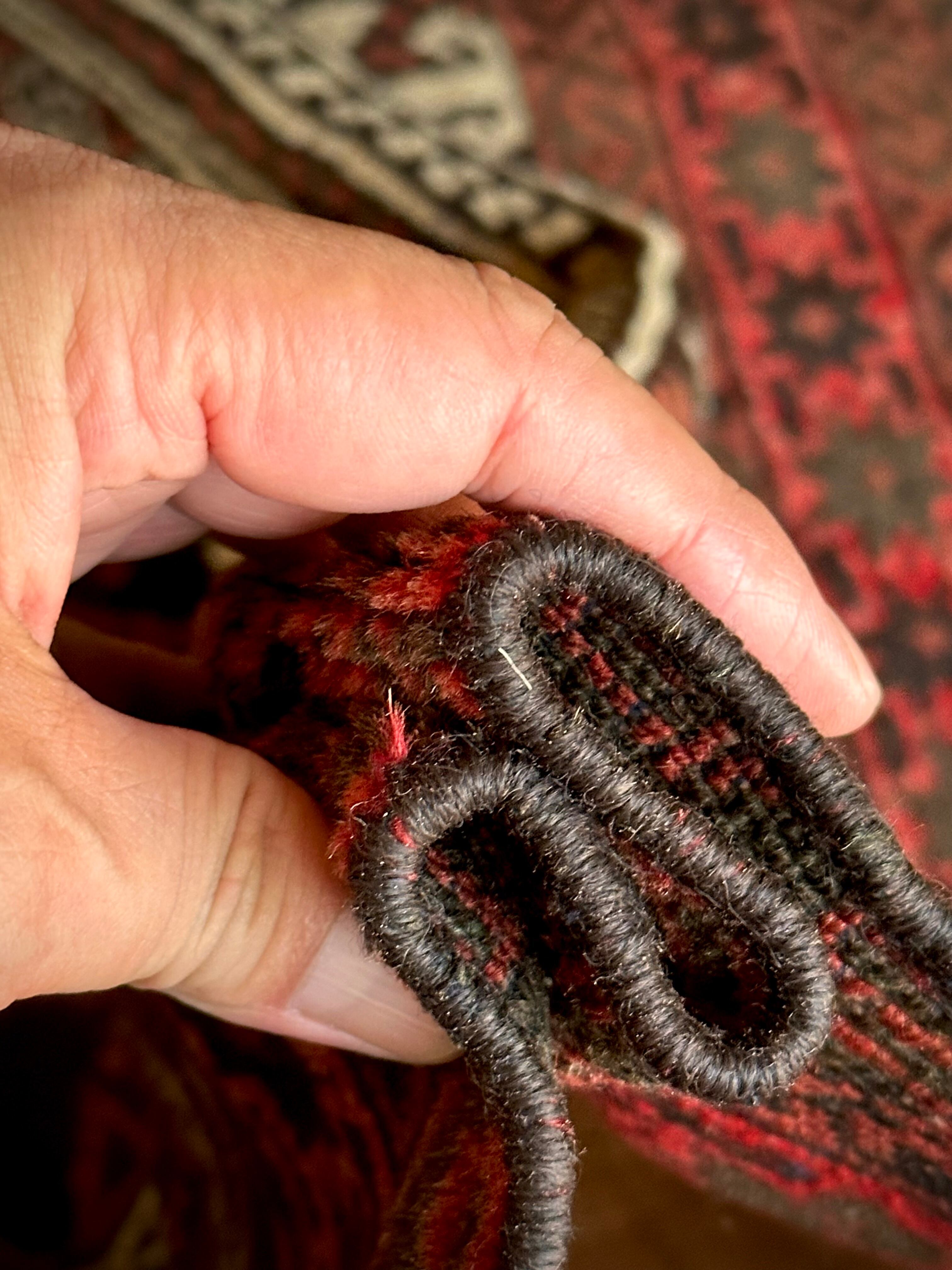 最後にラグそのものに関しては羊毛特有の匂いがあり、採寸は中央付近で計測していますが、手織りならではの歪みによる誤差や水洗いクリーニングによる縮み、また草木染めによる経年劣化の色ムラなどがありますが、それもまたヴィンテージラグの魅力かとご理解ください。