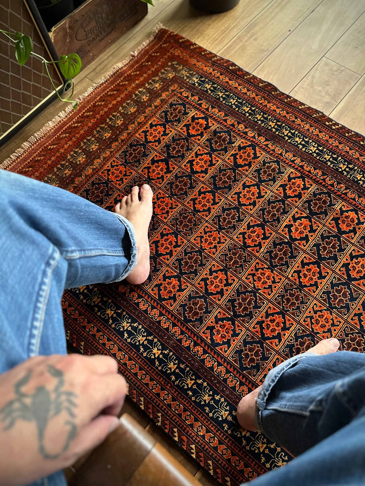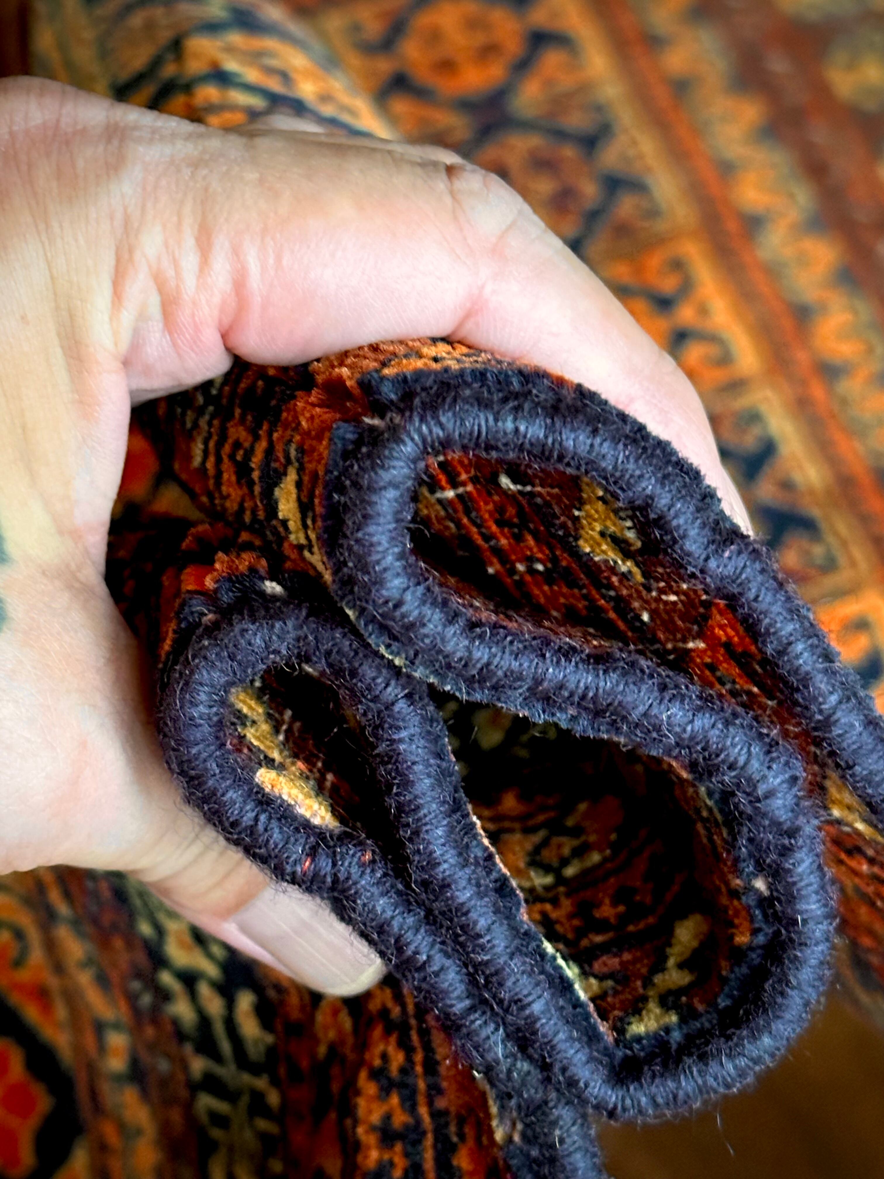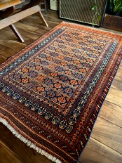 最後にラグそのものに関しては羊毛特有の匂いがあり、採寸は中央付近で計測していますが、手織りならではの歪みによる誤差や水洗いクリーニングによる縮み、また草木染めによる経年劣化の色ムラなどがありますが、それもまたヴィンテージラグの魅力かとご理解ください。