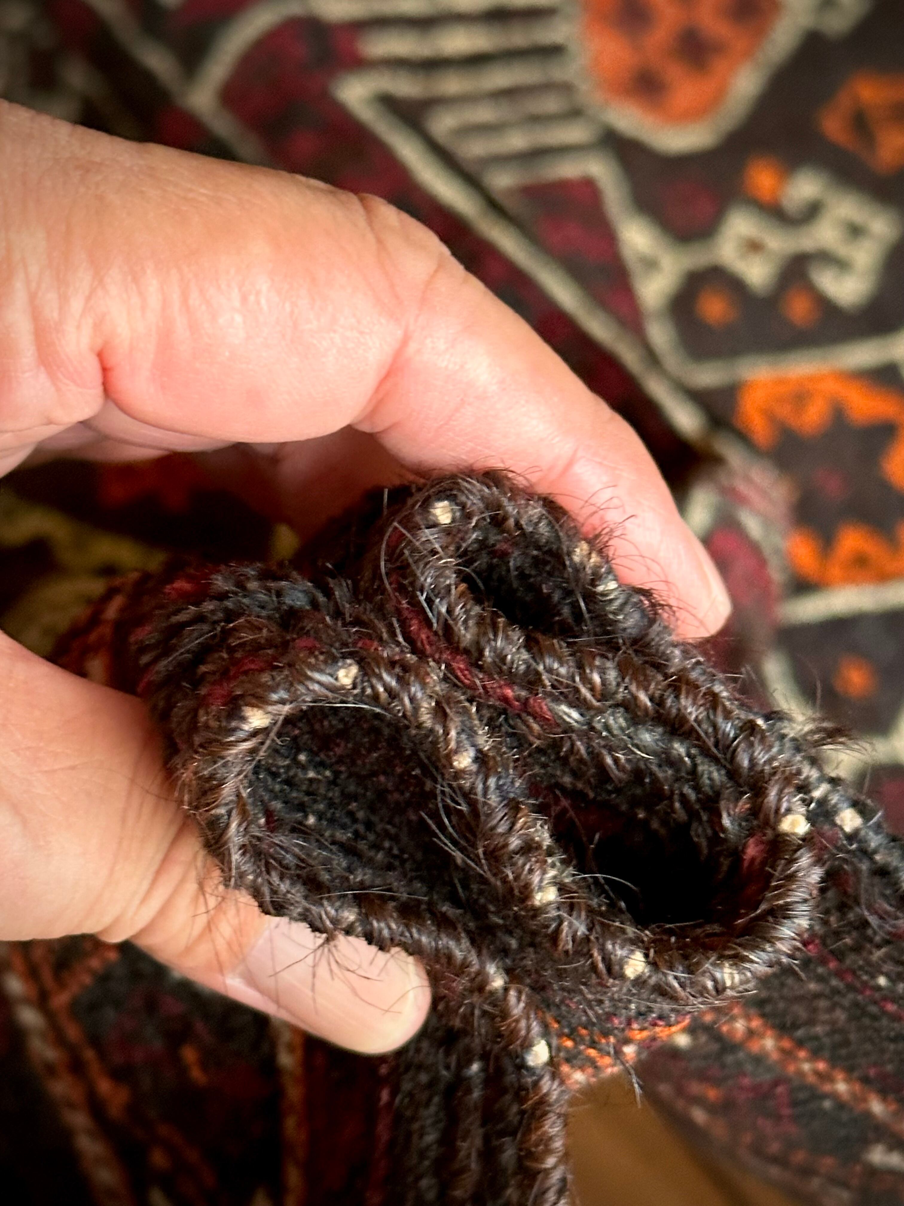 最後にラグそのものに関しては羊毛特有の匂いがあり、採寸は中央付近で計測していますが、手織りならではの歪みによる誤差や水洗いクリーニングによる縮み、また草木染めによる経年劣化の色ムラなどがありますが、それもまたヴィンテージラグの魅力かとご理解ください。