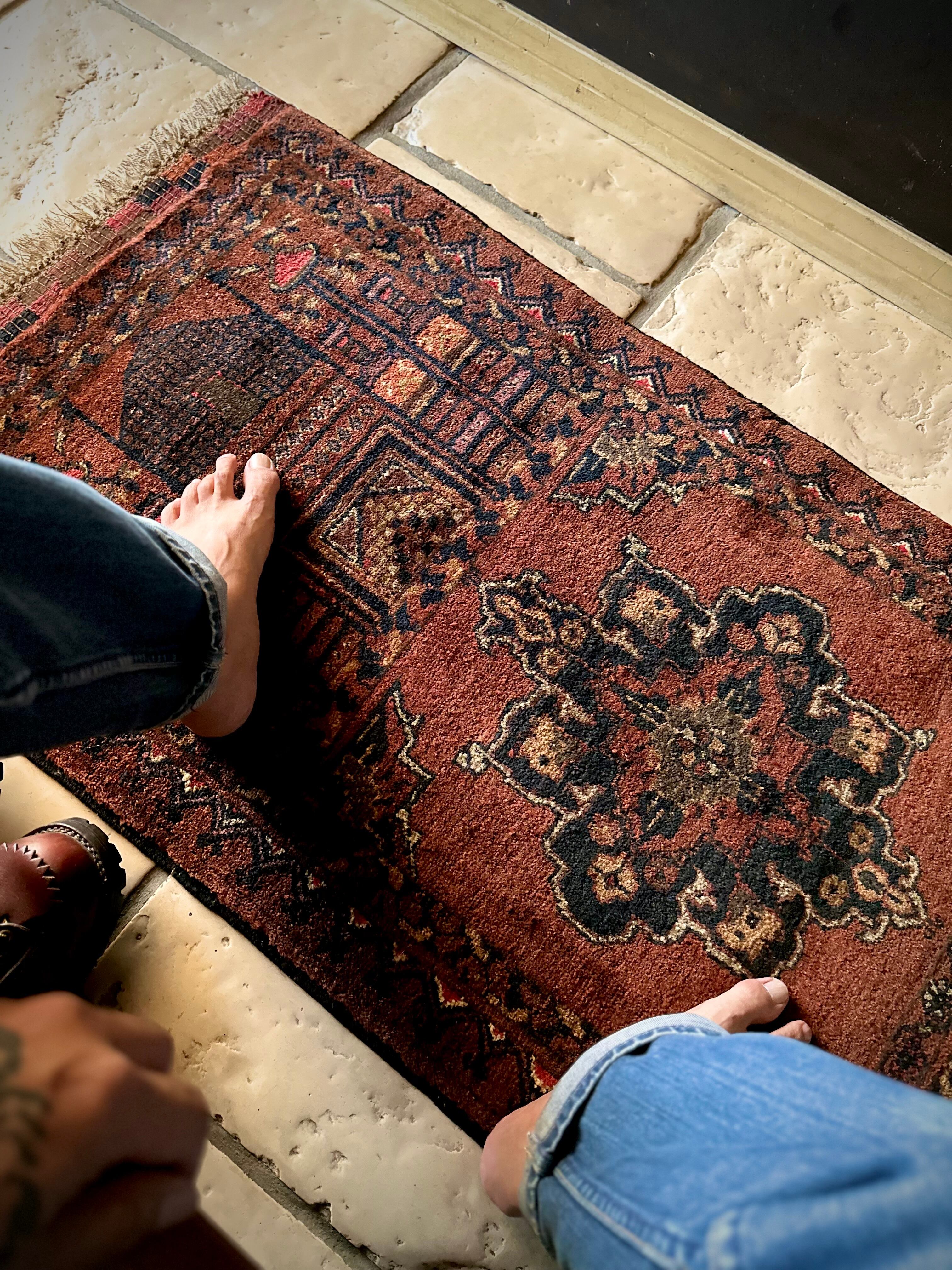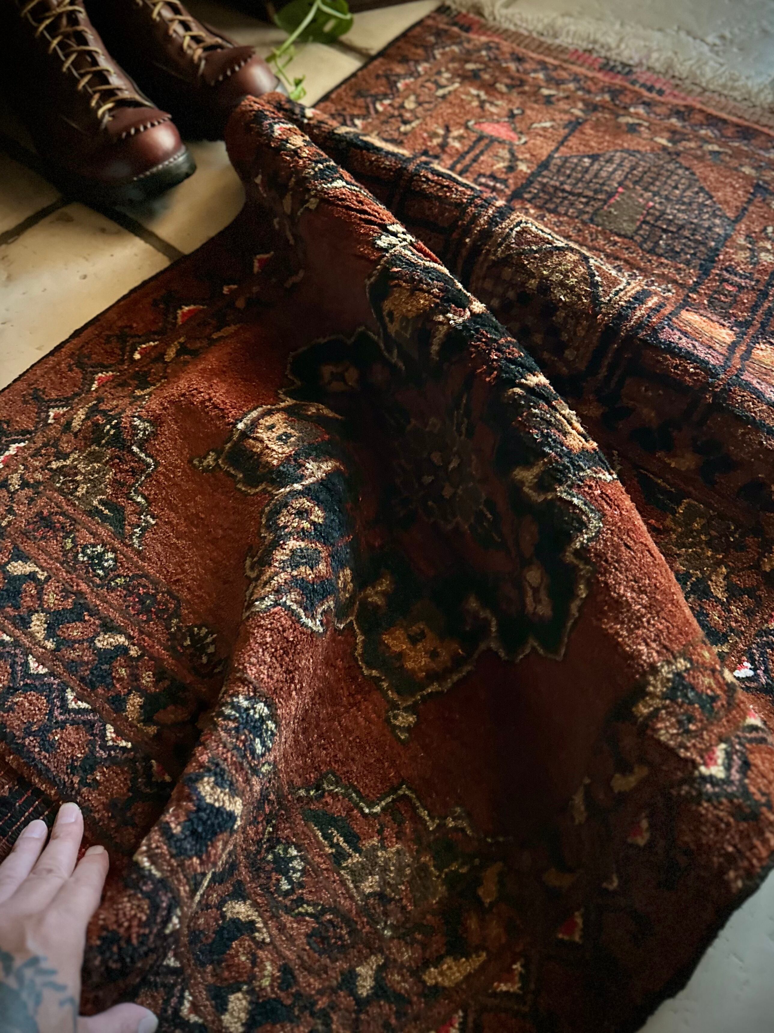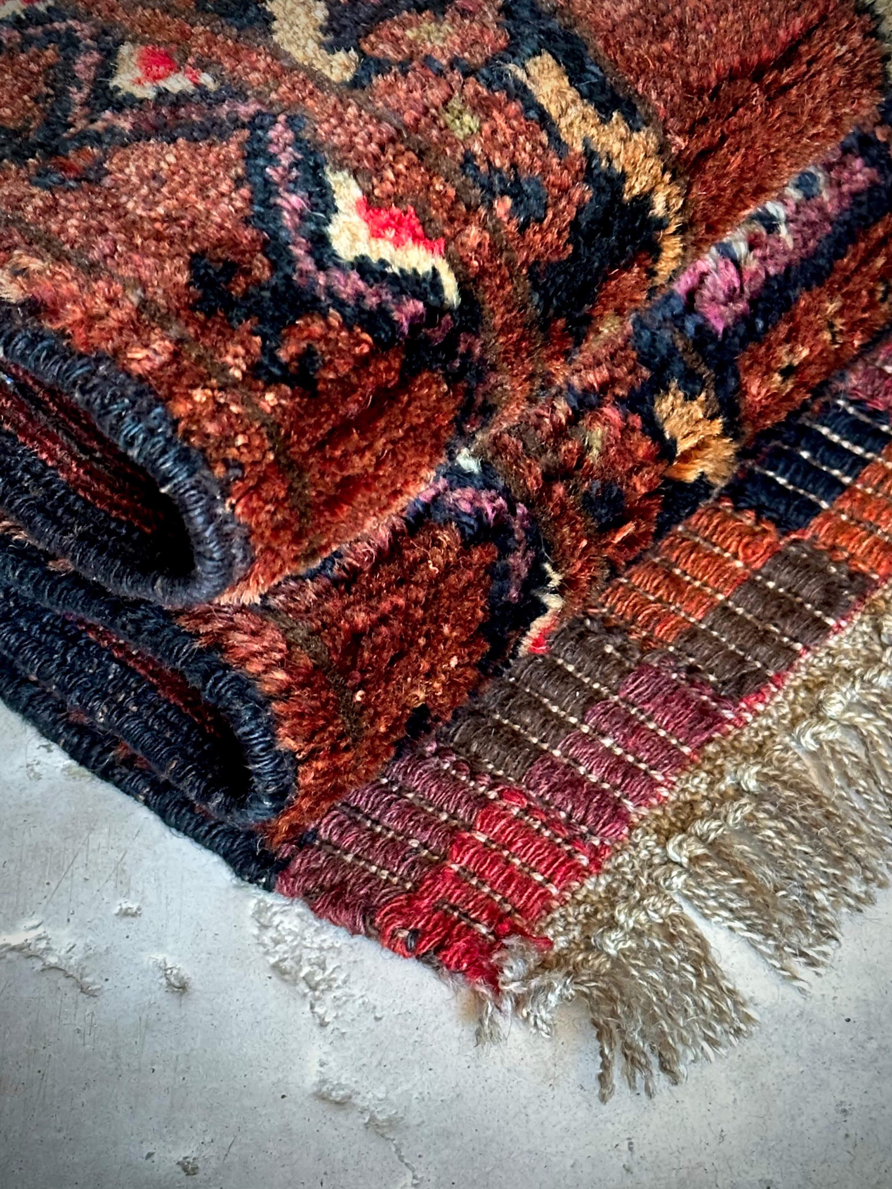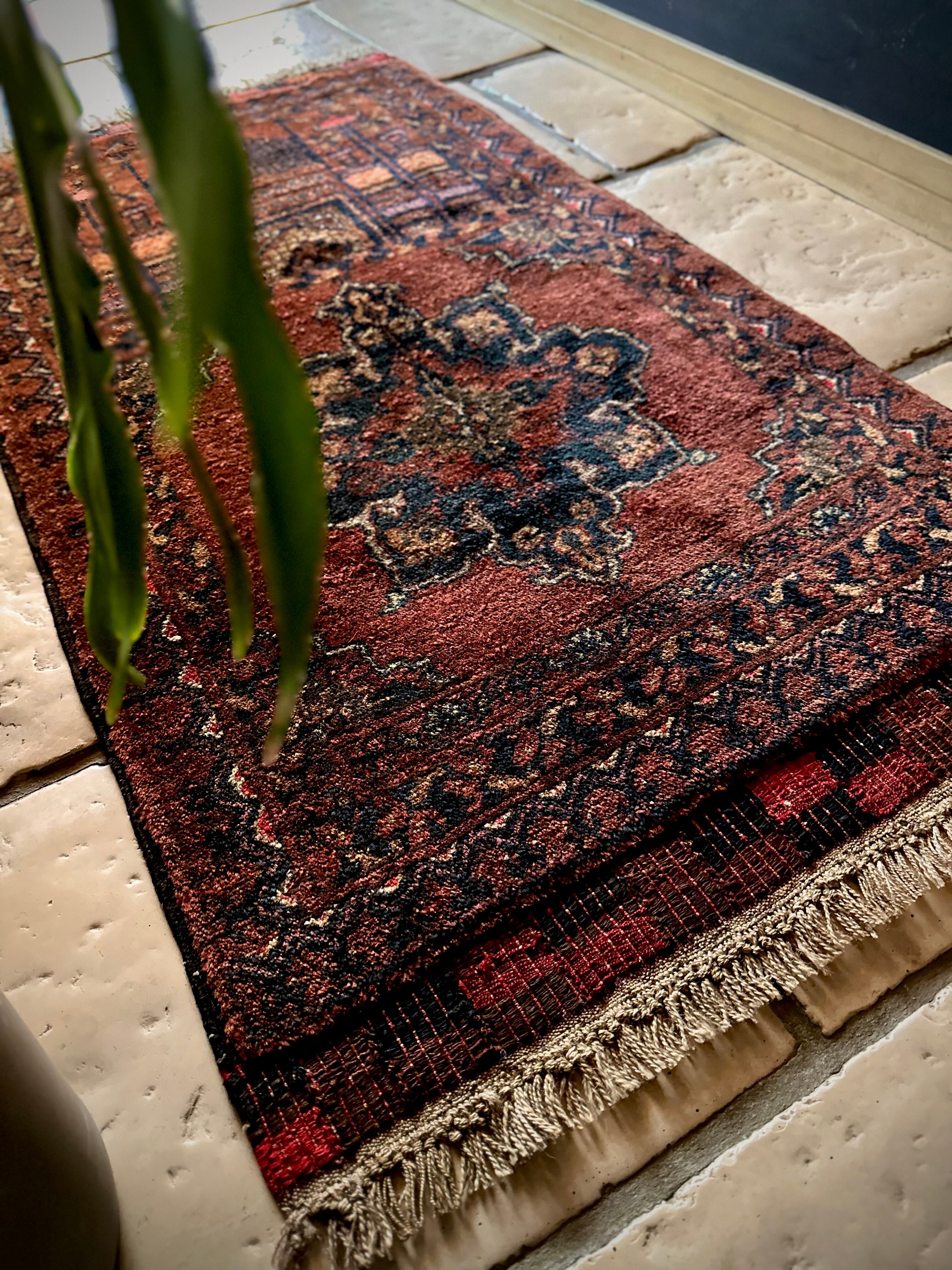 最後にラグそのものに関しては羊毛特有の匂いがあり、採寸は中央付近で計測していますが、手織りならではの歪みによる誤差や水洗いクリーニングによる縮み、また草木染めによる経年劣化の色ムラなどがありますが、それもまたヴィンテージラグの魅力かとご理解ください。
