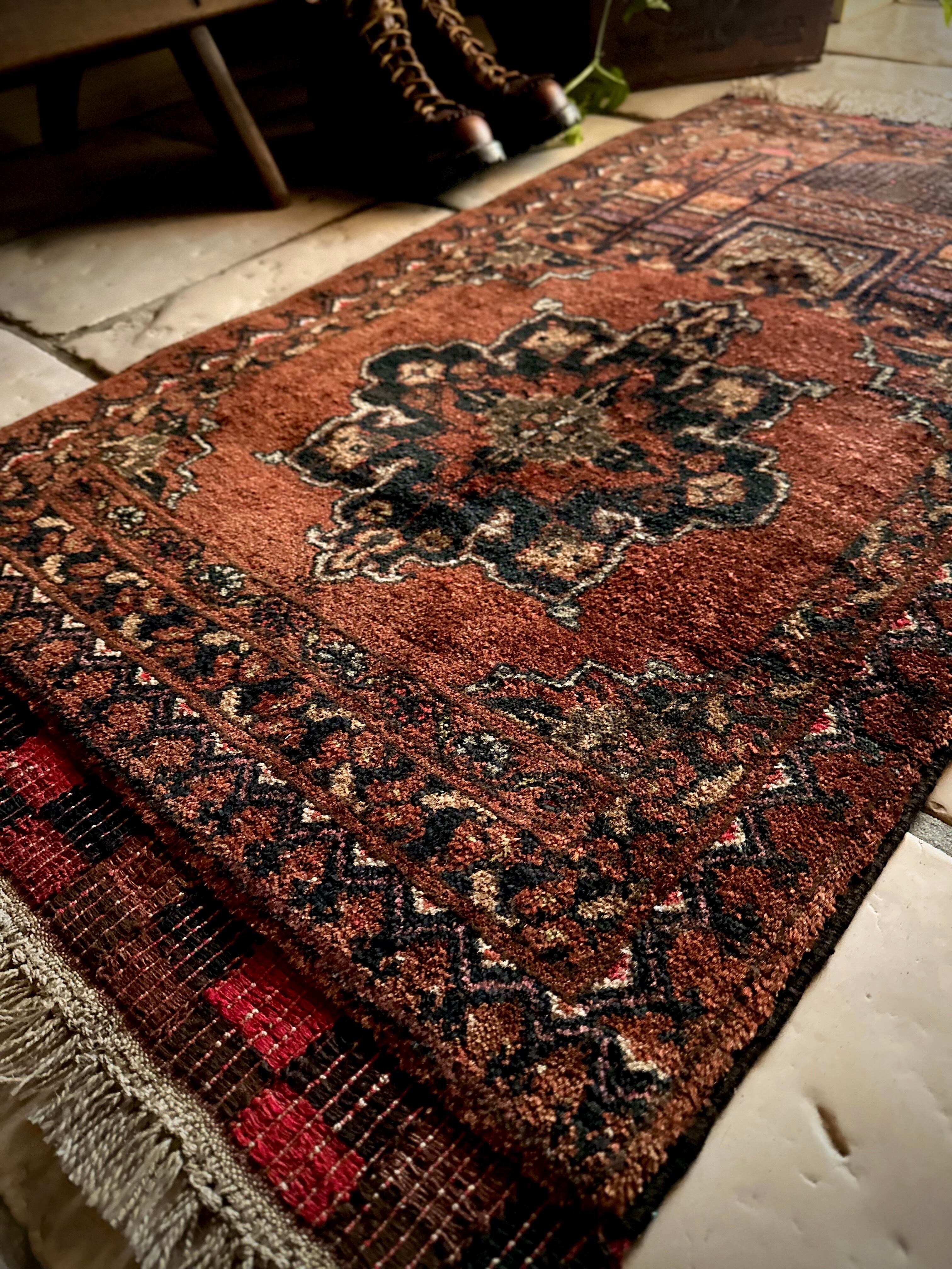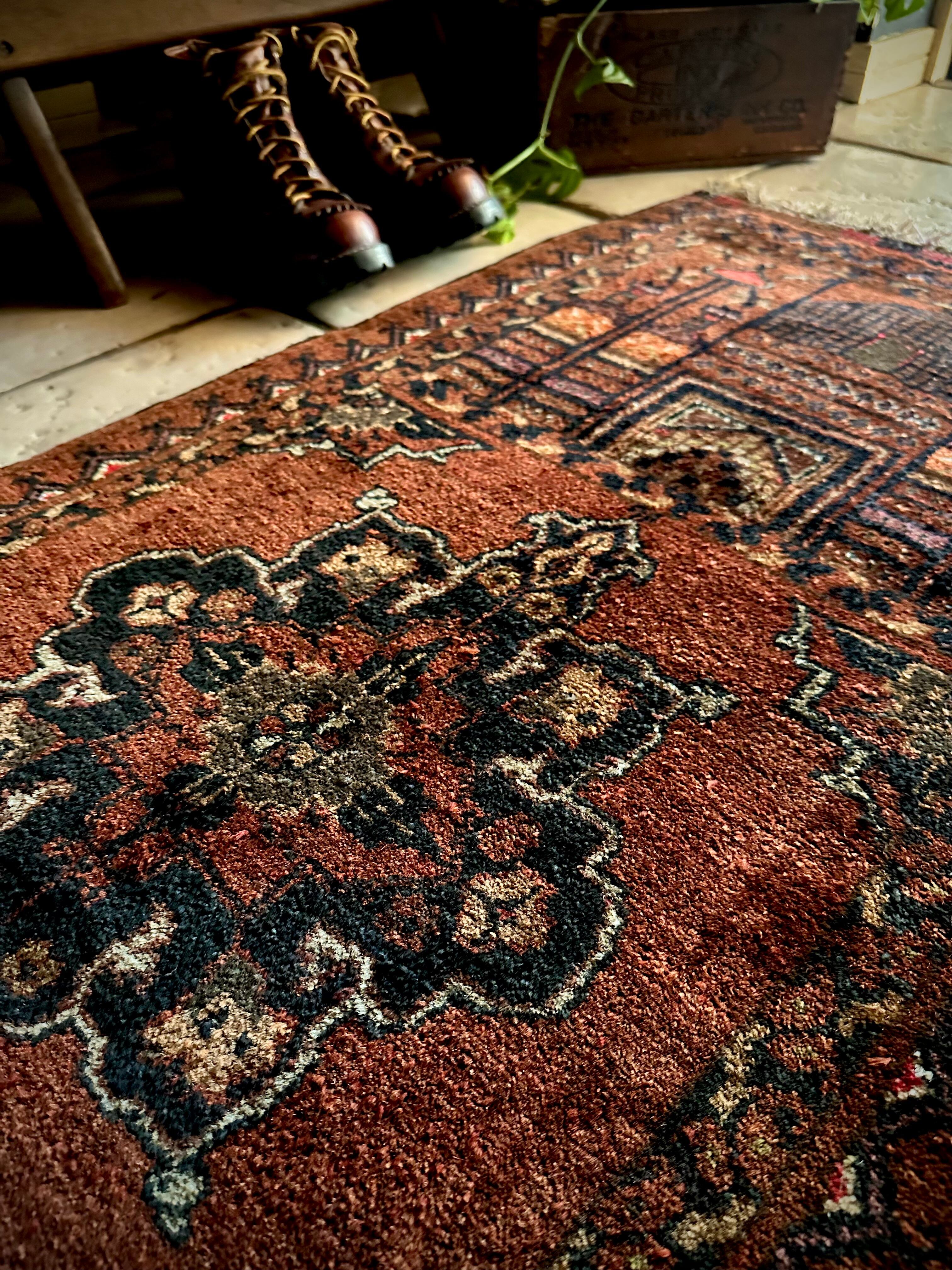 経年としては50年のヴィンテージラグになりますが、それほどの使用感はなく目立つ汚れやダメージにリペア箇所は見当たらないグッドなコンディションで、色合い的にも馴染みやすいアクセントラグと言えるでしょう。