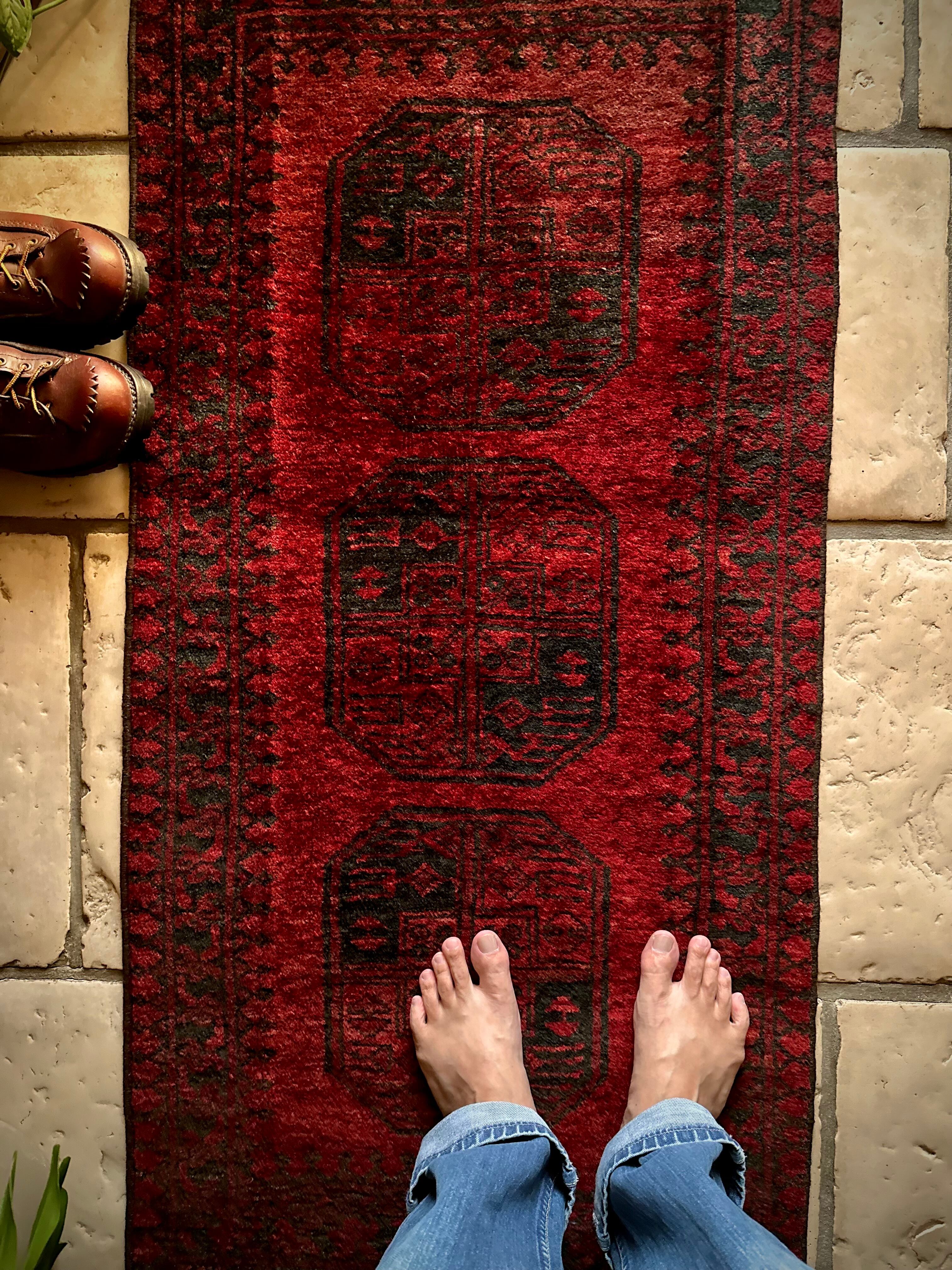 最後にラグそのものに関しては羊毛特有の匂いがあり、採寸は中央付近で計測していますが、手織りならではの歪みによる誤差や水洗いクリーニングによる縮み、また草木染めによる経年劣化の色ムラなどがありますが、それもまたヴィンテージラグの魅力かとご理解ください。