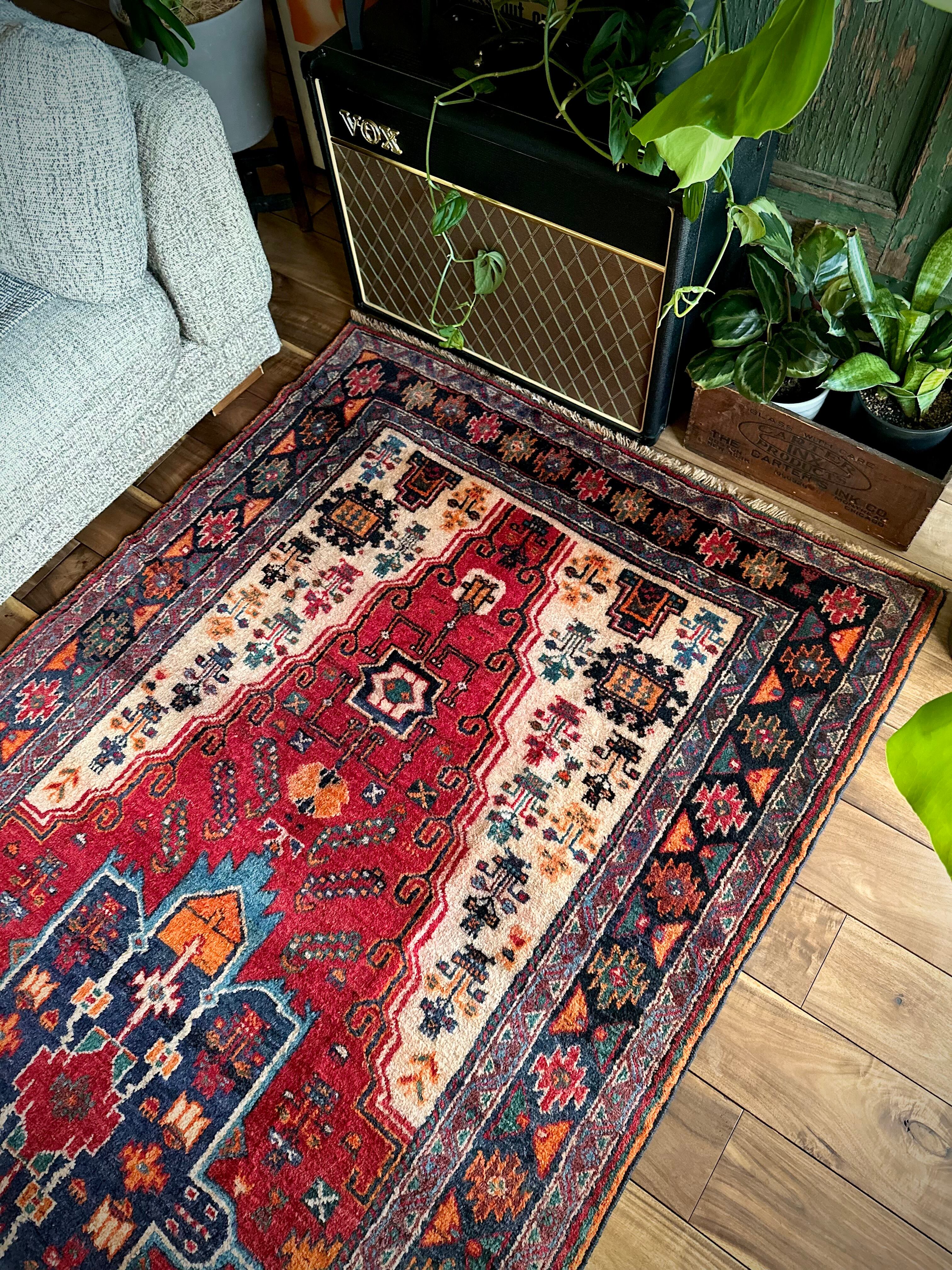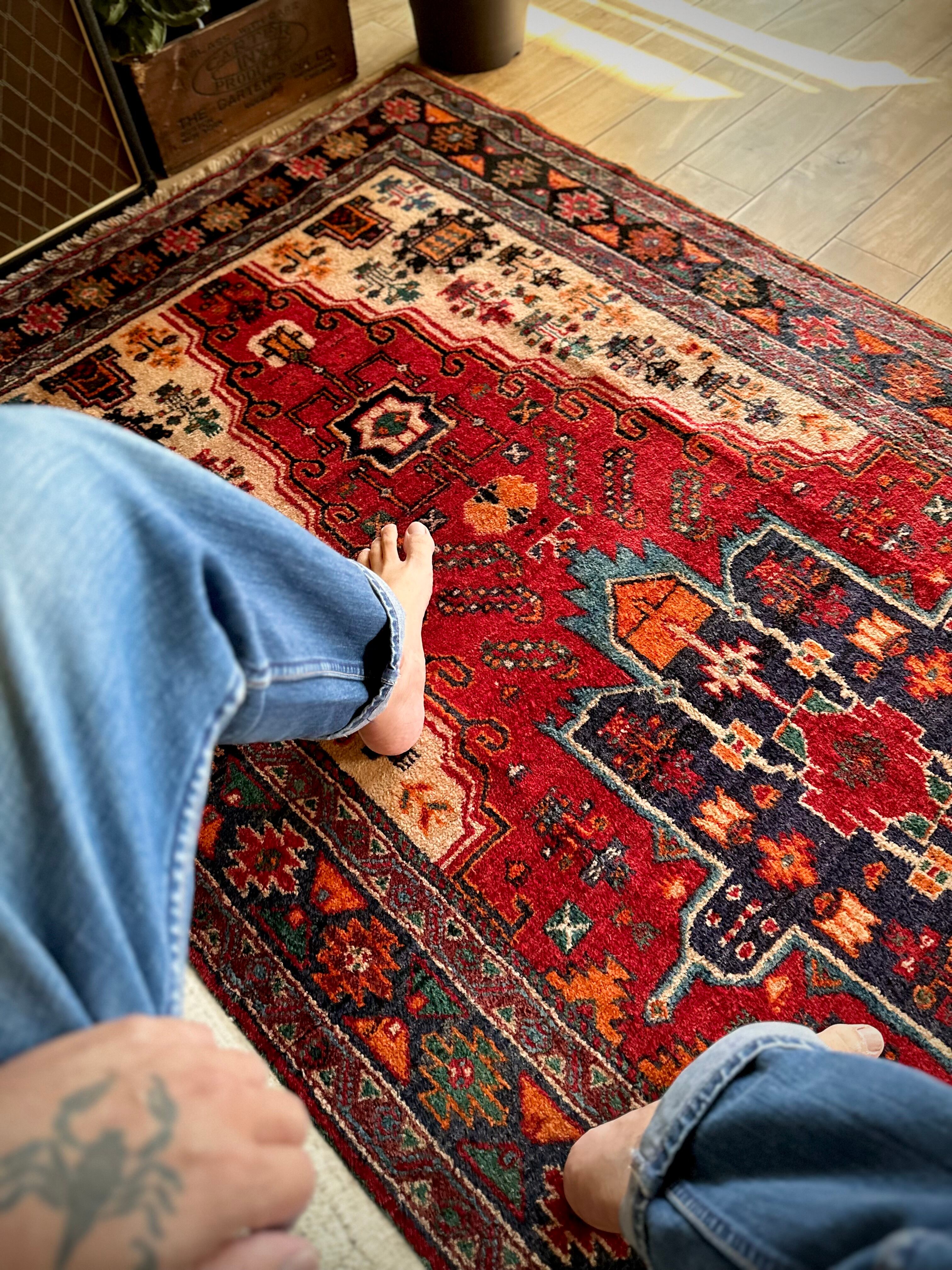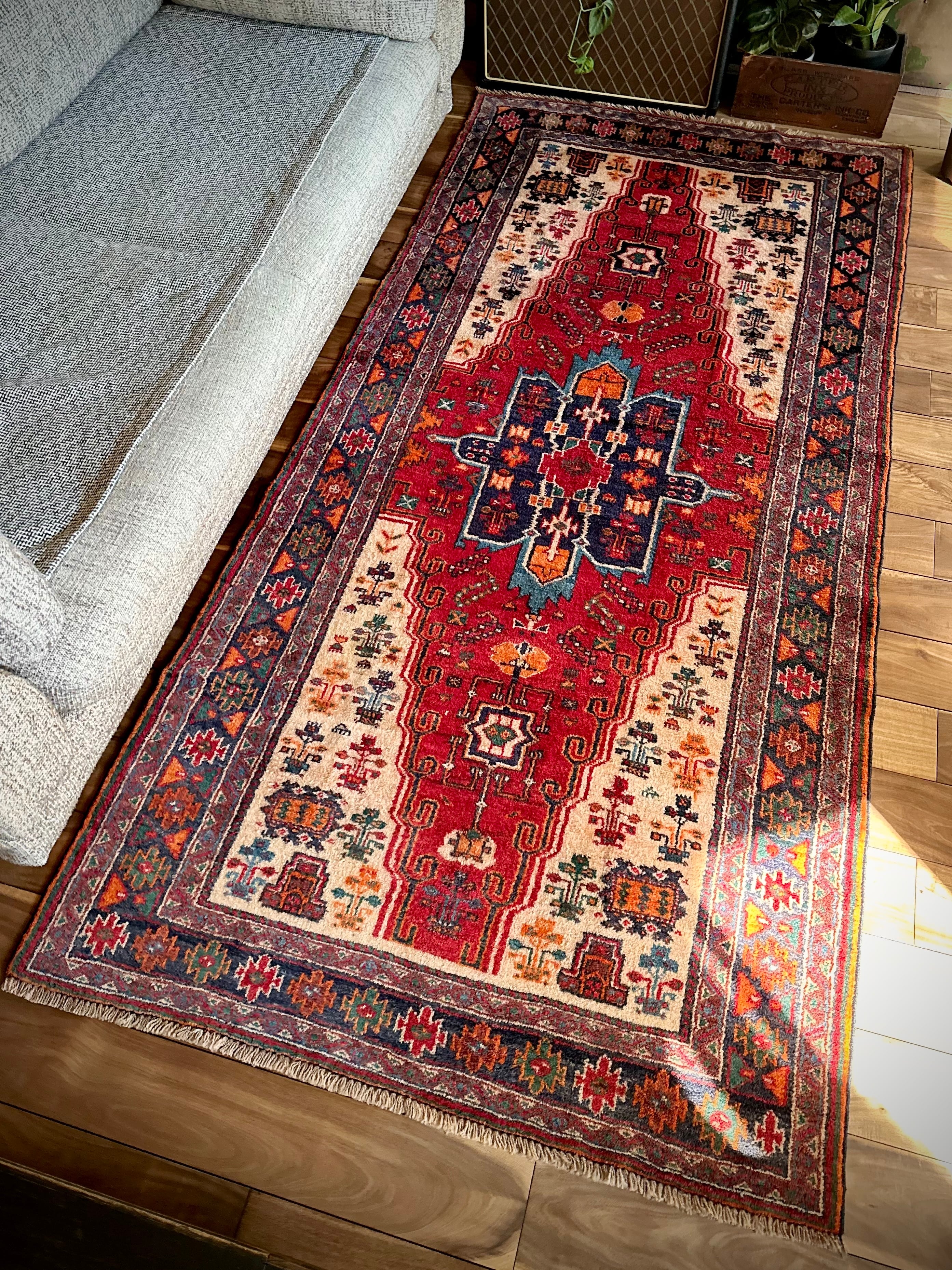 最後にラグそのものに関しては羊毛特有の匂いがあり、採寸は中央付近で計測していますが、手織りならではの歪みによる誤差や水洗いクリーニングによる縮み、また草木染めによる経年劣化の色ムラなどがありますが、それもまたヴィンテージラグの魅力かとご理解ください。