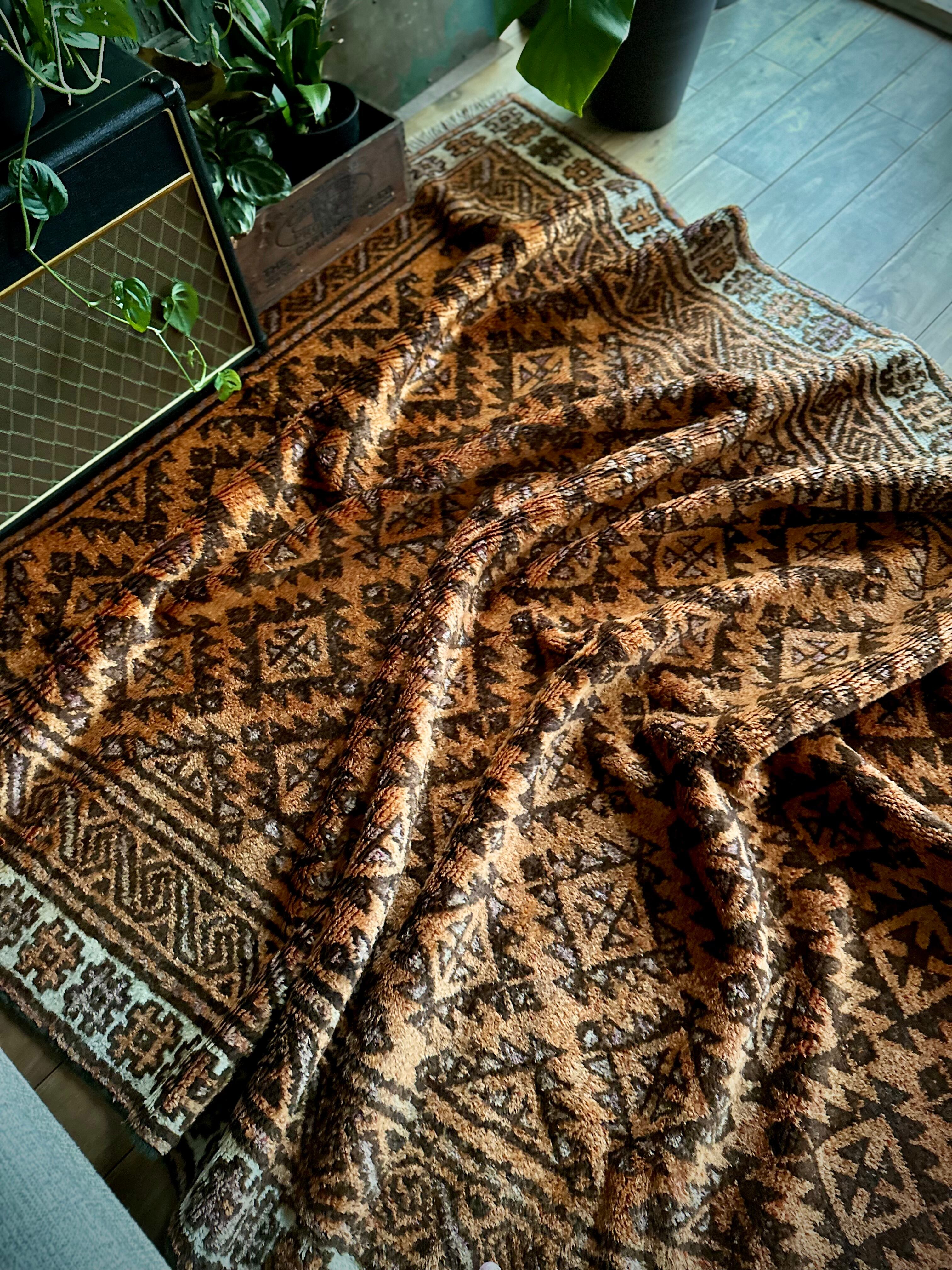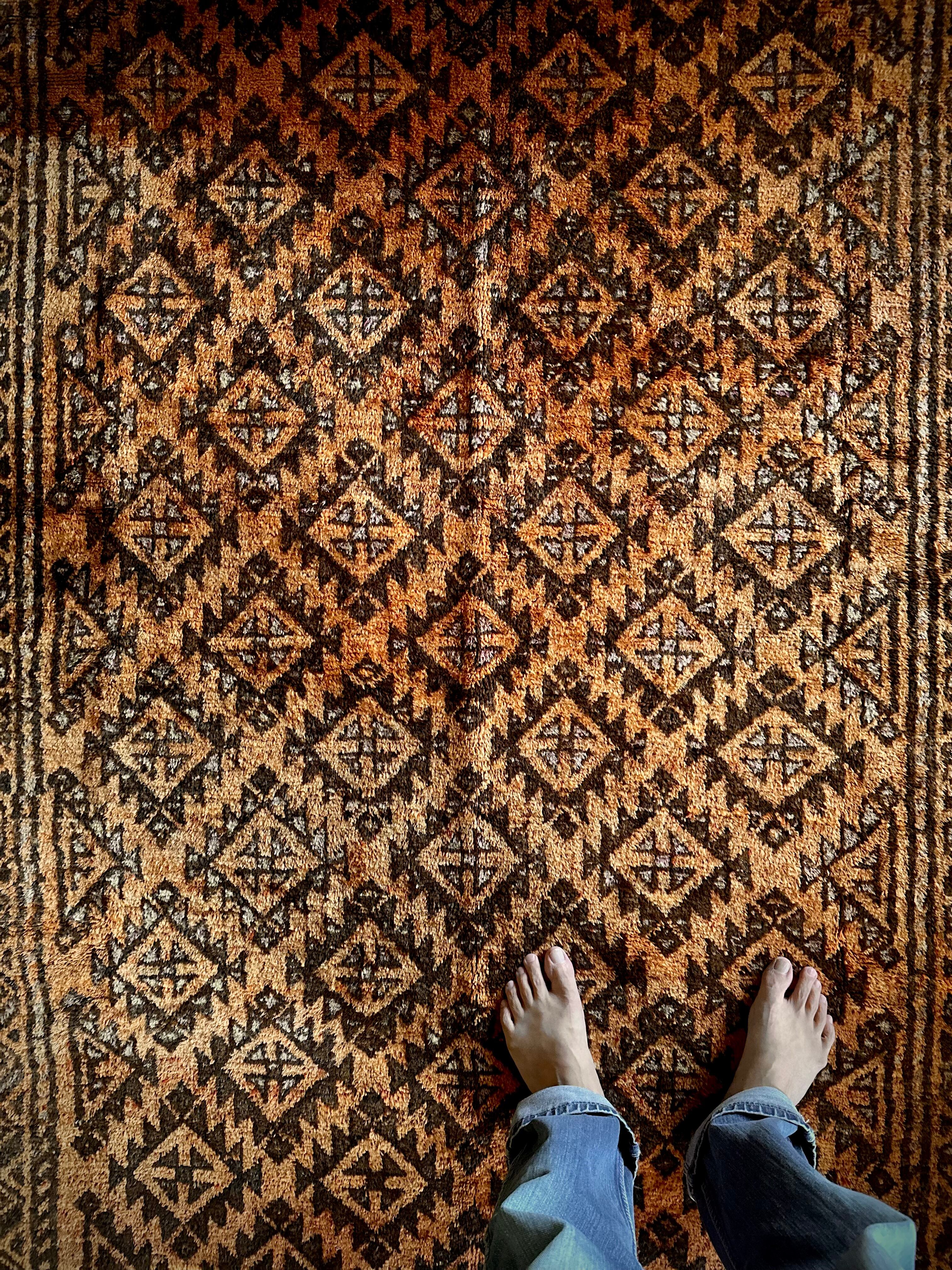 ざっくりとした織りで柔らかな質感が特徴的なタイマニのラグですが、その長い毛足に触れる足裏の感触は堪らなく、我が家のリビングでもタイマニを敷いていて、その気持ちよさについつい眠りについてしまうくらい味わい深いトライバルラグになります。