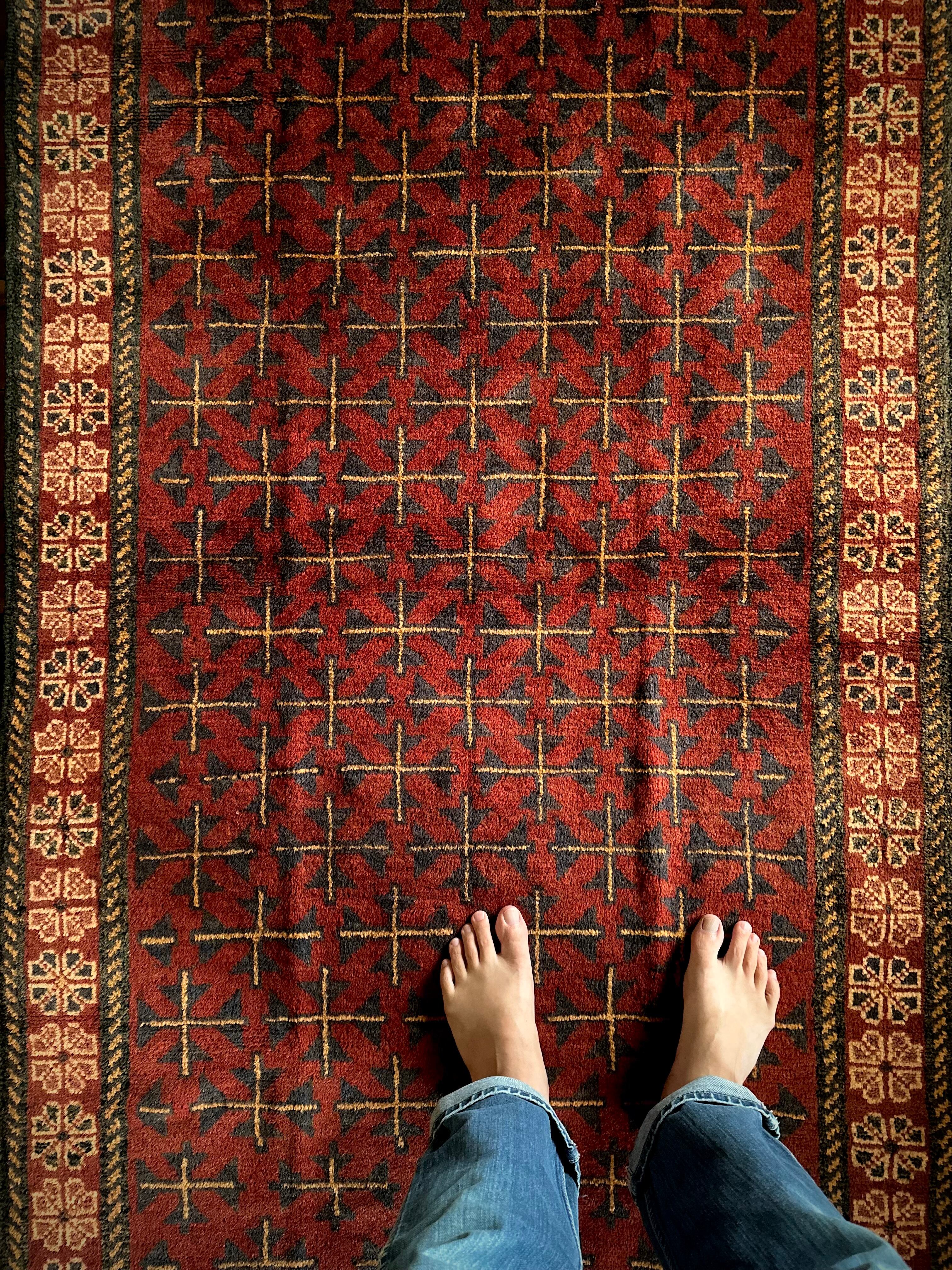 最後にラグそのものに関しては羊毛特有の匂いがあり、採寸は中央付近で計測していますが、手織りならではの歪みによる誤差や水洗いクリーニングによる縮み、また草木染めによる経年劣化の色ムラなどがありますが、それもまたヴィンテージラグの魅力かとご理解ください。