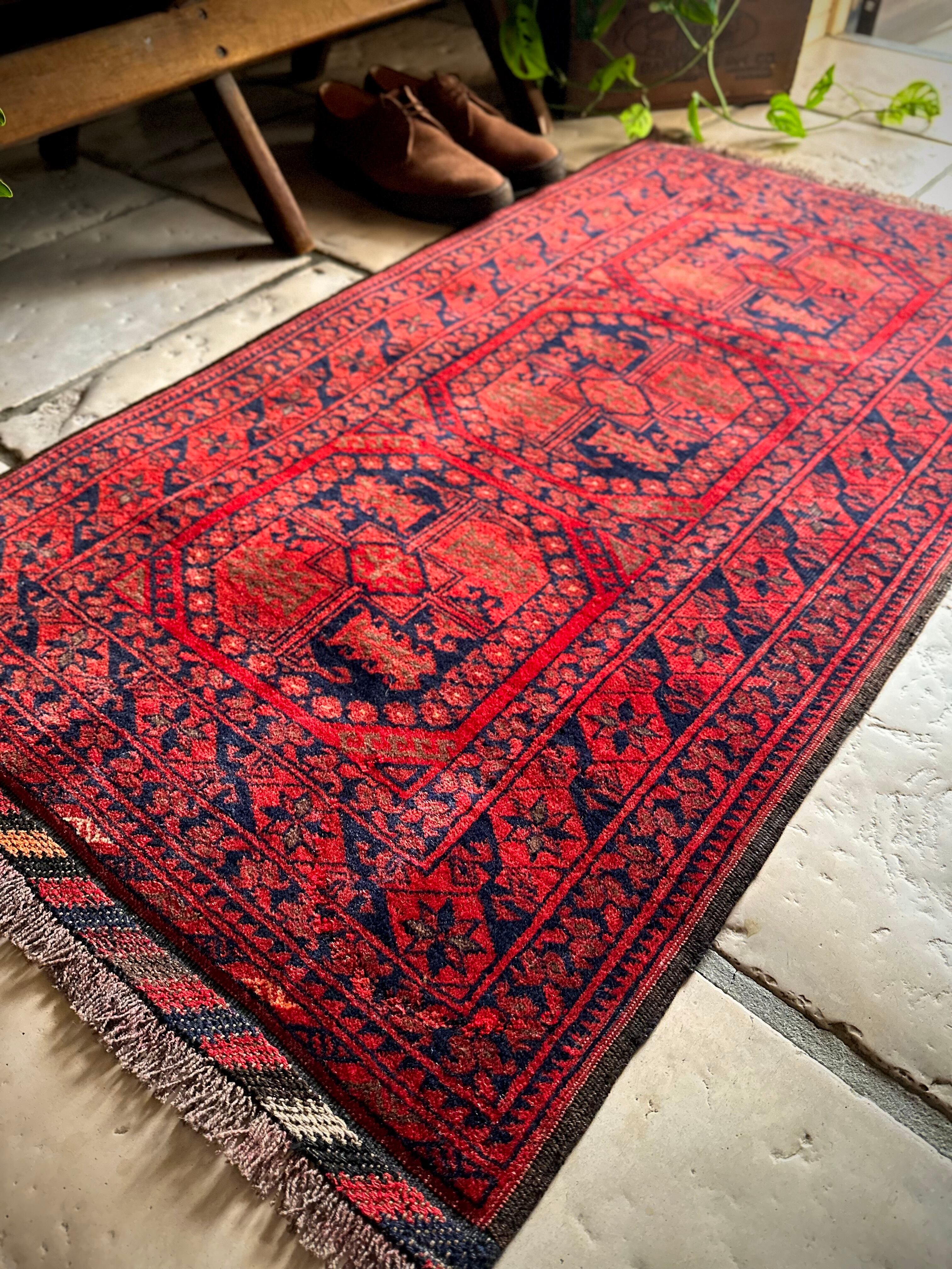 トルクメン特有のギュッと詰まった織りに短めのパイルはサラッとした手触りで年中ご使用でき、こちらもお手軽なアクセントラグとして気ままに敷き変え出来るサイズ感が嬉しく、片側のキリムエンドも高ポイントでしょうか。