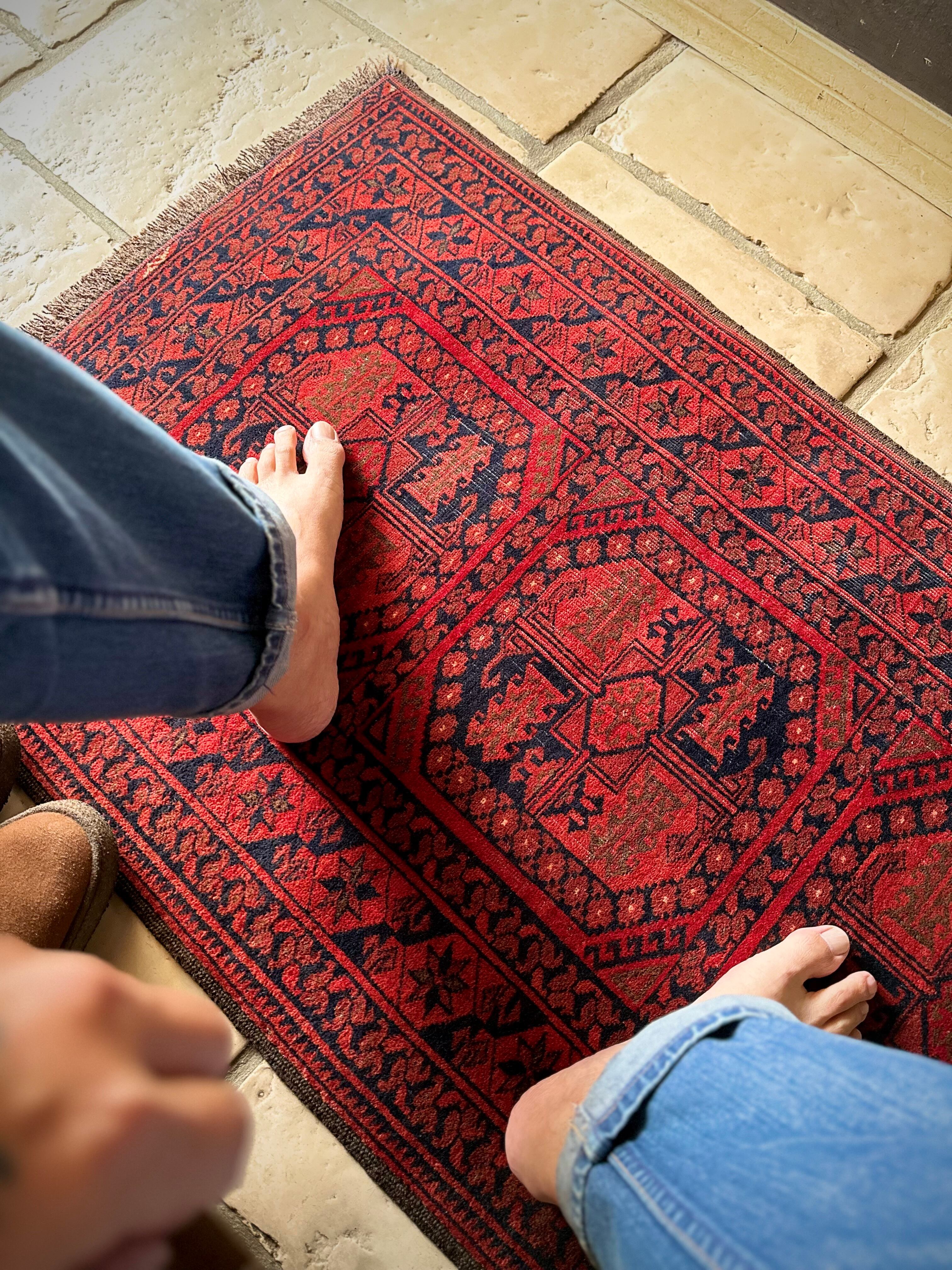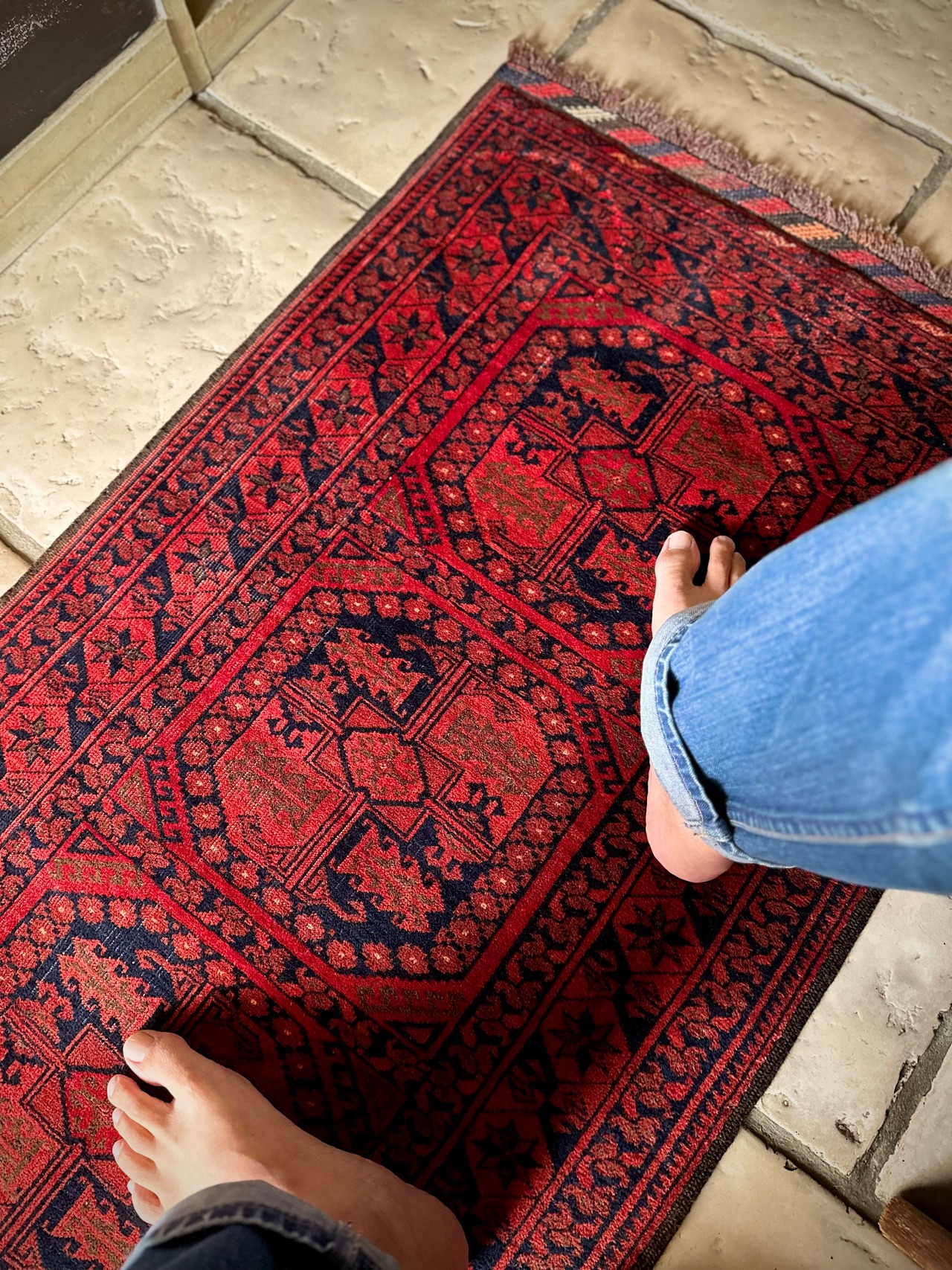 最後にラグそのものに関しては羊毛特有の匂いがあり、採寸は中央付近で計測していますが、手織りならではの歪みによる誤差や水洗いクリーニングによる縮み、また草木染めによる経年劣化の色ムラなどがありますが、それもまたヴィンテージラグの魅力かとご理解ください。