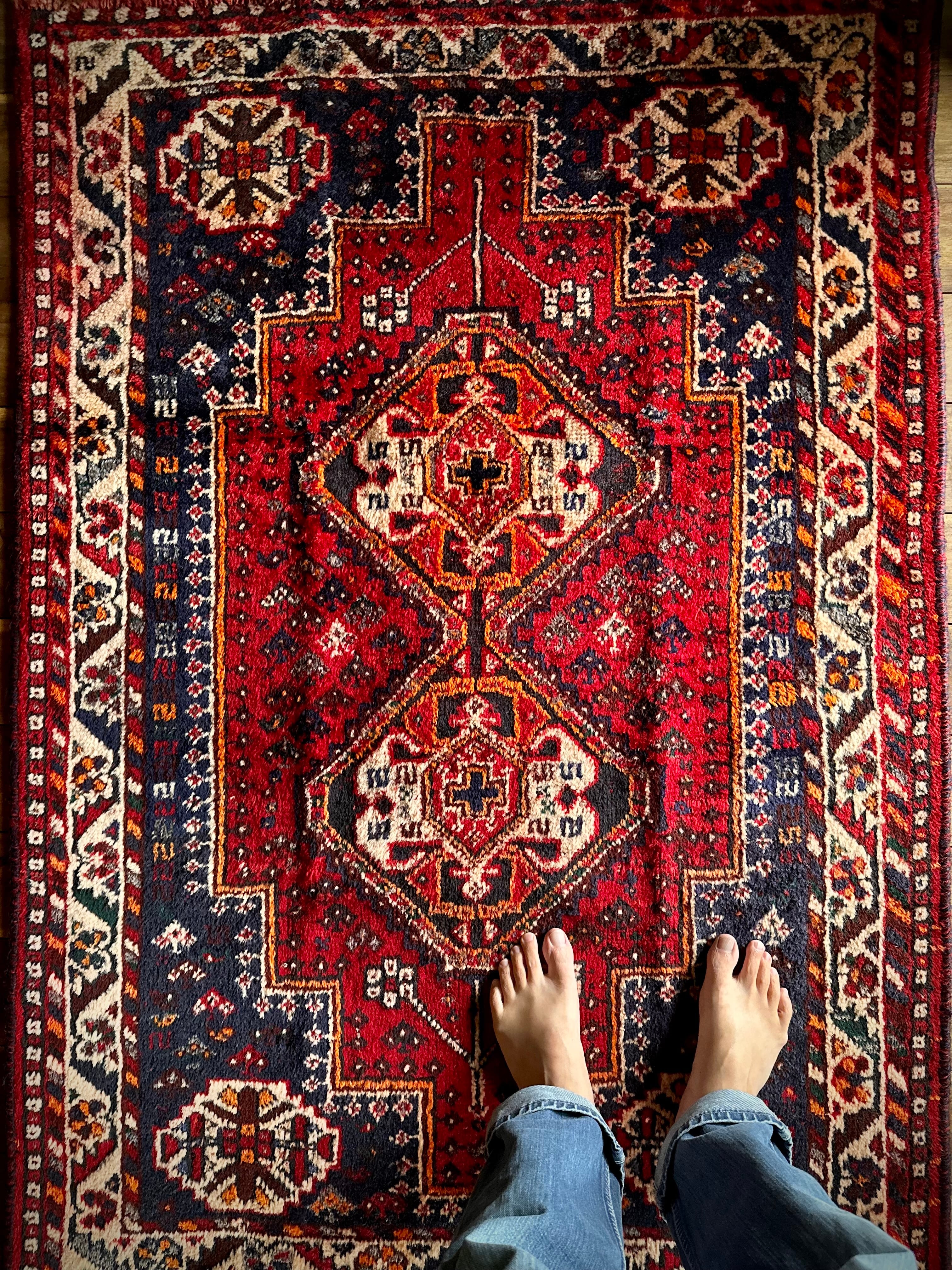 最後にラグそのものに関しては羊毛特有の匂いがあり、採寸は中央付近で計測していますが、手織りならではの歪みによる誤差や水洗いクリーニングによる縮み、また草木染めによる経年劣化の色ムラなどがありますが、それもまたヴィンテージラグの魅力かとご理解ください。
