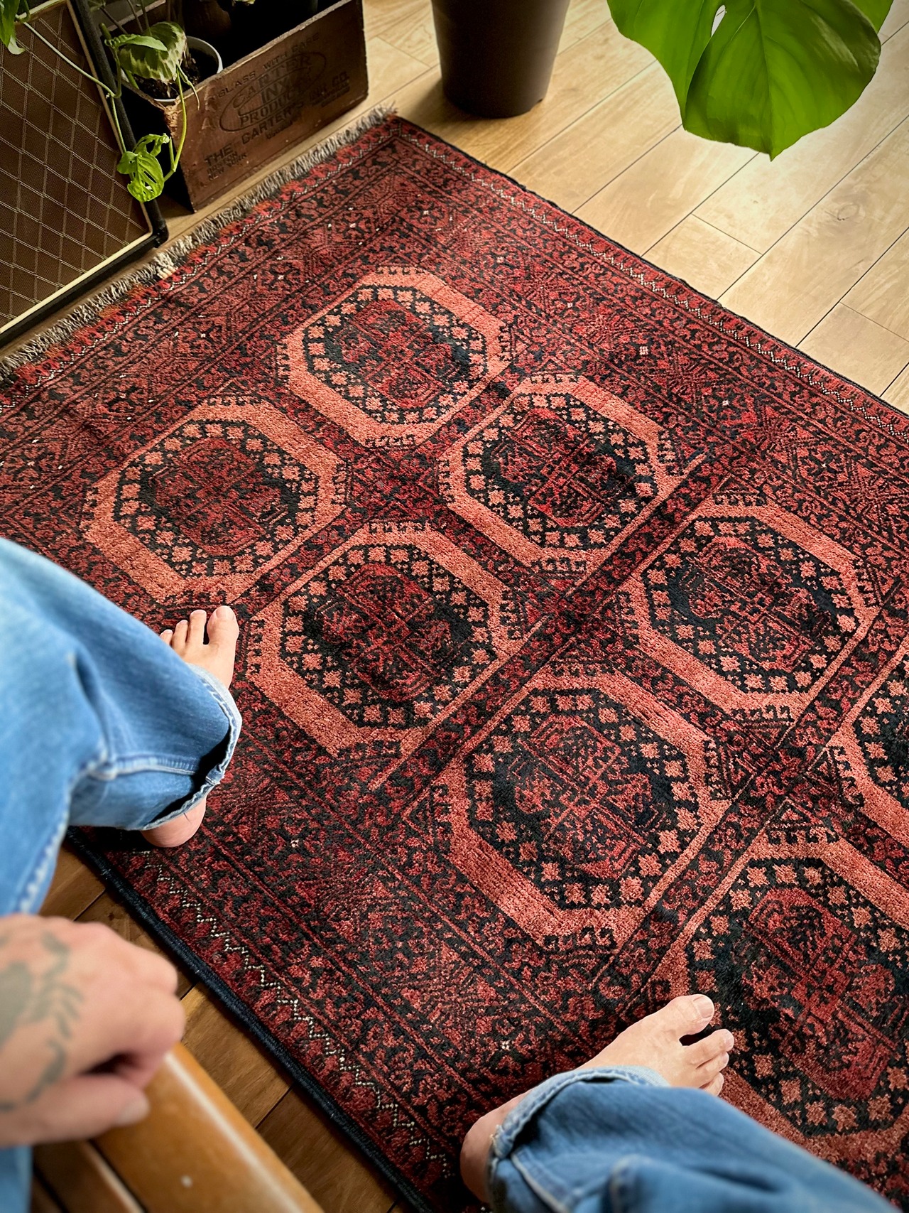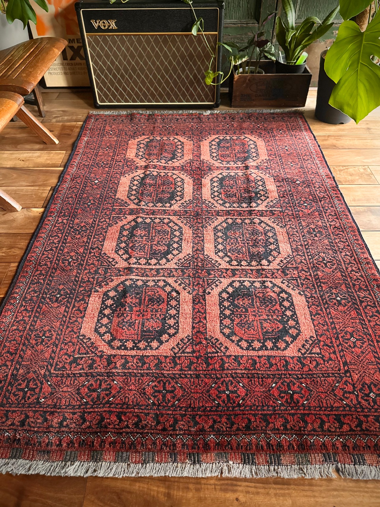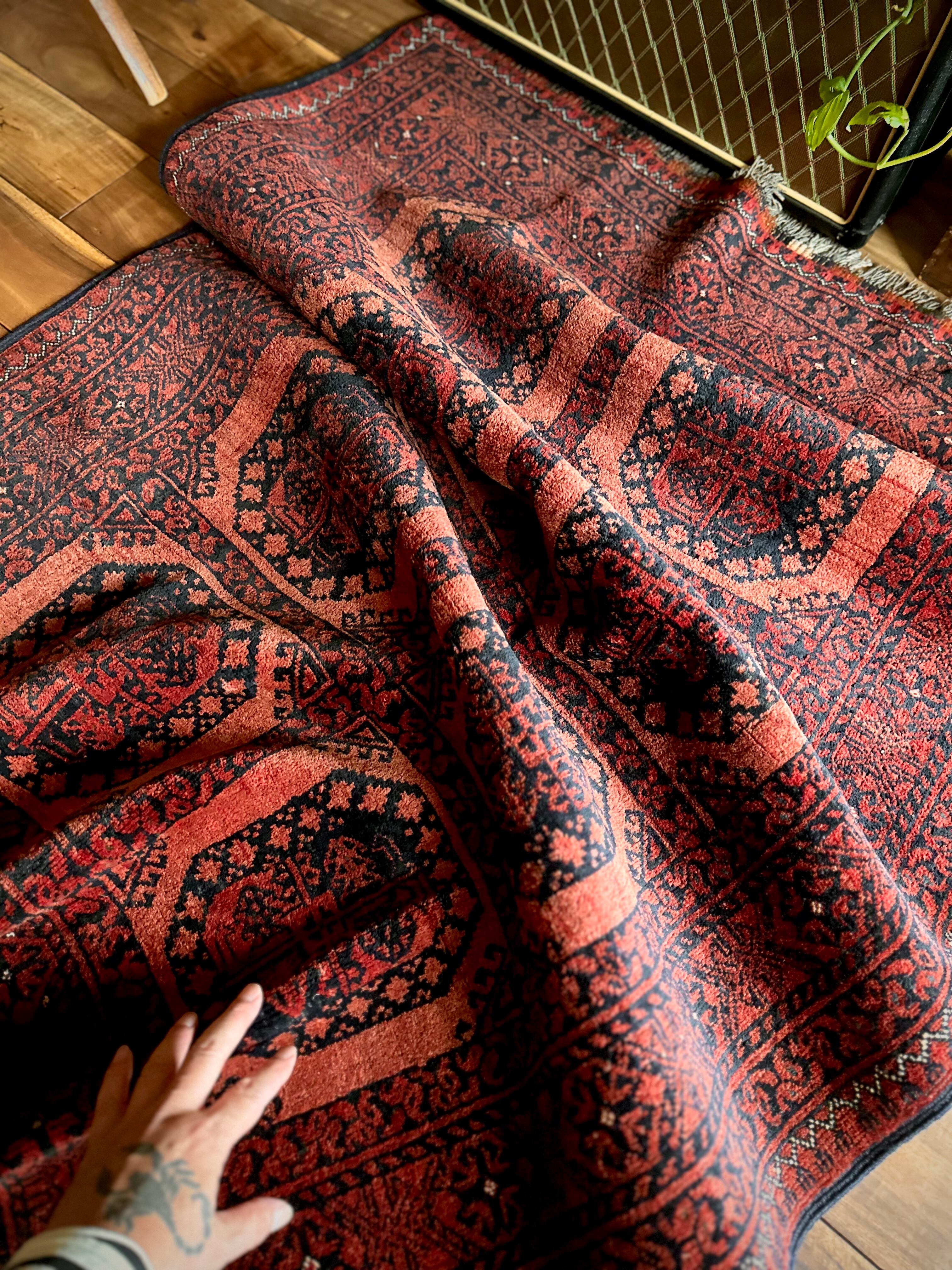 最後にラグそのものに関しては羊毛特有の匂いがあり、採寸は中央付近で計測していますが、手織りならではの歪みによる誤差や水洗いクリーニングによる縮み、また草木染めによる経年劣化の色ムラなどがありますが、それもまたヴィンテージラグの魅力かとご理解ください。