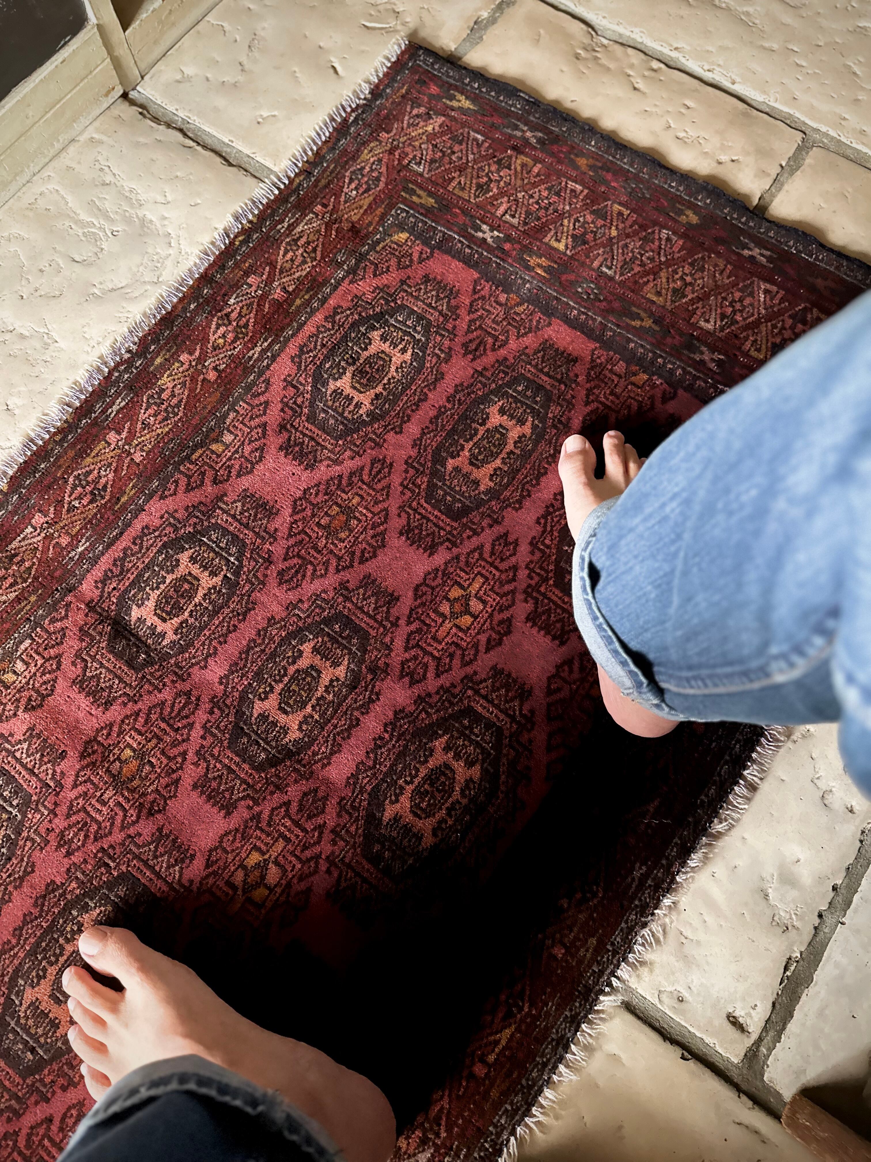最後にラグそのものに関しては羊毛特有の匂いがあり、採寸は中央付近で計測していますが、手織りならではの歪みによる誤差や水洗いクリーニングによる縮み、また草木染めによる経年劣化の色ムラなどがありますが、それもまたヴィンテージラグの魅力かとご理解ください。