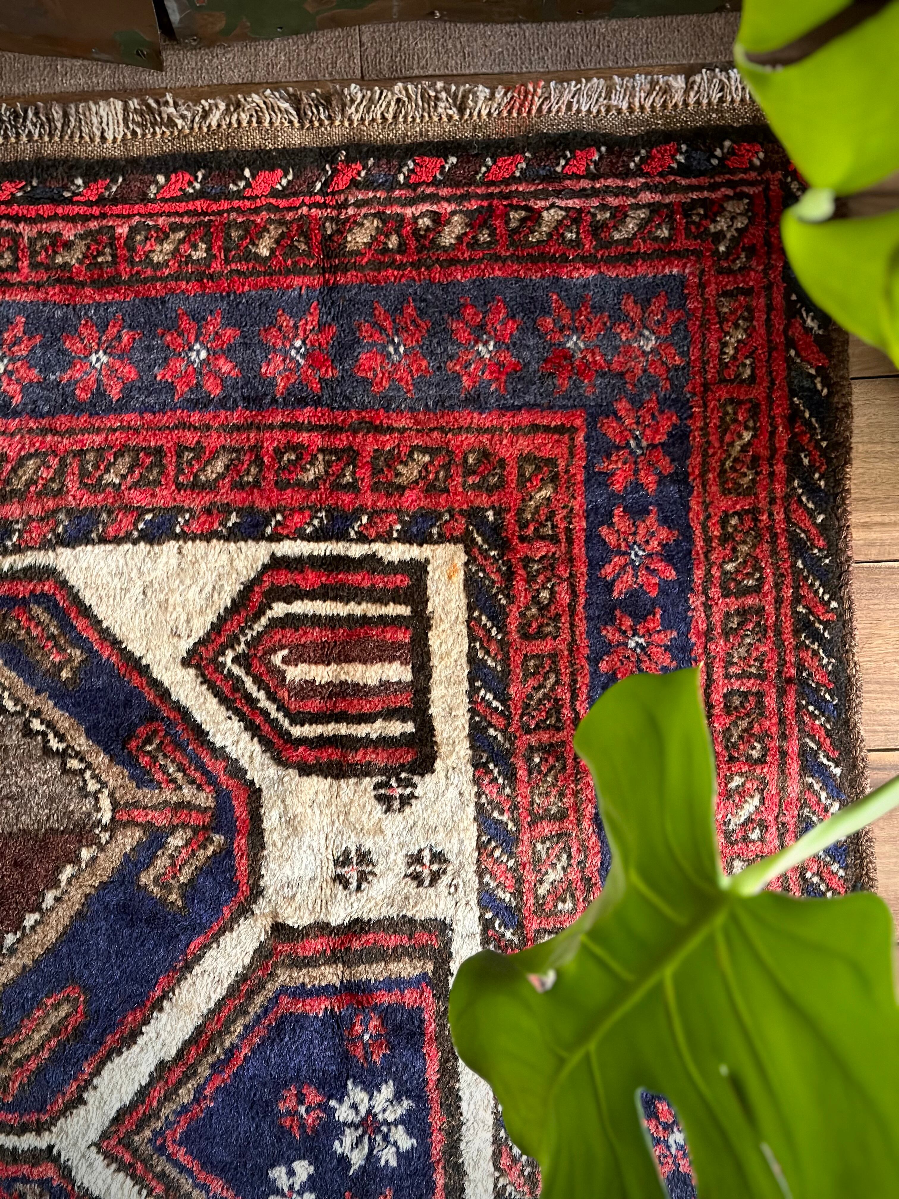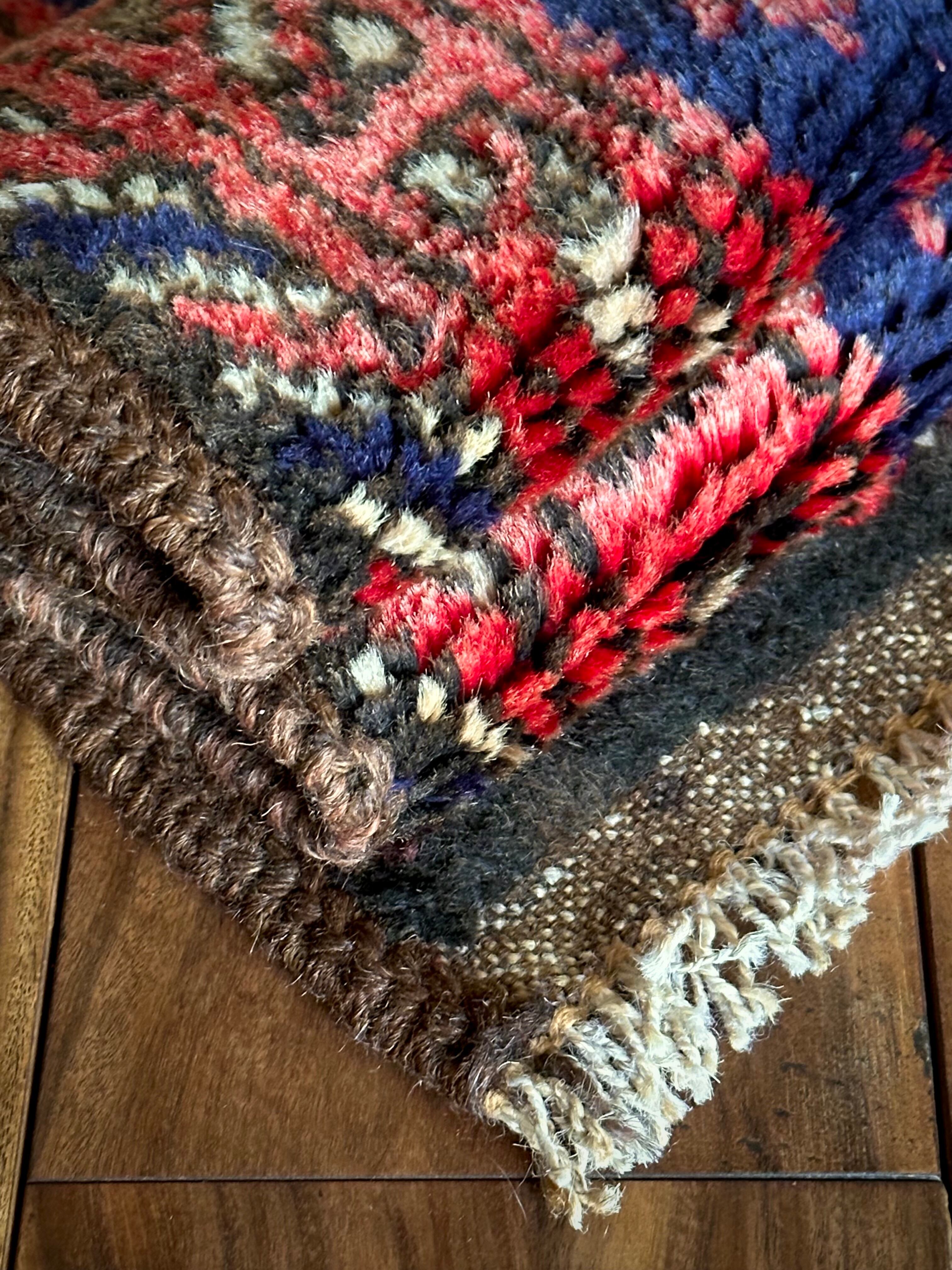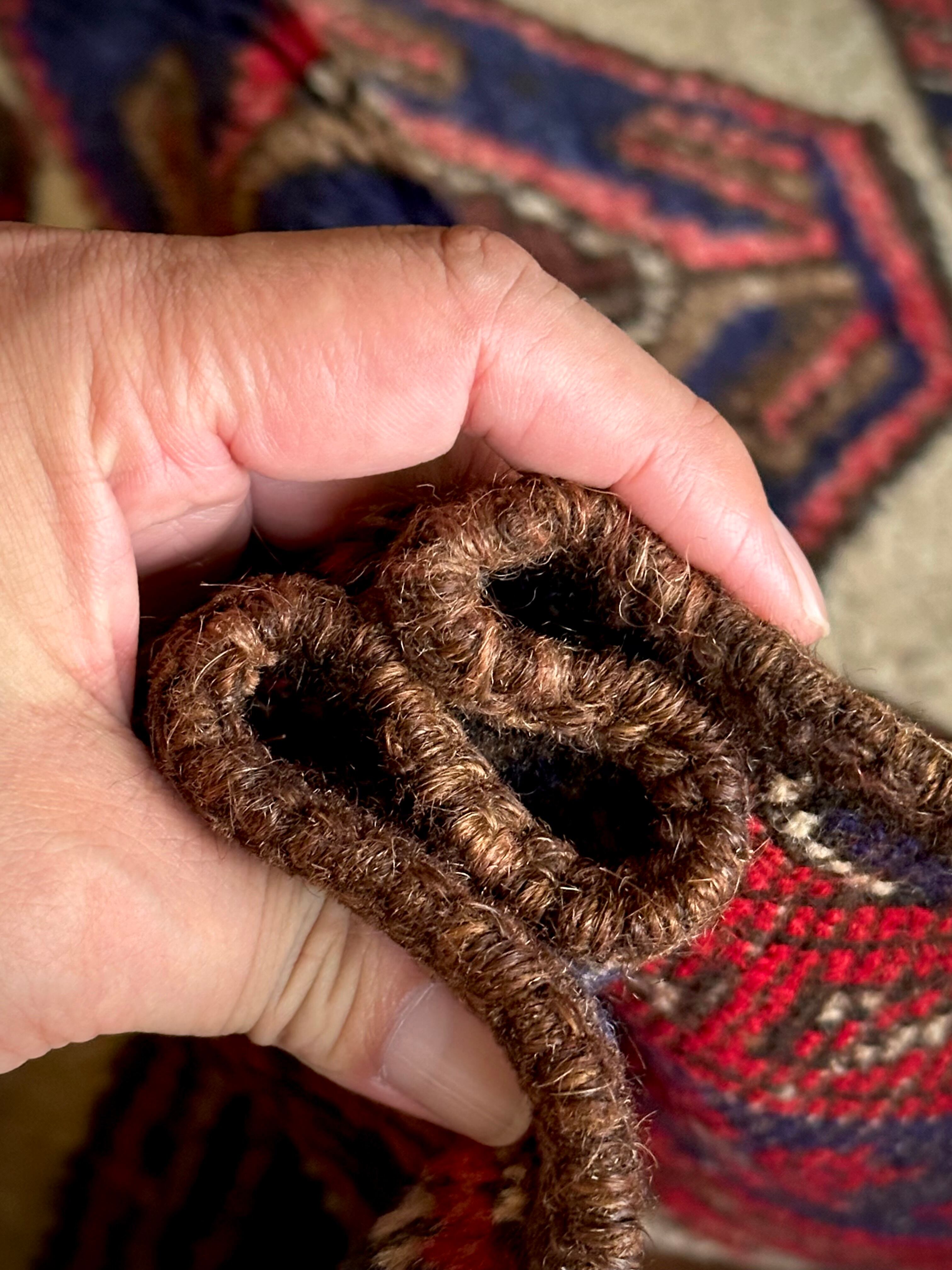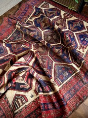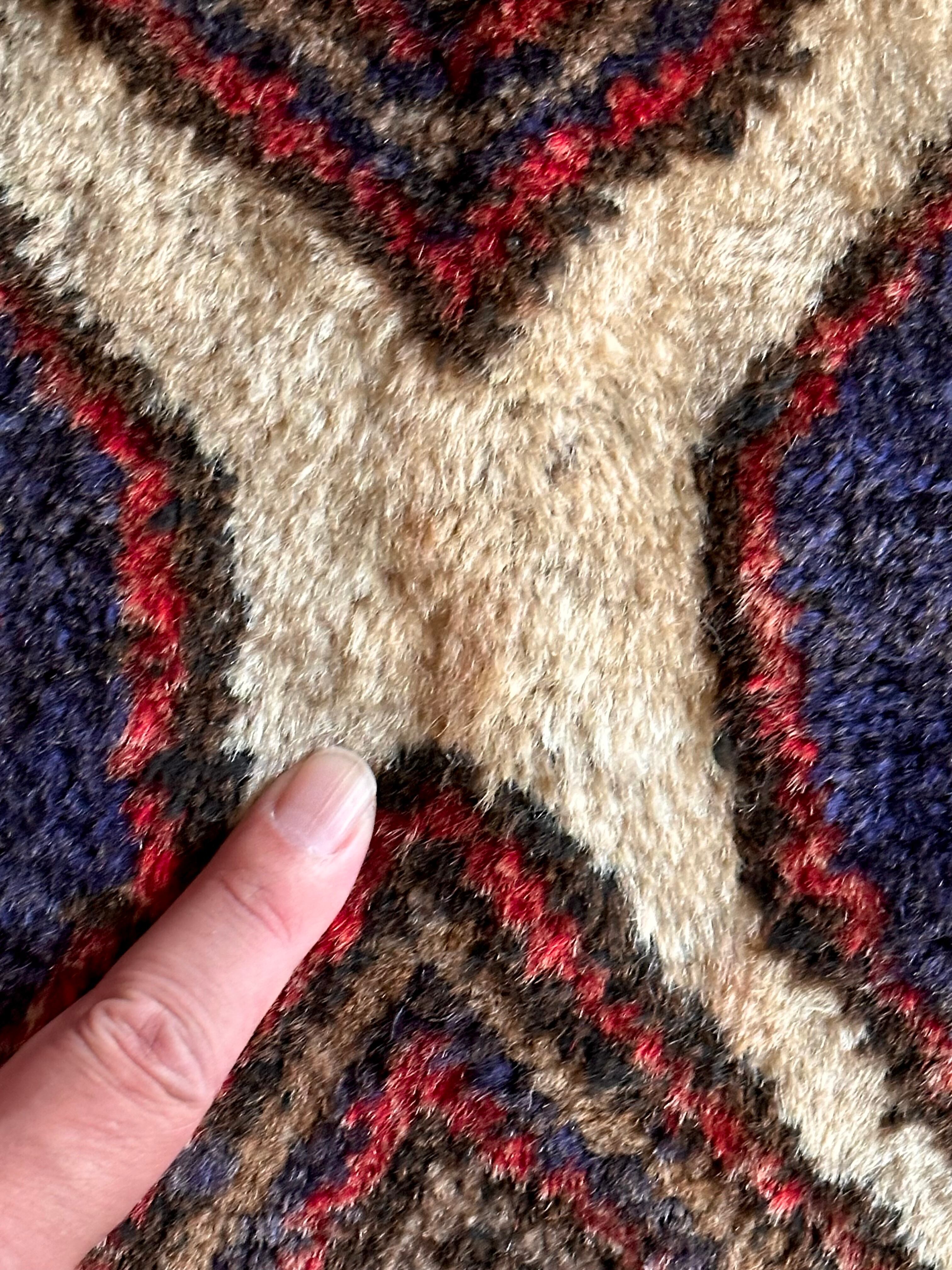 タイマニ族にも似たざっくりとした織りが特徴的なマルダリのラグですが、プリミティブな絵柄からも伺えるその大らかさは現代人には計り知れない性質で、最後の模様だけ何故色が抜けてるの?といった面白さもトライバルラグを楽しむ醍醐味だと思います。