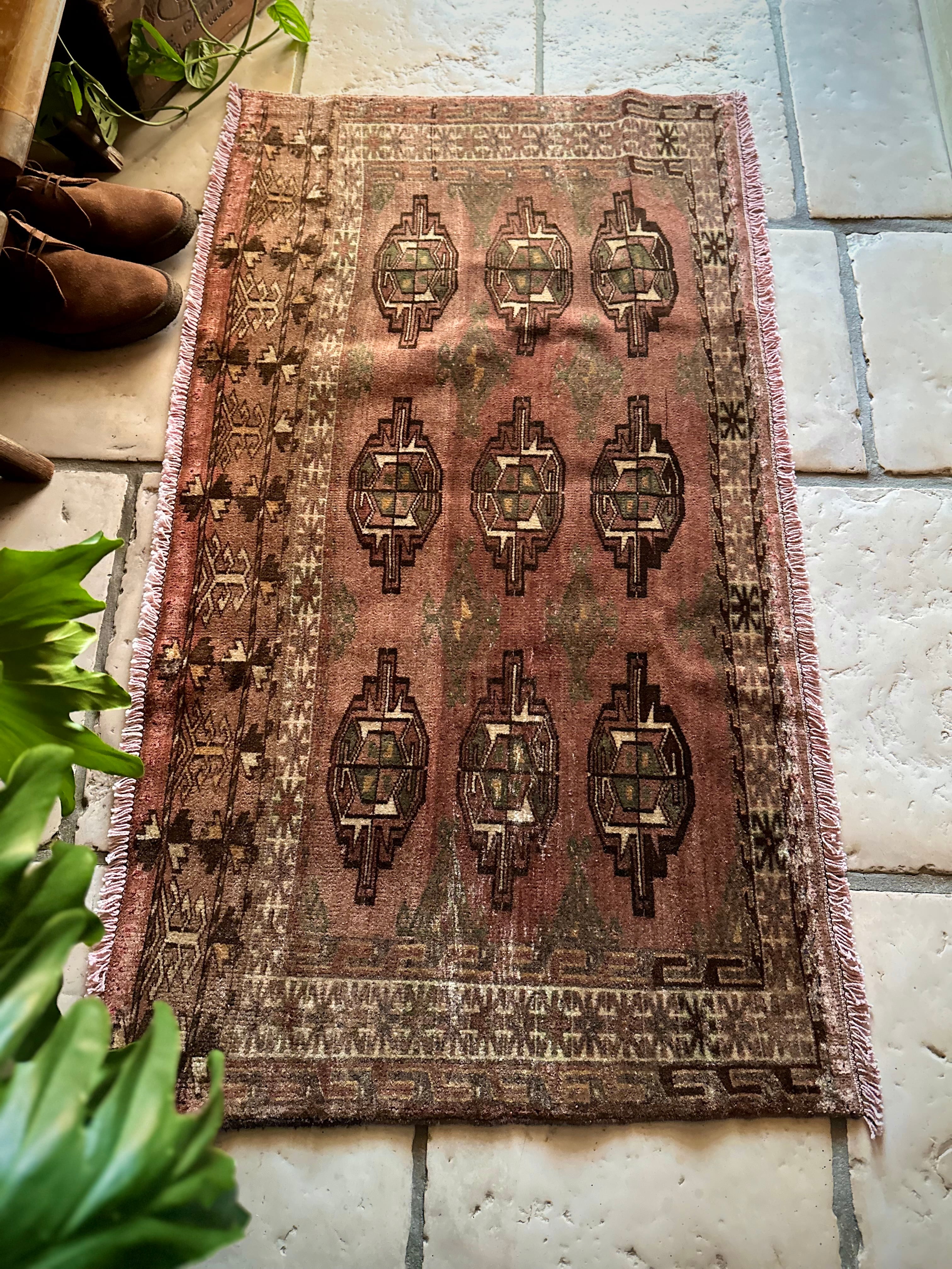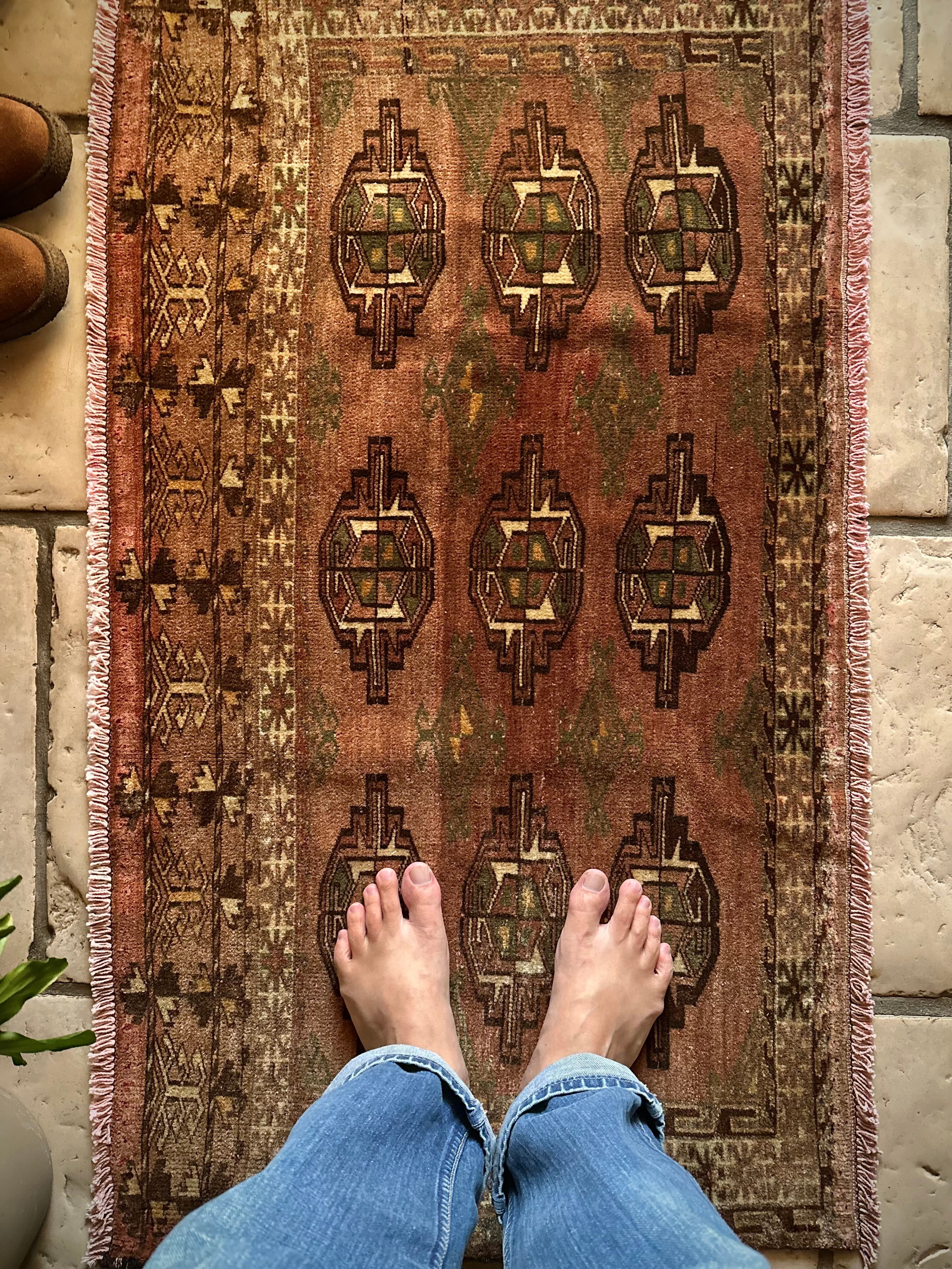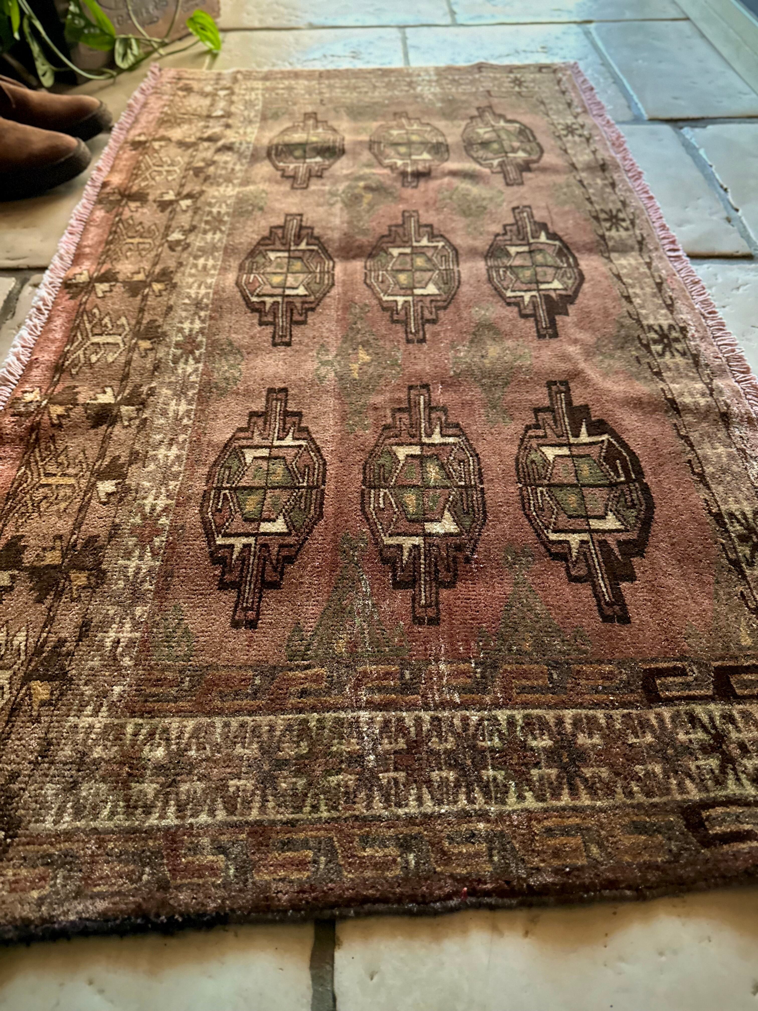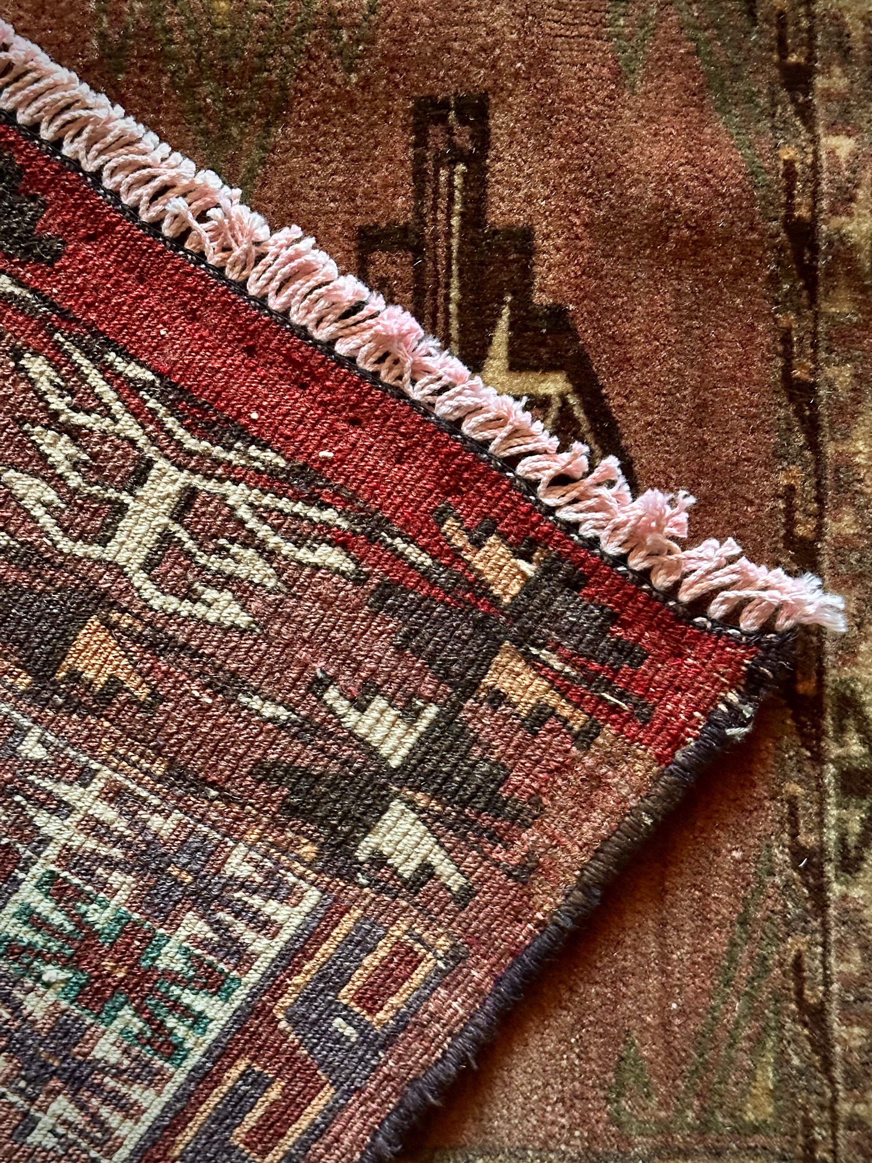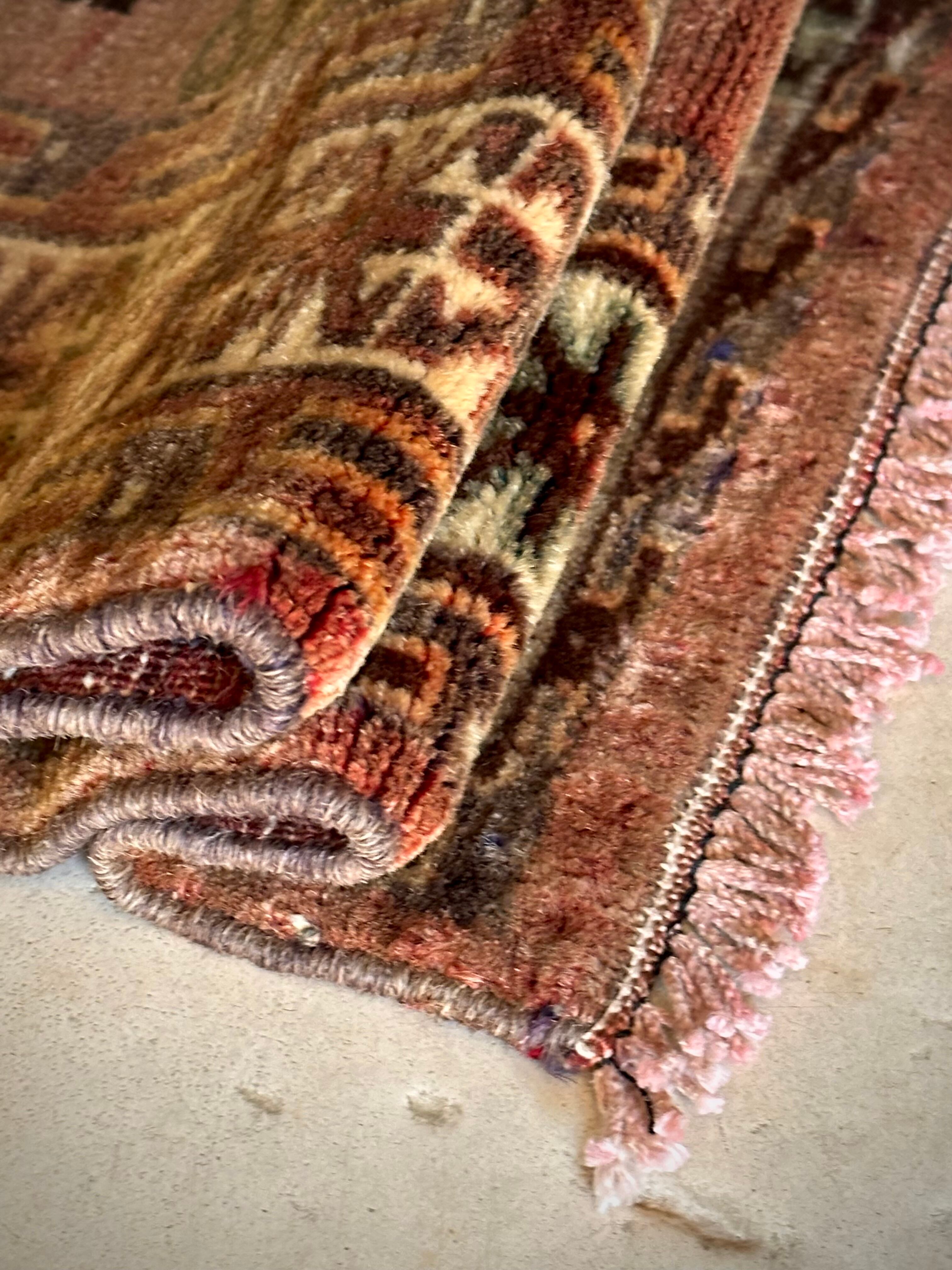 最後にラグそのものに関しては羊毛特有の匂いがあり、採寸は中央付近で計測していますが、手織りならではの歪みによる誤差や水洗いクリーニングによる縮み、また草木染めによる経年劣化の色ムラなどがありますが、それもまたヴィンテージラグの魅力かとご理解ください。