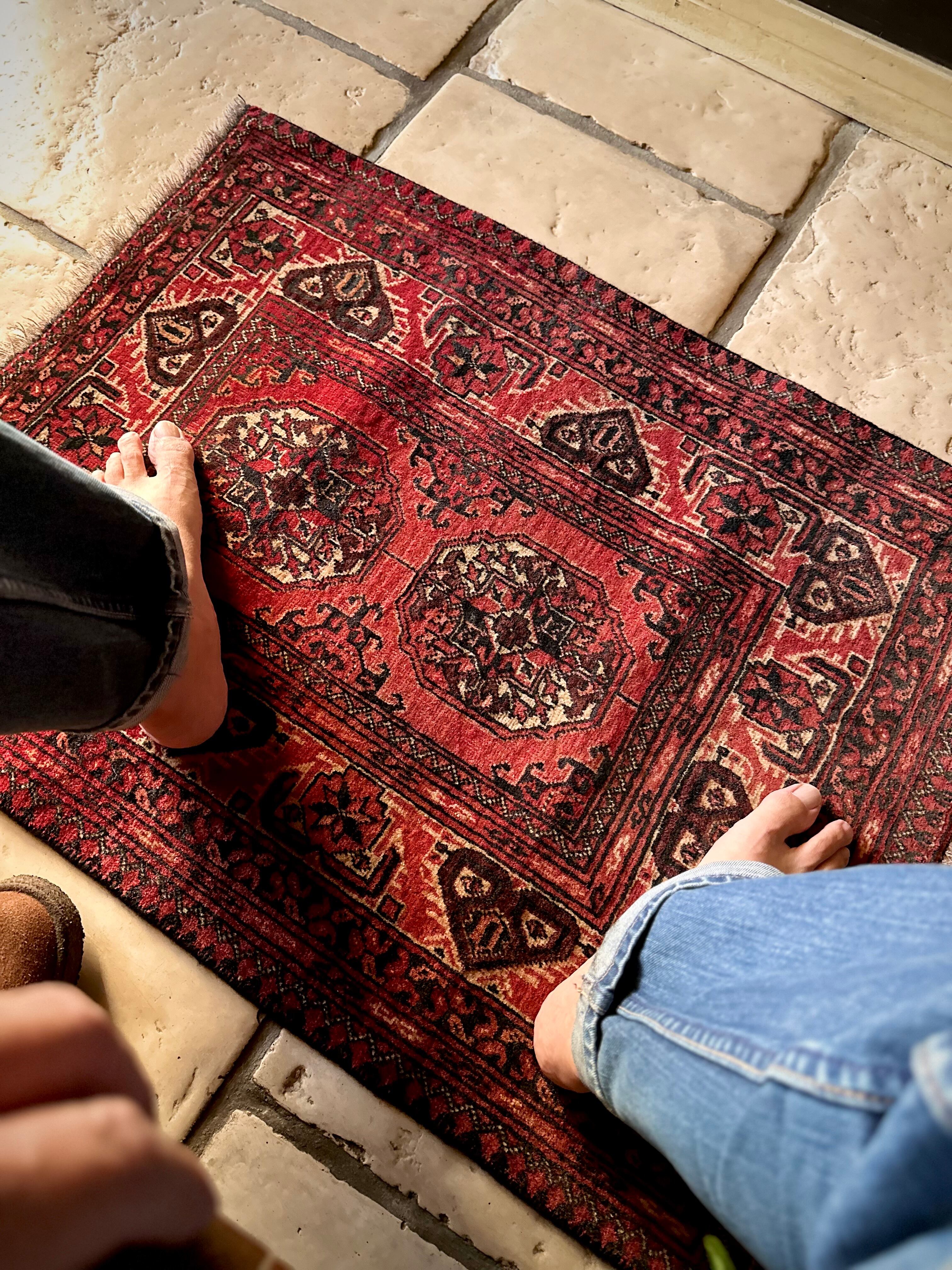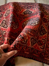最後にラグそのものに関しては羊毛特有の匂いがあり、採寸は中央付近で計測していますが、手織りならではの歪みによる誤差や水洗いクリーニングによる縮み、また草木染めによる経年劣化の色ムラなどがありますが、それもまたヴィンテージラグの魅力かとご理解ください。