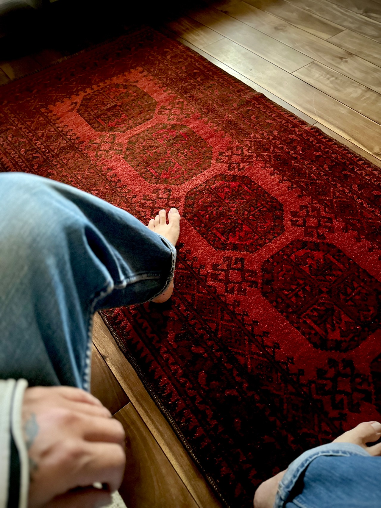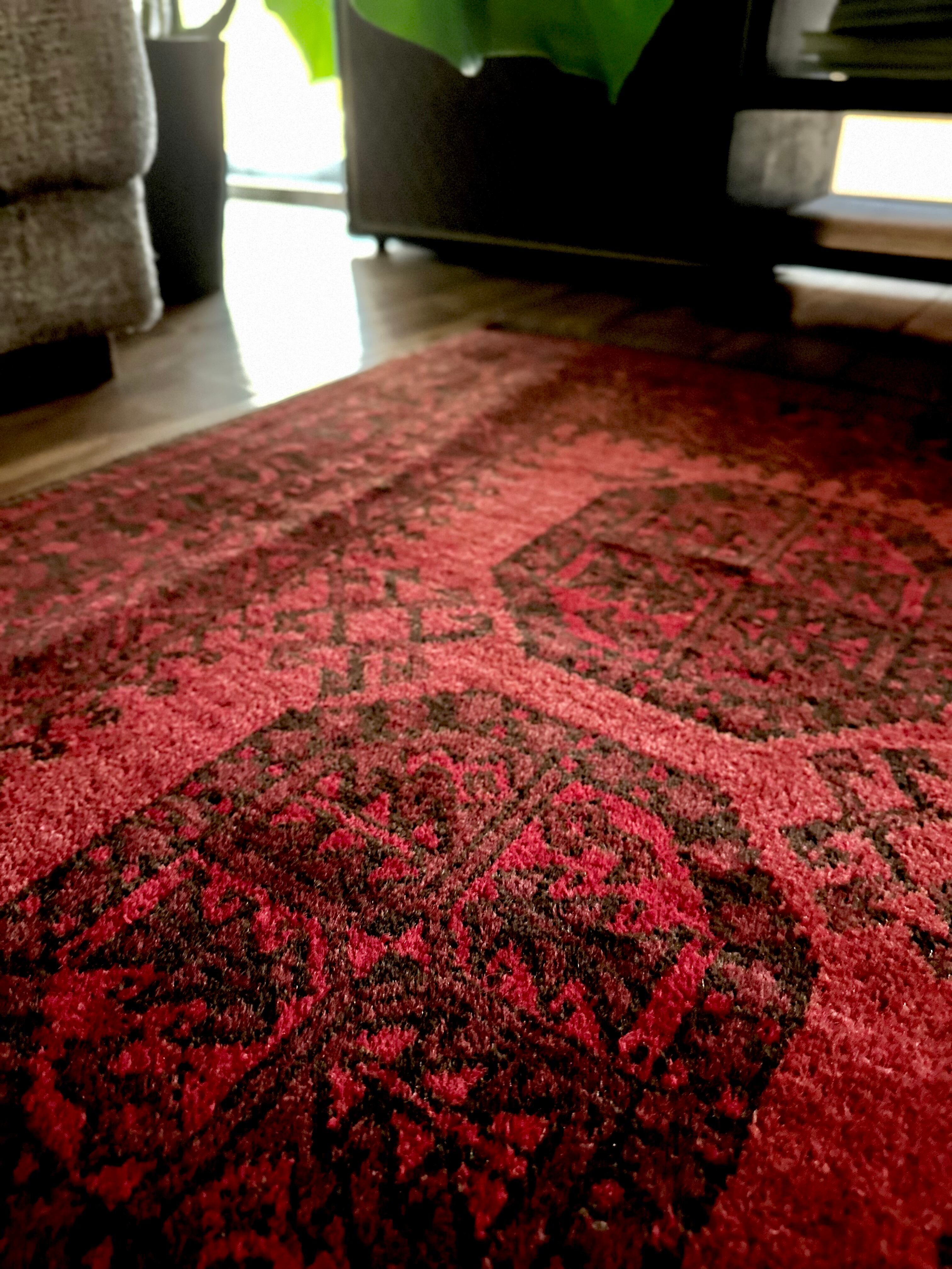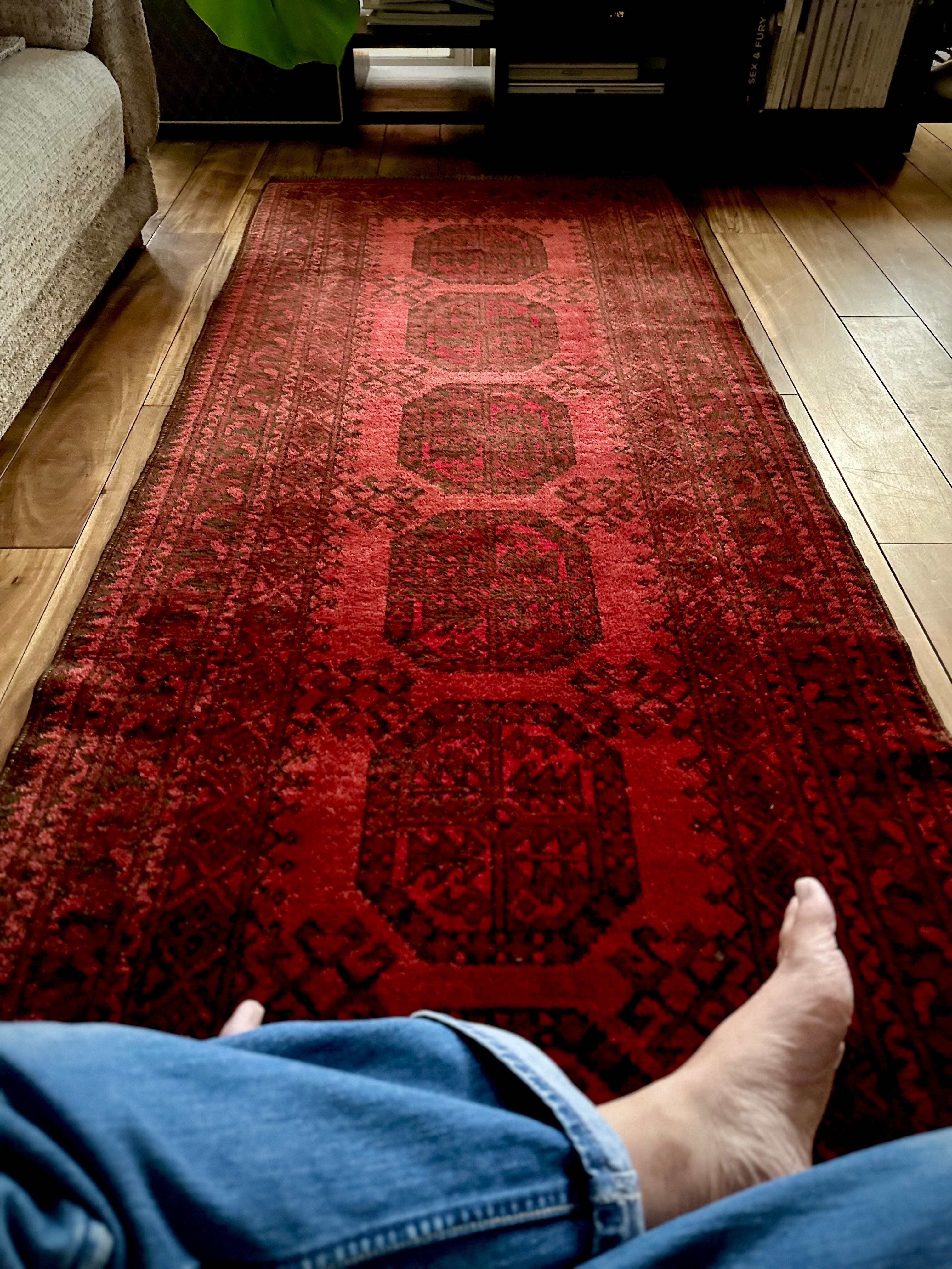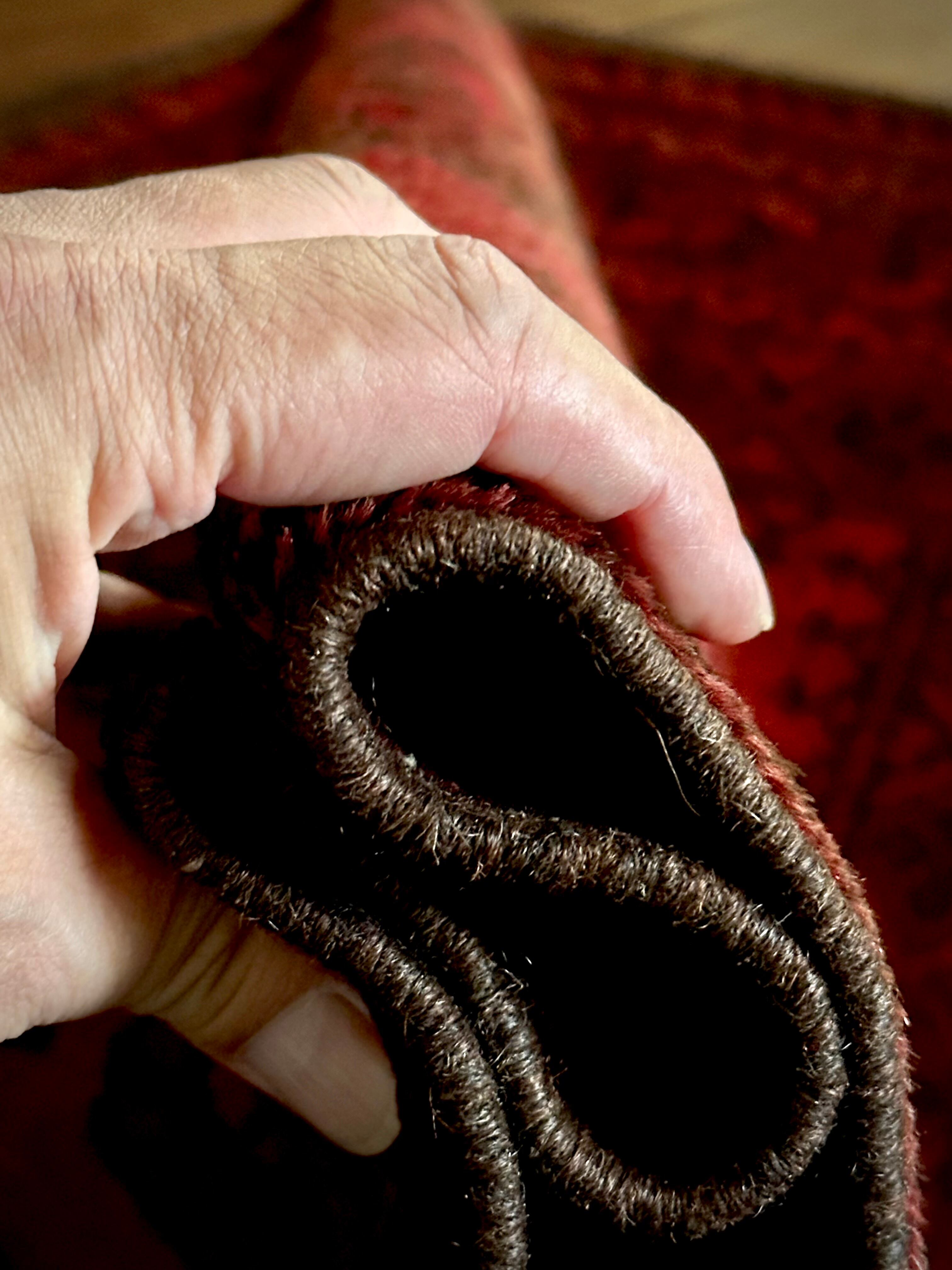 最後にラグそのものに関しては羊毛特有の匂いがあり、採寸は中央付近で計測していますが、手織りならではの歪みによる誤差や水洗いクリーニングによる縮み、また草木染めによる経年劣化の色ムラなどがありますが、それもまたヴィンテージラグの魅力かとご理解ください。