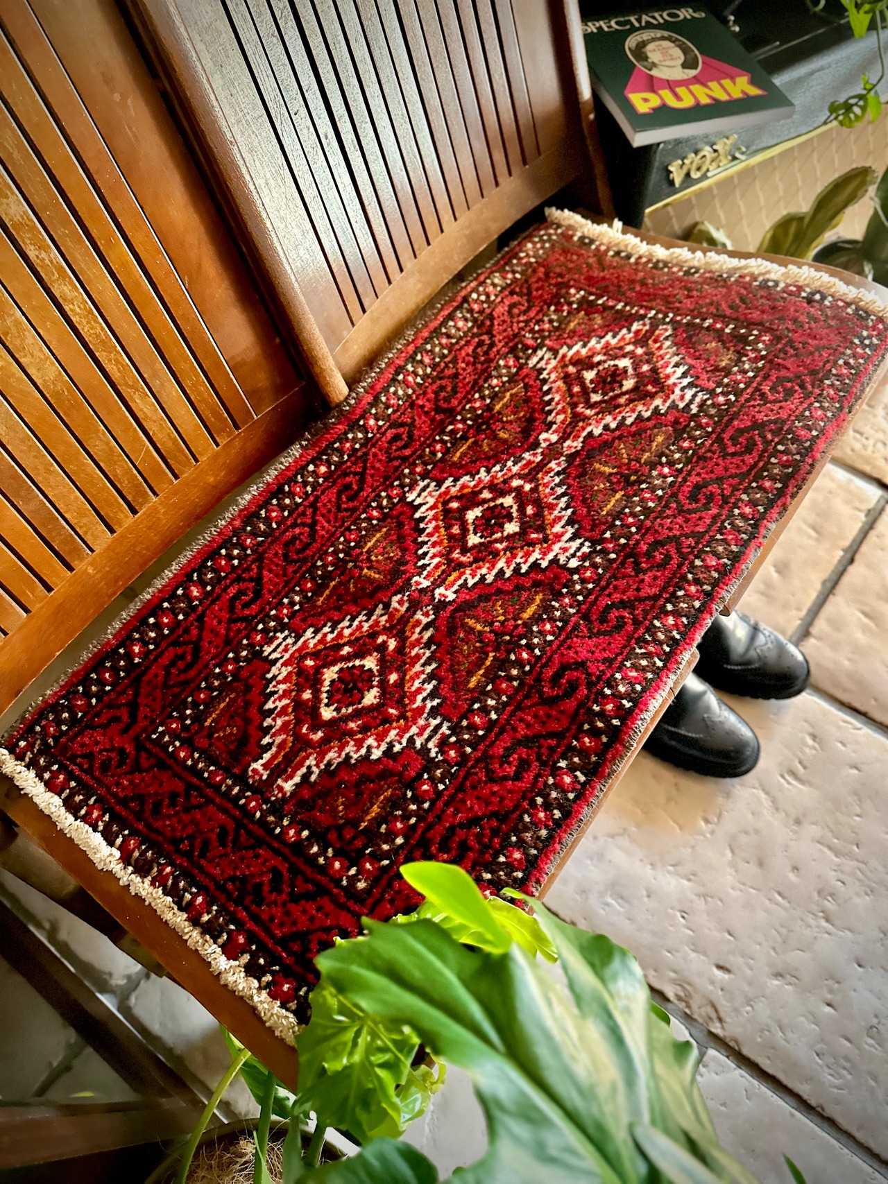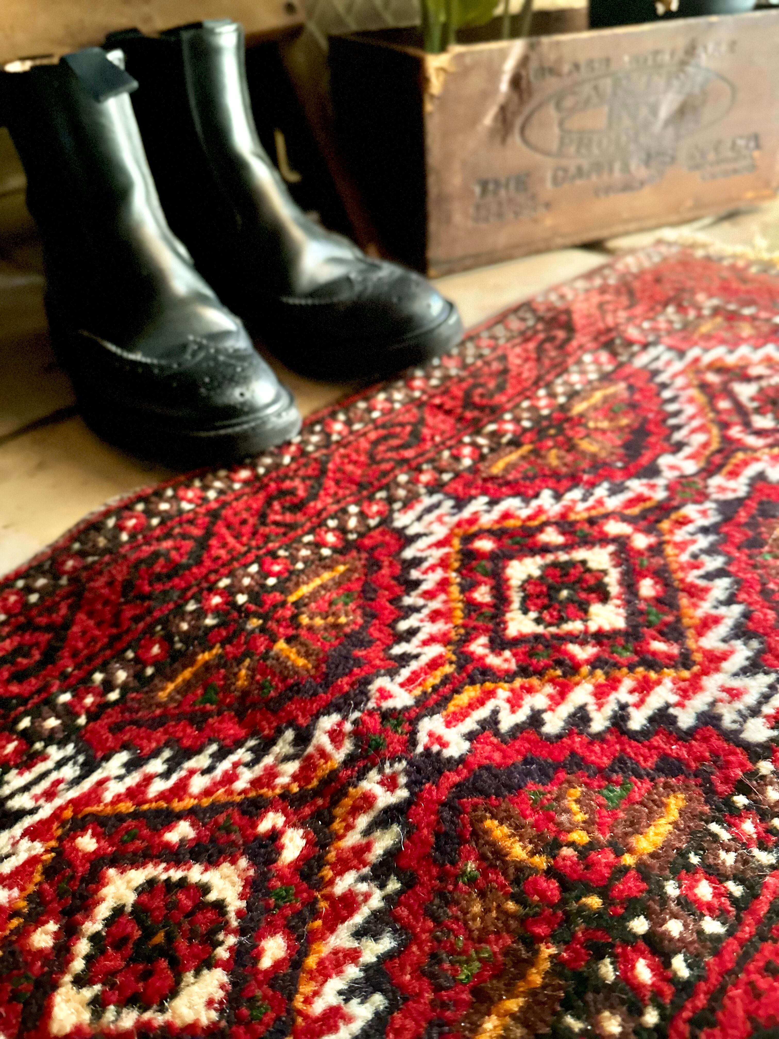 最後にラグそのものに関しては羊毛特有の匂いがあり、採寸は中央付近で計測していますが、手織りならではの歪みによる誤差や水洗いクリーニングによる縮み、また草木染めによる経年劣化の色ムラなどがありますが、それもまたヴィンテージラグの魅力かとご理解ください。