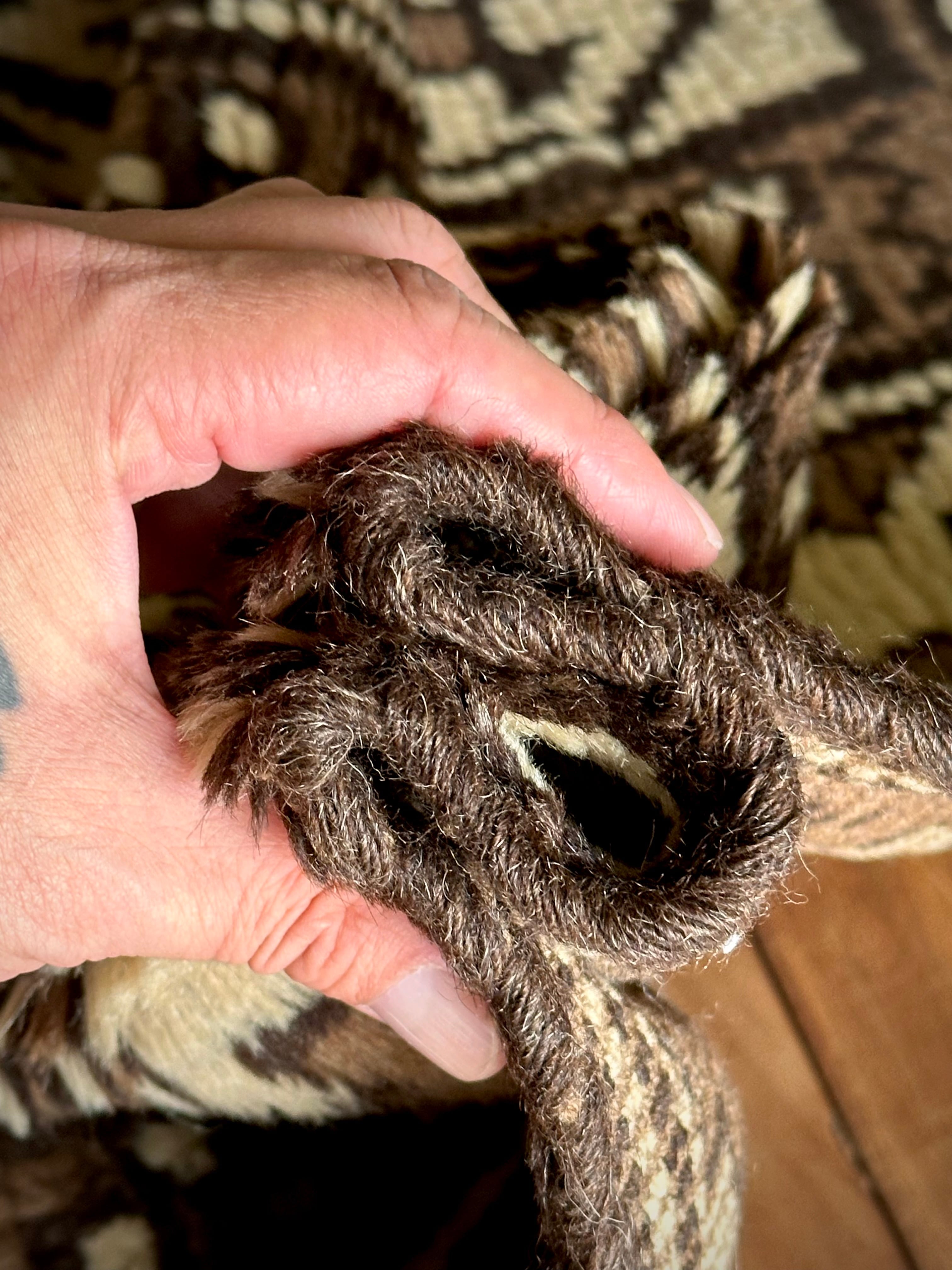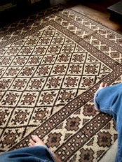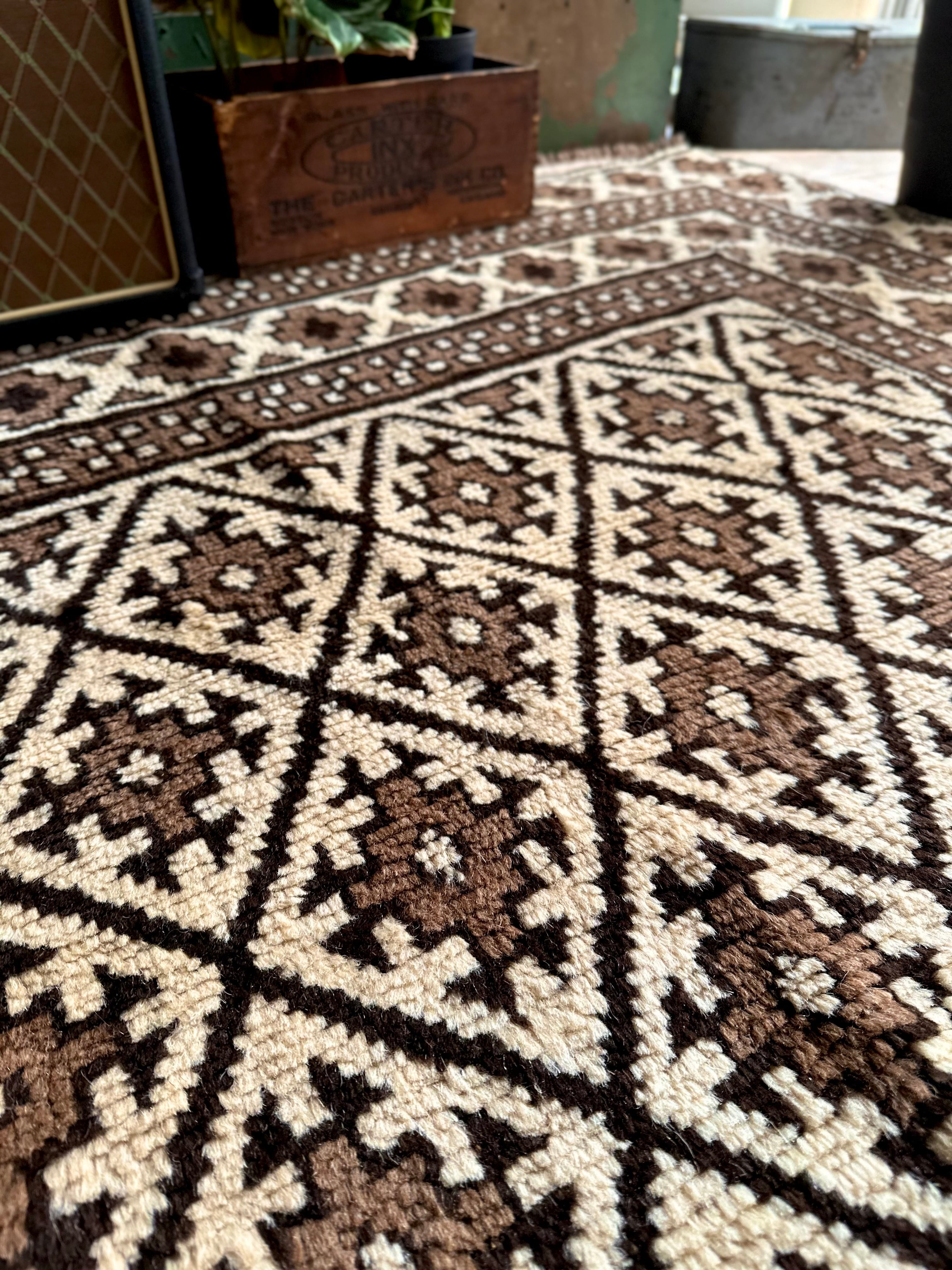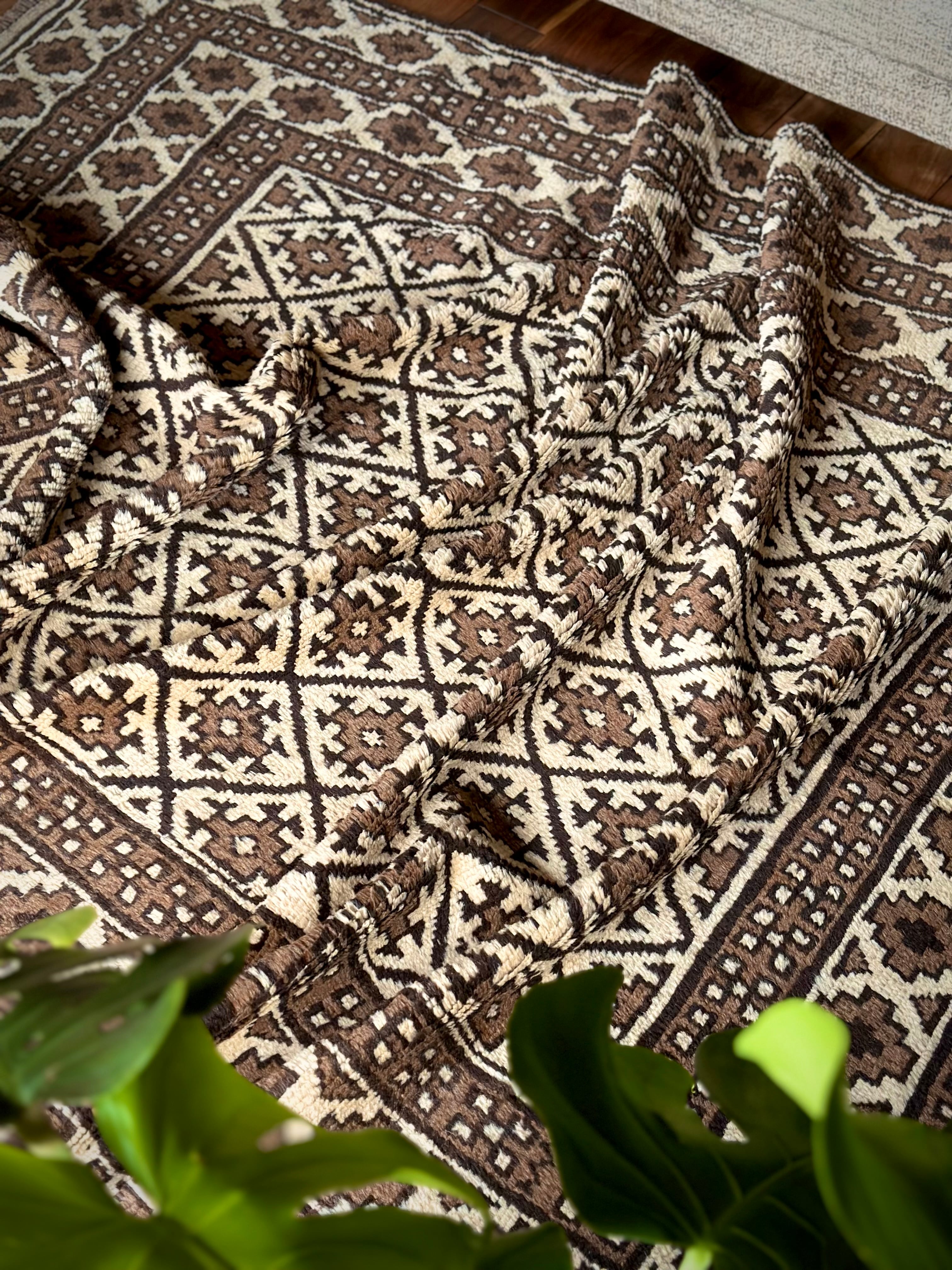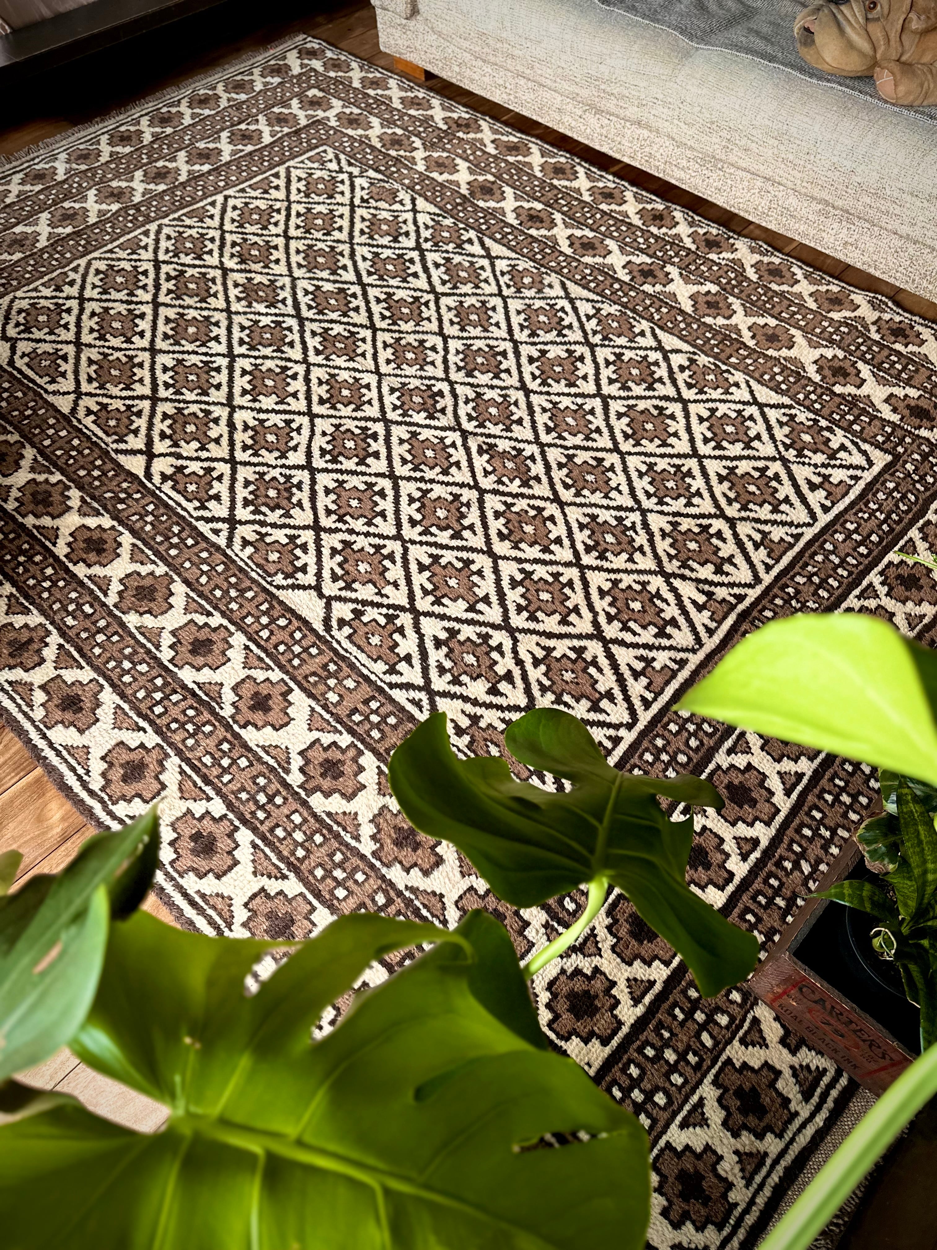 最後にラグそのものに関しては羊毛特有の匂いがあり、採寸は中央付近で計測していますが、手織りならではの歪みによる誤差や水洗いクリーニングによる縮み、また草木染めによる経年劣化の色ムラなどがありますが、それもまたヴィンテージラグの魅力かとご理解ください。