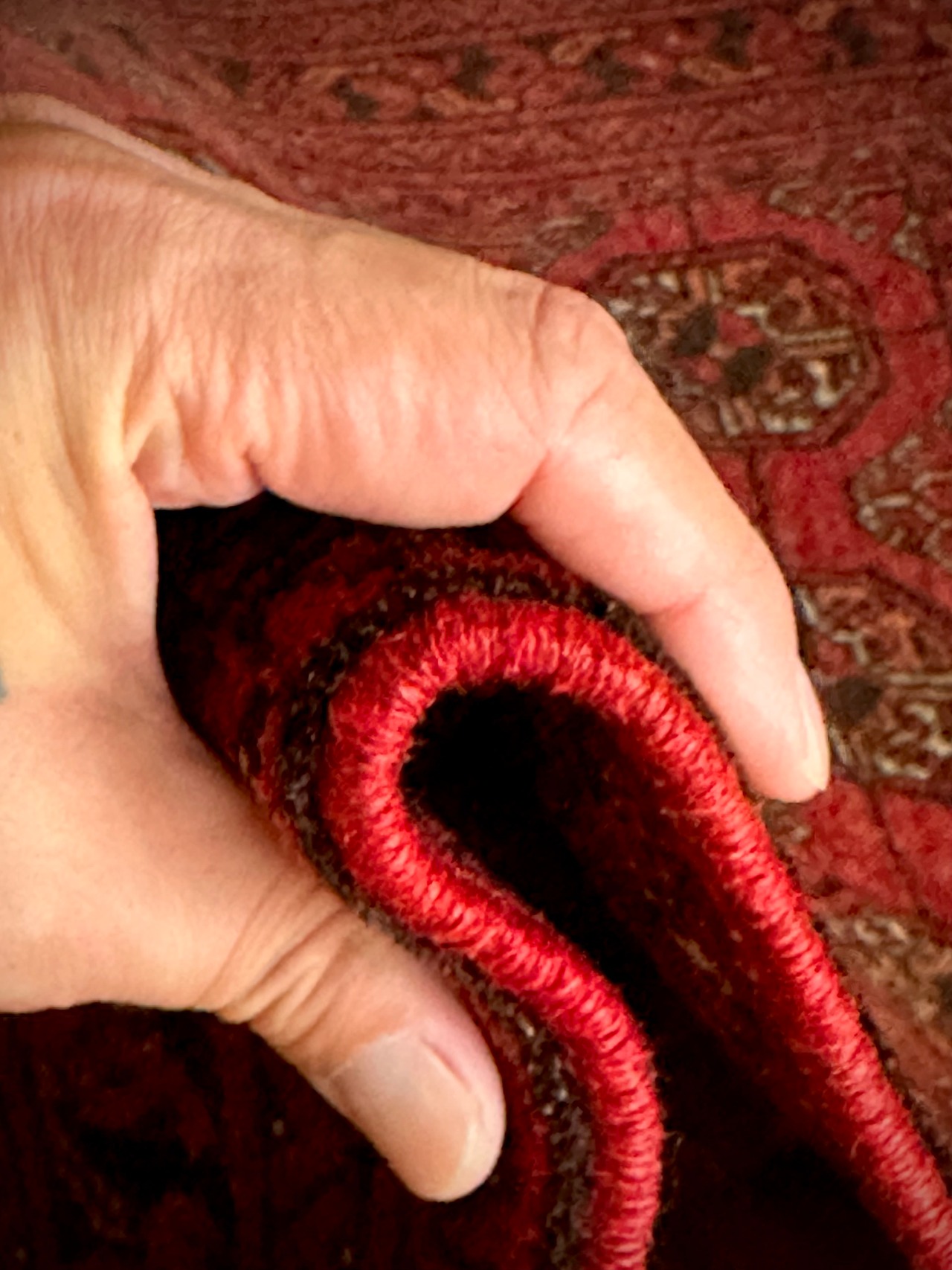 最後にラグそのものに関しては羊毛特有の匂いがあり、採寸は中央付近で計測していますが、手織りならではの歪みによる誤差や水洗いクリーニングによる縮み、また草木染めによる経年劣化の色ムラなどがありますが、それもまたヴィンテージラグの魅力かとご理解ください。