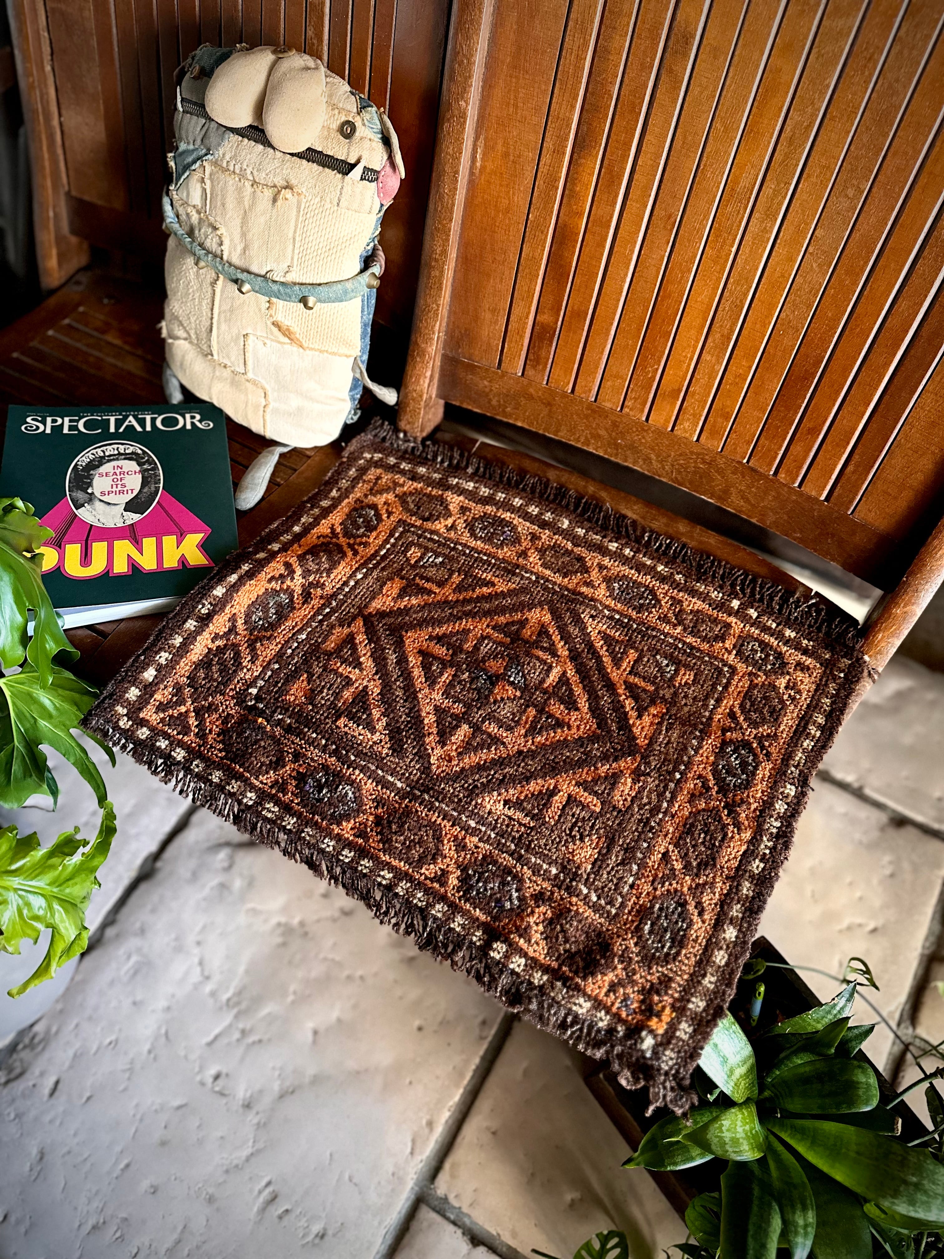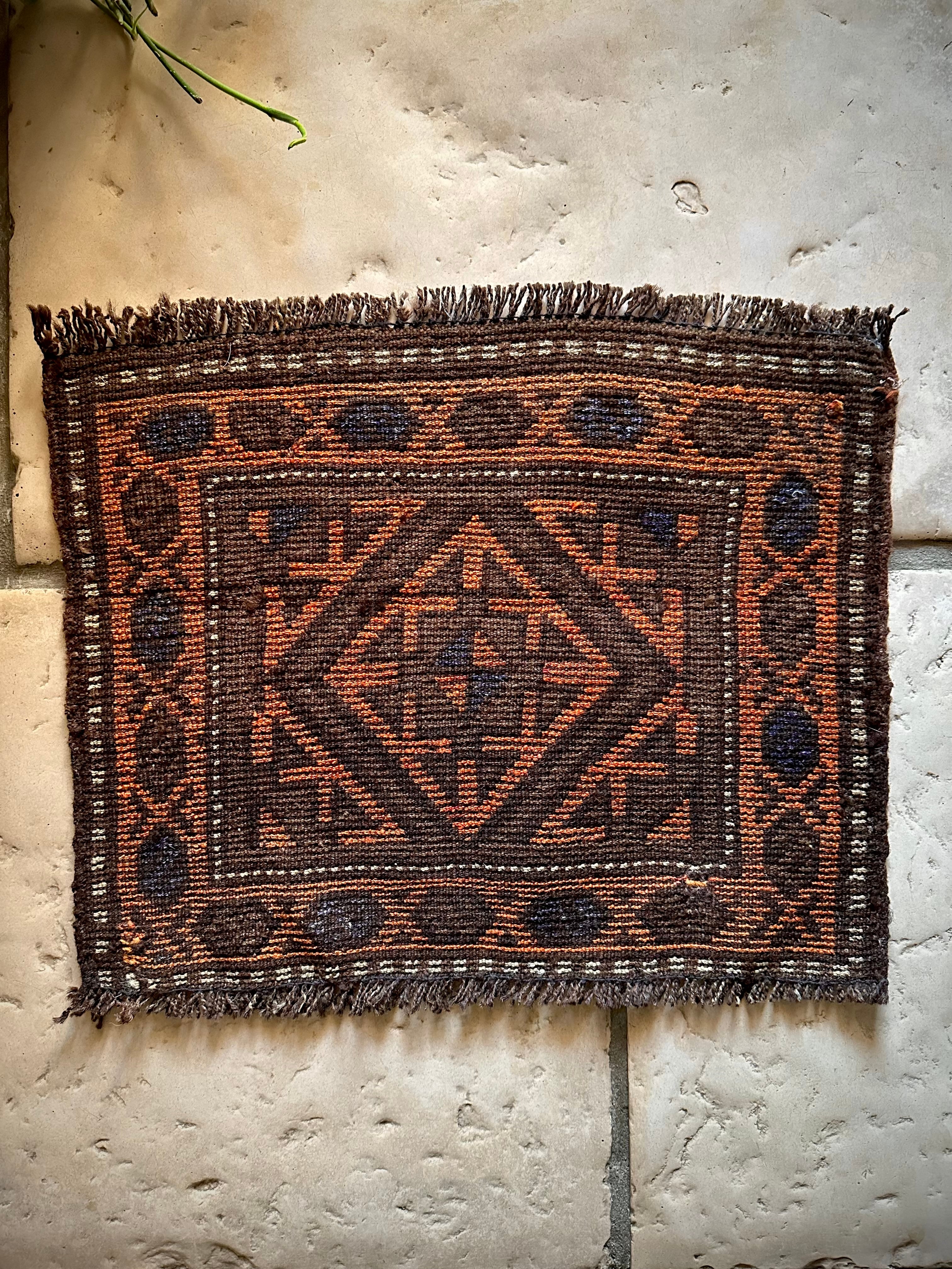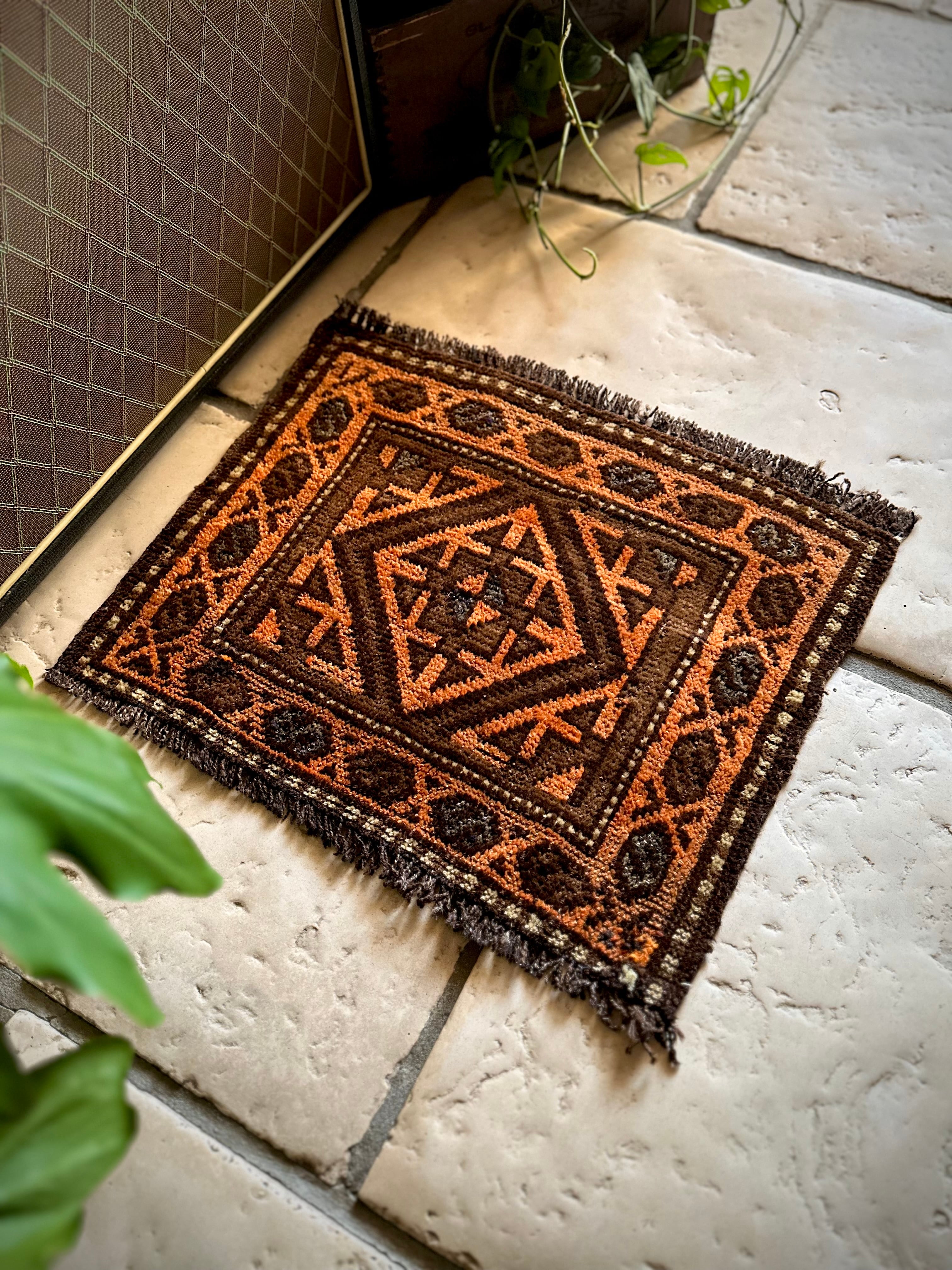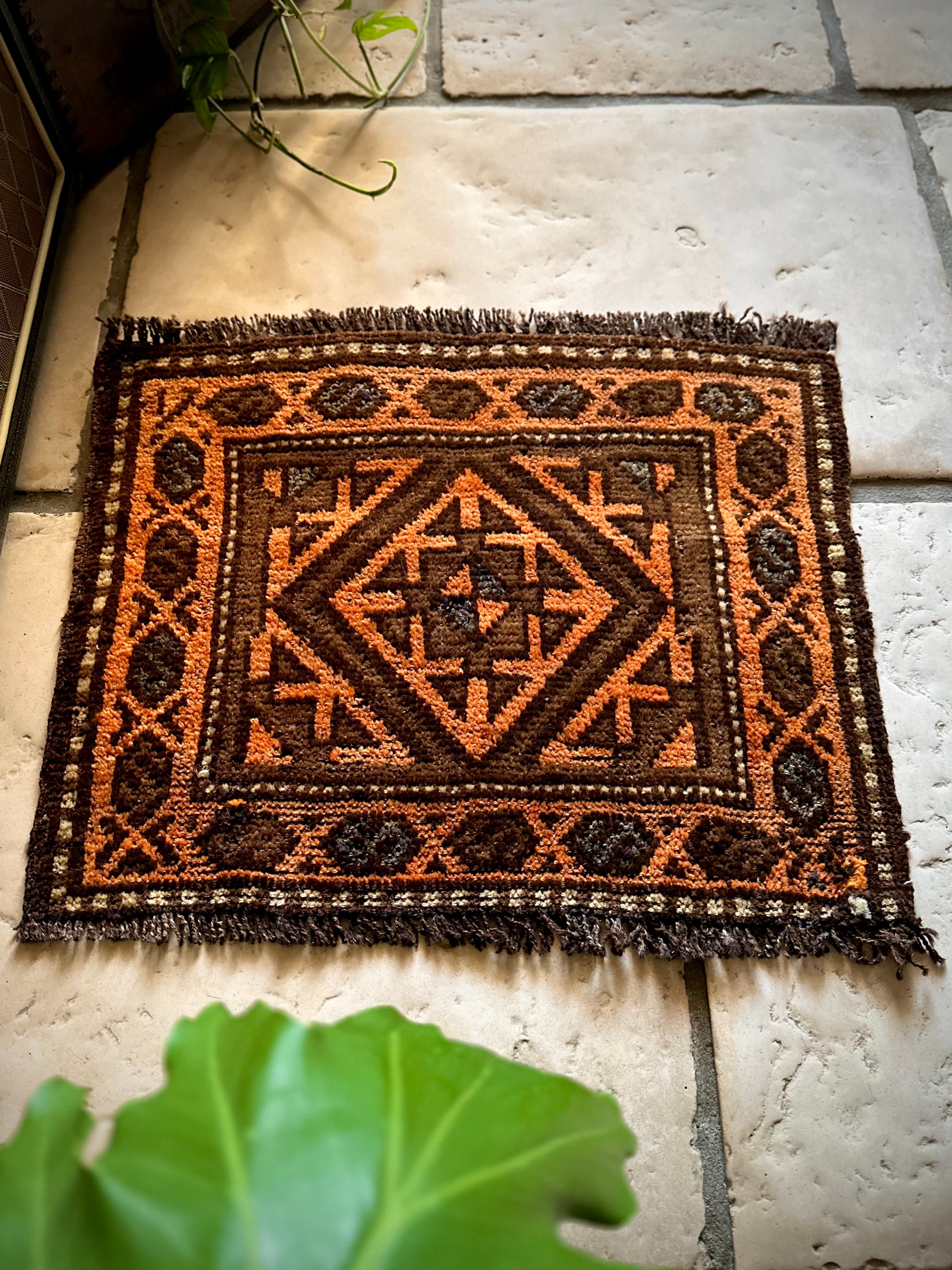 ちょっとしたお部屋のアクセントに植物の鉢置きとしても活用出来るミニラグなサイズ感で、ソファの座面や壁掛けとしても良い雰囲気でしょうか。