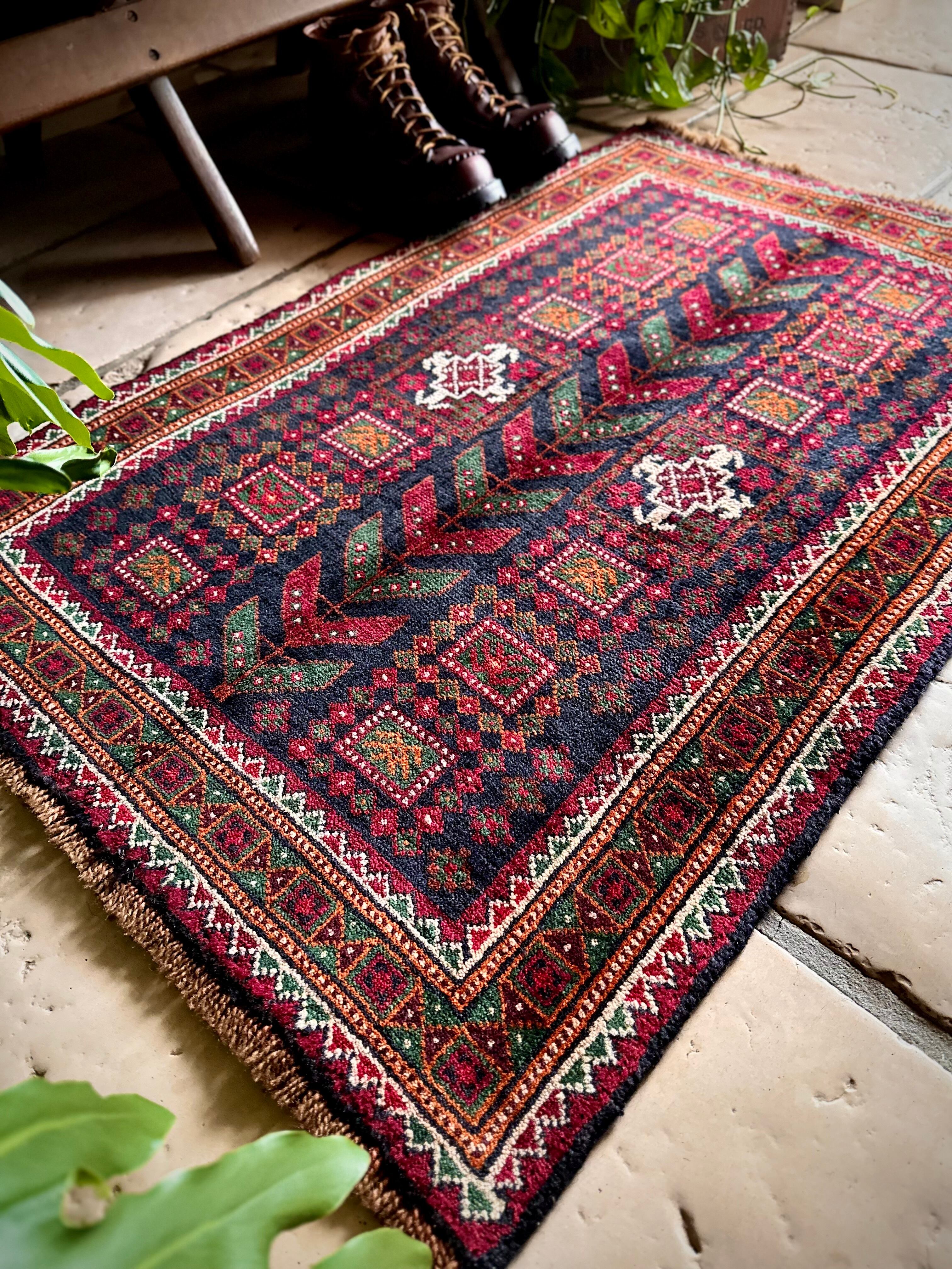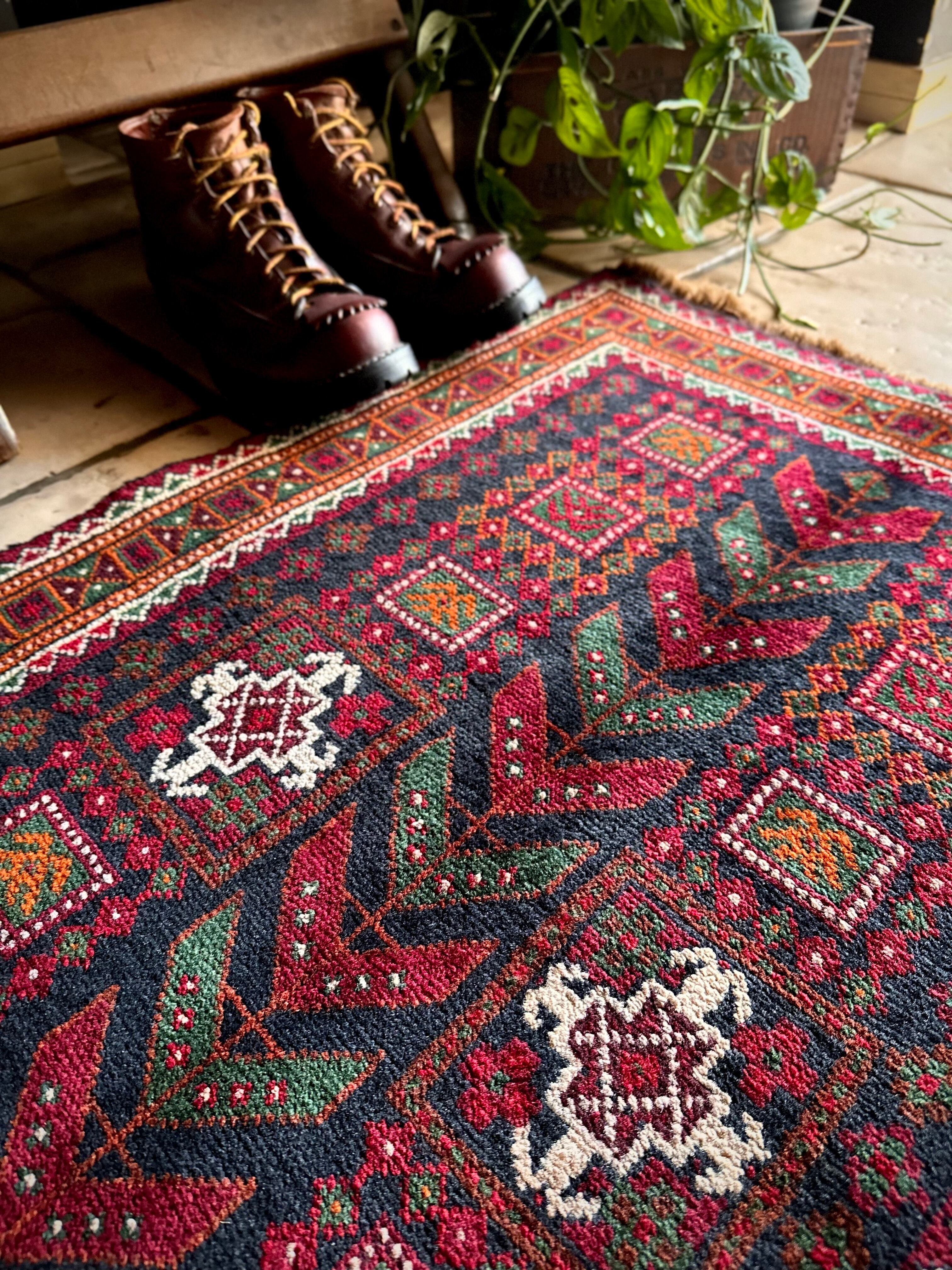 最後にラグそのものに関しては羊毛特有の匂いがあり、採寸は中央付近で計測していますが、手織りならではの歪みによる誤差や水洗いクリーニングによる縮み、また草木染めによる経年劣化の色ムラなどがありますが、それもまたヴィンテージラグの魅力かとご理解ください。