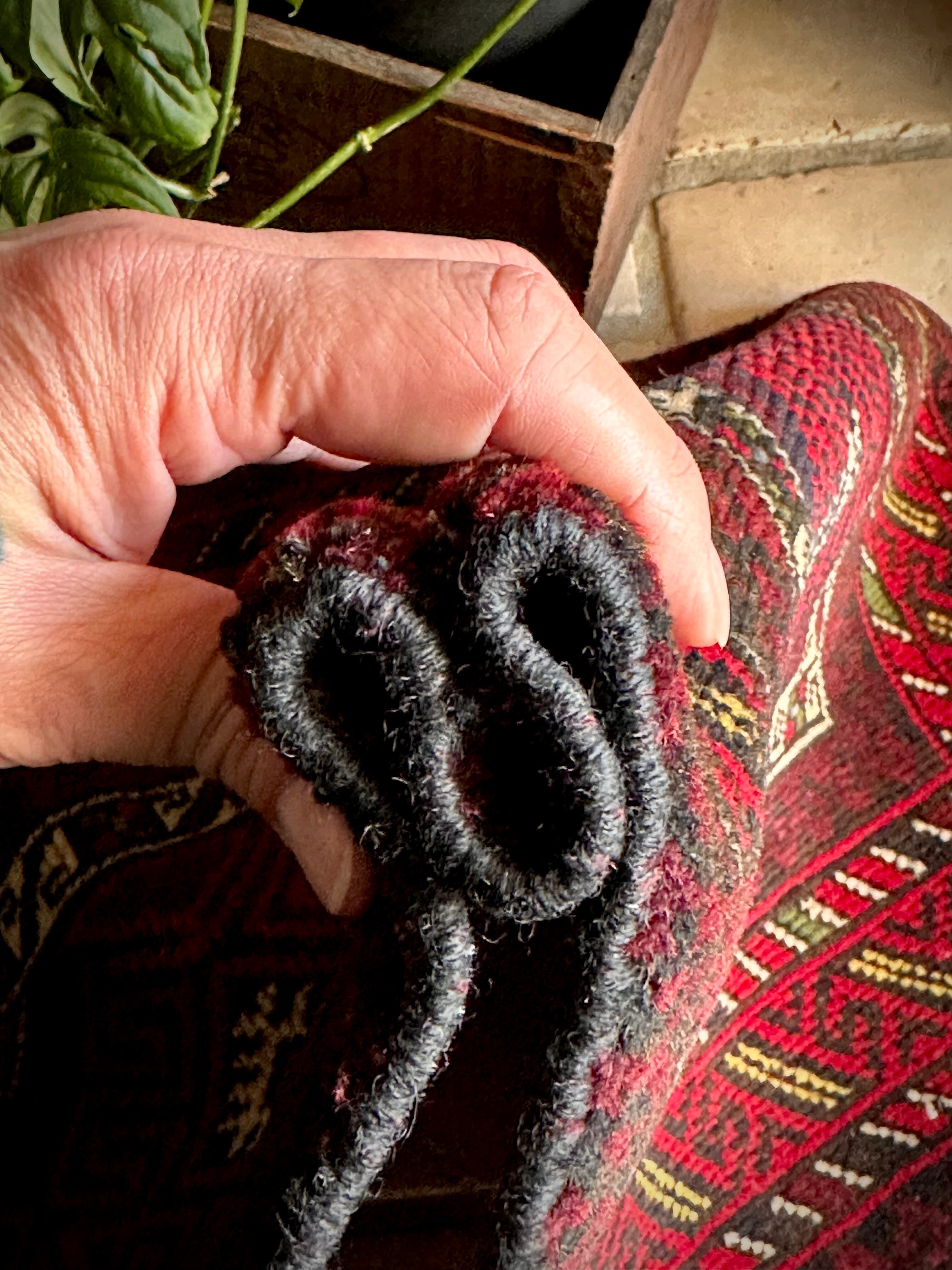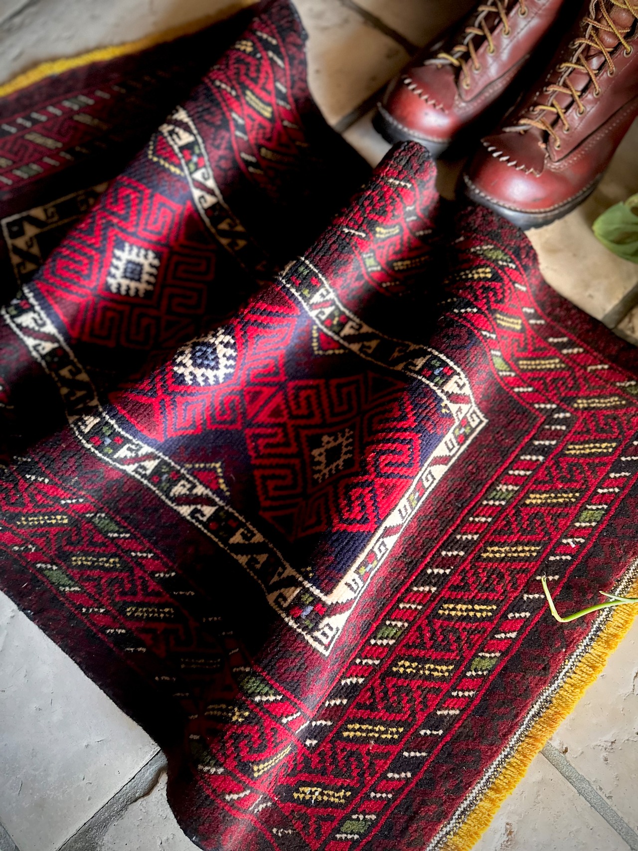 最後にラグそのものに関しては羊毛特有の匂いがあり、採寸は中央付近で計測していますが、手織りならではの歪みによる誤差や水洗いクリーニングによる縮み、また草木染めによる経年劣化の色ムラなどがありますが、それもまたヴィンテージラグの魅力かとご理解ください。