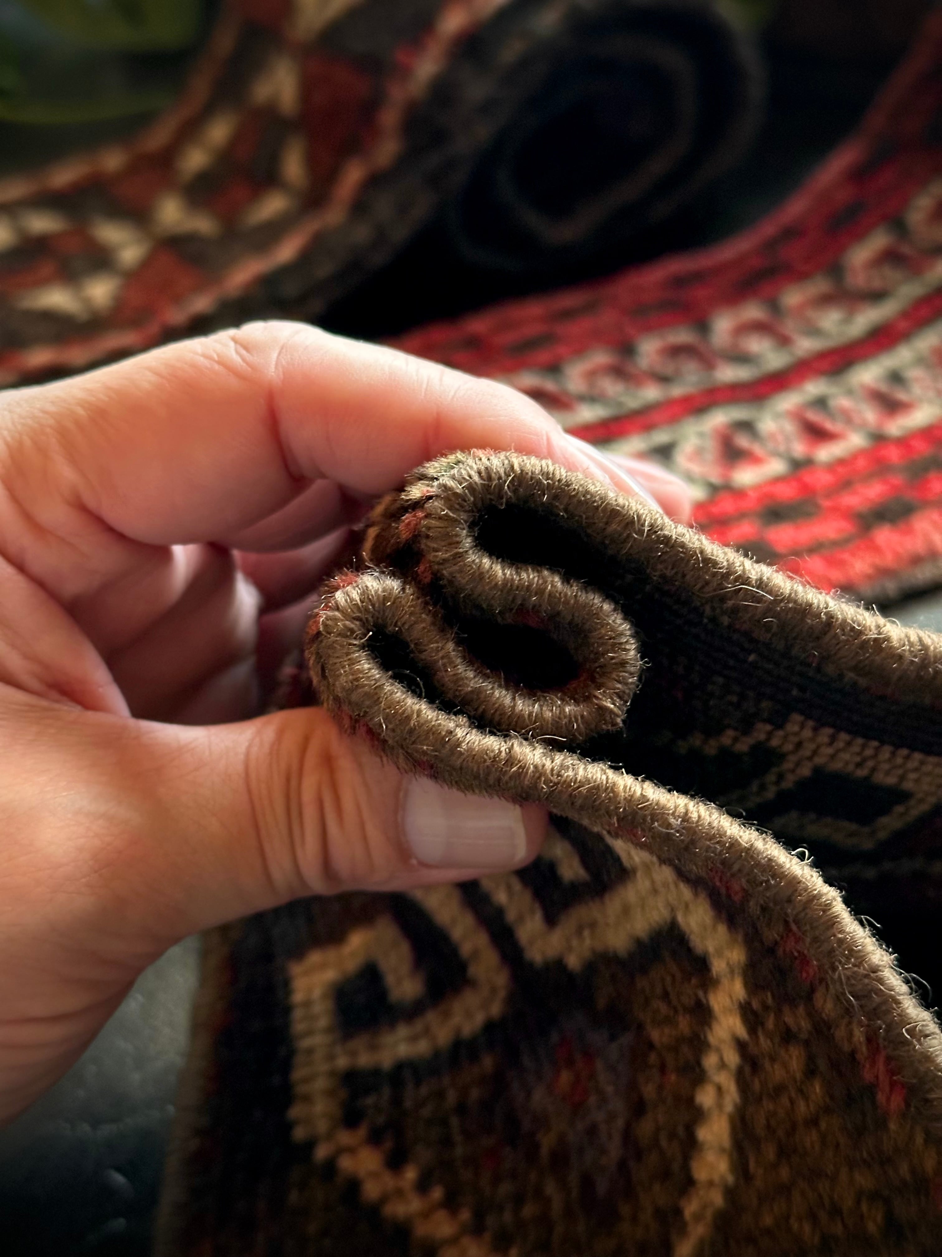 経年としては40年のヴィンテージラグになりますが、それほどの使用感はなく目立つ汚れにダメージのないグッドなコンディションで、小さいながらもトライバルらしい柄がかっこよくシックな色合いが心揺さぶられます。