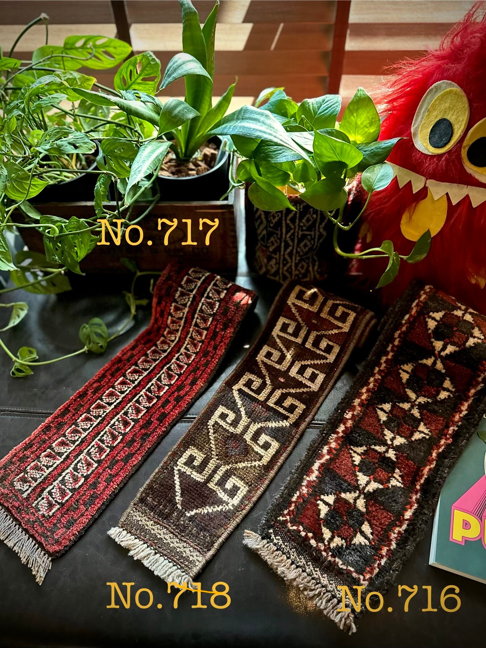 最後にラグそのものに関しては羊毛特有の匂いがあり、採寸は中央付近で計測していますが、手織りならではの歪みによる誤差や水洗いクリーニングによる縮み、また草木染めによる経年劣化の色ムラなどがありますが、それもまたヴィンテージラグの魅力かとご理解ください。