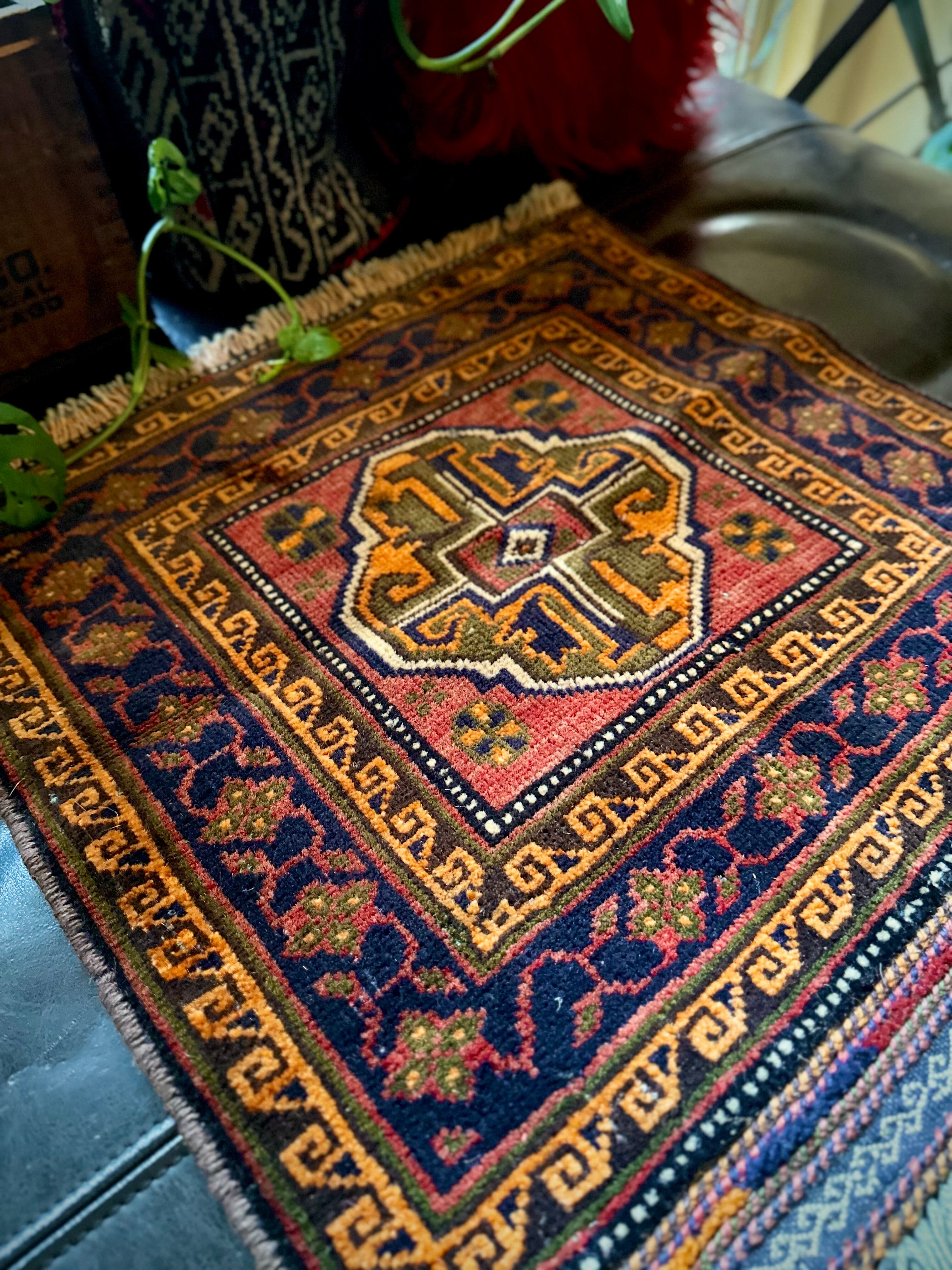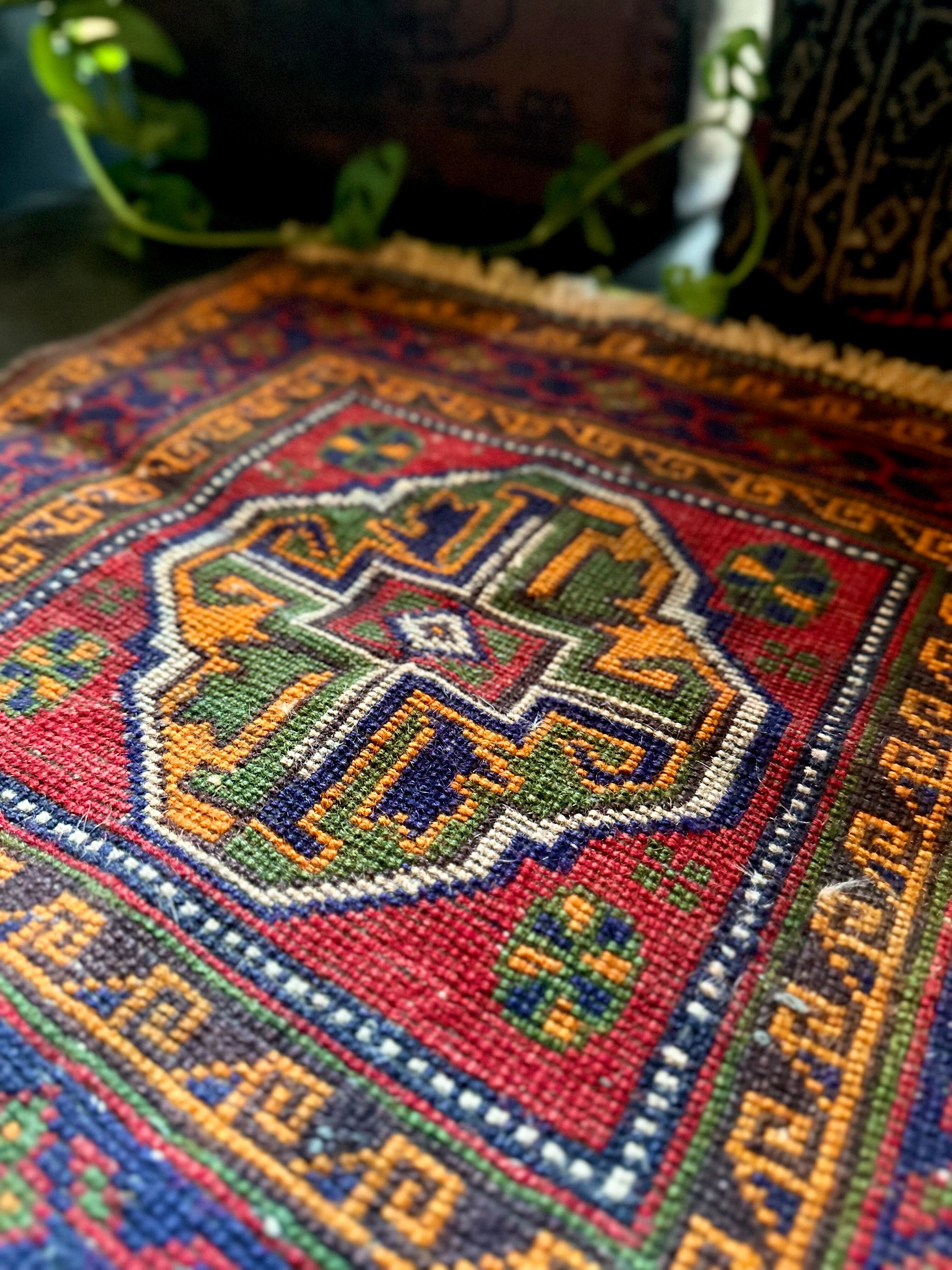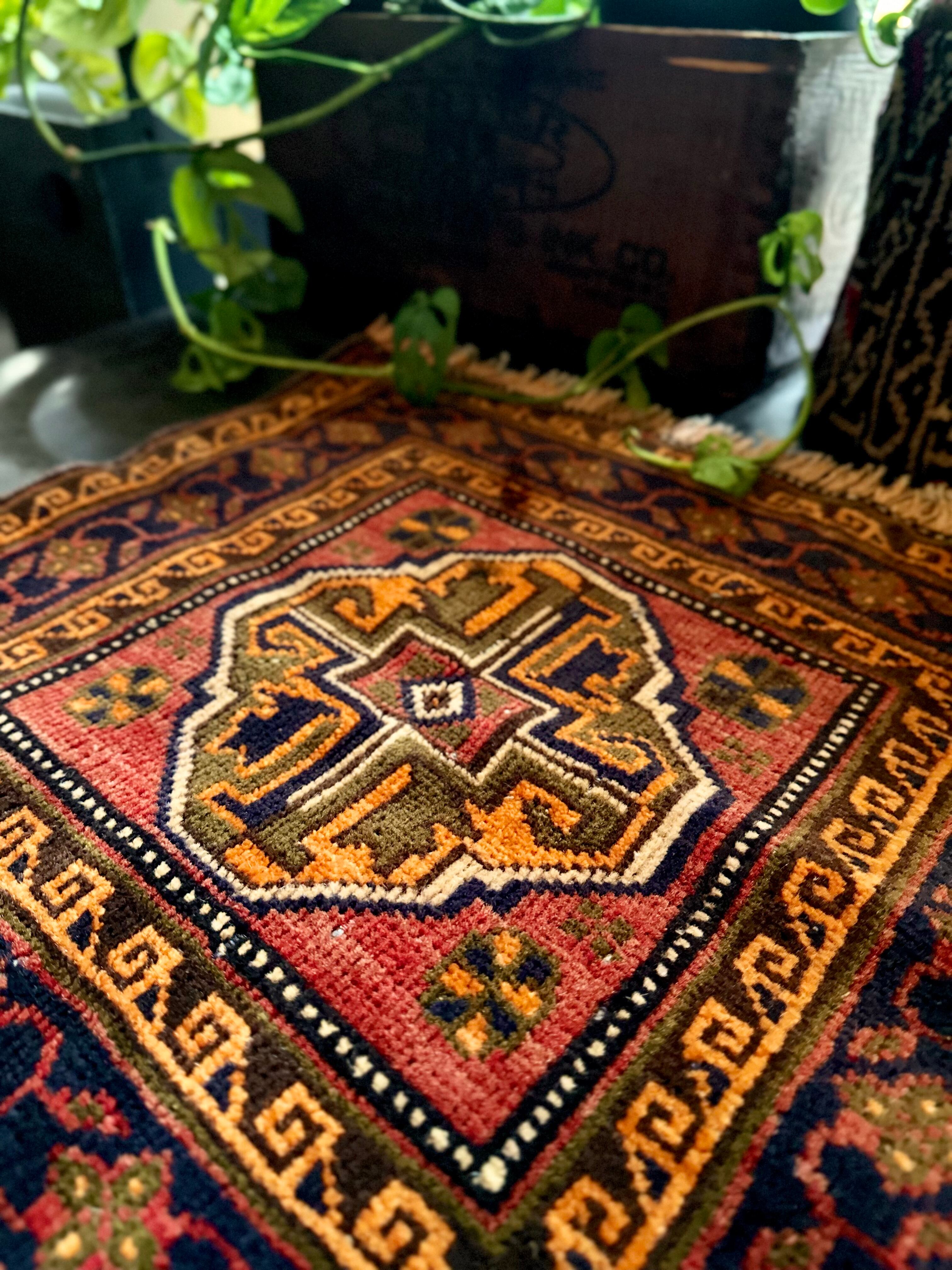 最後にラグそのものに関しては羊毛特有の匂いがあり、採寸は中央付近で計測していますが、手織りならではの歪みによる誤差や水洗いクリーニングによる縮み、また草木染めによる経年劣化の色ムラなどがありますが、それもまたヴィンテージラグの魅力かとご理解ください。