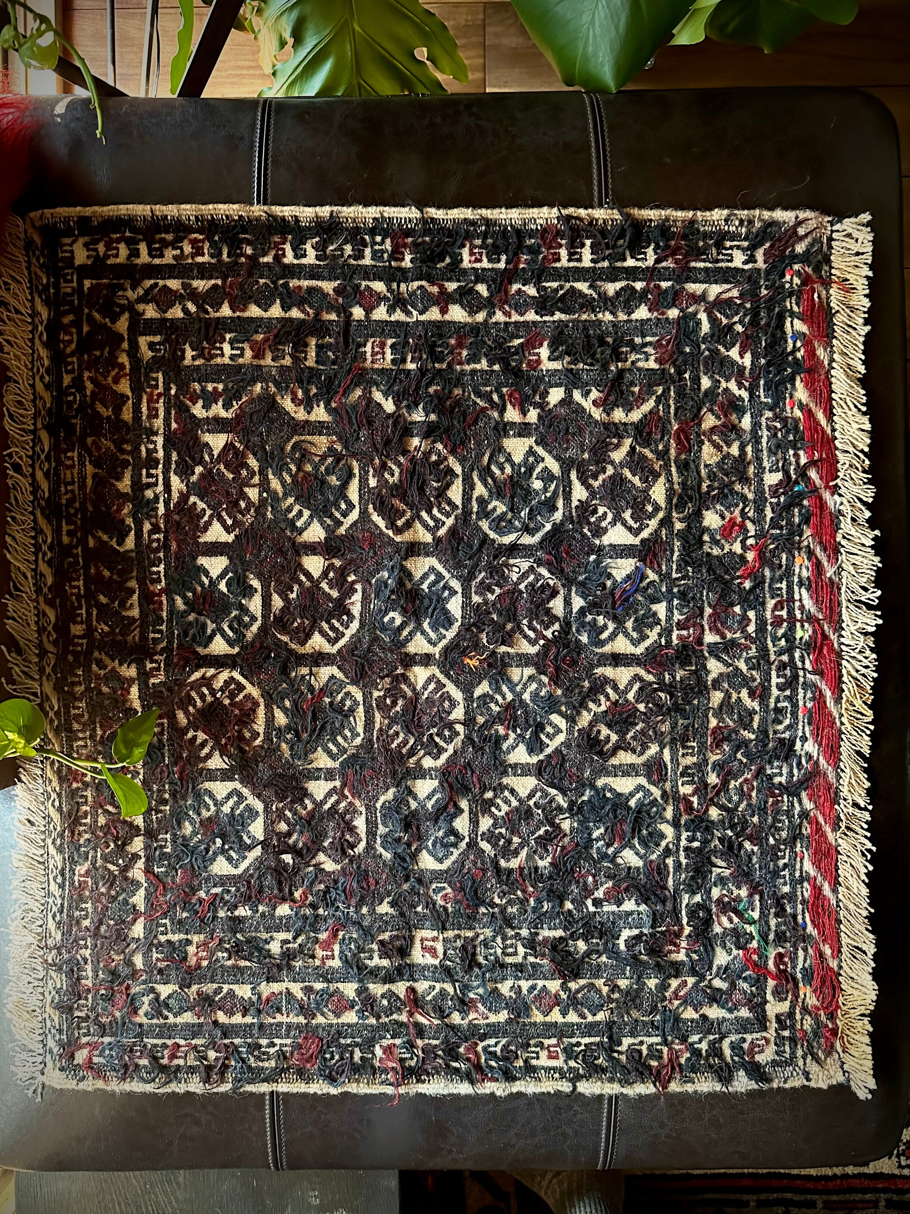 パキスタンとの国境をまたいだこの地をシスターン・バローチェ地方と呼ぶことからバルーチのなかでも別称で区別されますが、ことラグに関しても特異な柄に優れた技術を持ち合わせていて、こちらも高い技術を要するジジム織りと言われるボコっと浮き上がった紋様が特徴的な1枚で、壁に飾ったりしても良い雰囲気のキリムになります。